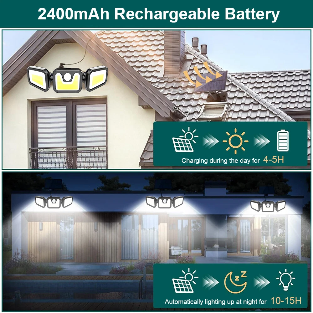 Solar Powered Outdoor Lights 2000LM 100 COB Security Light, 3 Heads Motion Sensor Lamp, IP65 Waterproof, 270° Wide Angle Flood Wall Light with 3 Modes, Motion Detected Spotlight for Garden Garage Yard Entryways Patio Electronicsrepair-h Your best online business partner 3 Head 100 COB Solar Motion Sensor Light Outdoor Garden Wall Security Flood Lamp Solar Powered Outdoor Lights 2000LM 100 COB Security Light, 3 Heads Motion Sensor Lamp, IP65 Waterproof, 270° Wide Angle Flood Wall Light with 3 Modes, Motion Detected Spotlight for Garden Garage Yard Entryways Patio Features: 【MOTION SENSOR】 Solar Motion Sensor Light Outdoor is equipped with 120 degree angle and sensitive motion sensor, which can provide illumination widely and without delay. Once the sensor of Solar Spotlights Outdoor detect the motion, there will be 30s illumination and without motion detected for long time the lights will auto turn off. 【Wide Angle Illumination & PIR Motion Inductor】 3 adjustable heads design can be adjusted. With innovative wide-angle and intelligent induction control, solar flood light detects up to 120° wide lighting angle and 26 feet sensing distance,which can provide extra brightness and more visible area. 【Long Working Time】 This solar powered flood light has a built-in 2400mAh rechargeable battery with the high-efficiency solar panel to ensure that it can be charged at less light day. The solar light will be charged auto in the daytime and start working in darkness. So please install these lights under sunshine for effective battery charging. 【IP65 WATERPROOF】 The Solar Lights with Motion Sensor are waterproof, heat-resistant, frost resistant, suitable for most weather conditions and suitable for outdoor patio, garden, lawns, deck, yard, drive, outside wall, fence, etc. 【EASY TO INSTALL】 The package of LED Solar Lights includes brackets and screws of each lights. The outdoor security lights motion can be mounted on the wall with screws and great for patios, lawns, patios, front door etc. Specifications: Safe Material: ABS + PC Solar Panel: 1.8W, 5.5V; Wattage: 5-8W; LED QTY: 100 pcs COB Lumen: 2000LM Li-ion Battery: 3.7V 2400mAh Waterproof Rate: IP65 Sensing Distance: 26-32Feet Installation Type: Wall Mounted Sensor Angle: 120 Degree Three Working Mode: Three gear modes 1. Induction mode (highlights when people come, lights off 20-30s after people leave) 2. Induction + micro-bright mode (highlights when people come, slightly bright after people leave, 10% brightness) 3. Micro-bright and no induction mode, 20~30% brightness Packae: 1x Solar Light Item Specifics Brand Unbranded Type Solar Street Lamp Power Source Solar Colour Black Features Solar, Waterproof, Weather Resistant, Weather Proof/ Rainsafe Number of Lights 1 IP Rating IP65 Material ABS PC Installation Area Outdoor Style Modern Returns Restocking fee: There will be a 15% restocking fee if returning mistakenly order or no longer needed item, read the tips below on how to avoid it. Read the item description carefully instead of only the listing title Choose the correct item from the drop-down menu (if applicable) before clicking on the add to cart button. If you have any questions regarding the item, please send us a message before purchasing. DOA (Dead On Arrival) : Take a picture of the outer box if you have received a damaged package, check all the contents inside for any physical damage and send the pictures to us as evidence within 3 Days for a return or refund. We are not responsible for any kind of compatible issues, or problems related to any specific software or games. Payment We only accept payment via eBay. Please make your payment within 5 days after auction ends otherwise a non-payment dispute will be opened. We will ship to your eBay address. Please make sure your eBay address is correct before you pay. Contact Us If your item has any issues, do NOT leave a Negative feedback without contacting us through eBay first, we will try our best to get it resolved and provide an address for you to return the item once it is qualified. Returns will be processed within (7) business day after receiving the item in original condition. Shipping After receiving your payment, your order will be shipped within 1-2 business days from Australia. Delivery times may vary , especially during peak periods or toward remote area. You may choose what service you need. Economy Delivery : 2-6 Working Days Standard Delivery : 2-5 Working Days Express Delivery : 1-3 Working Days We are not responsible for anything late or lost by logistics. Electronicsrepair-h Your best online business partner DESCRIPTION PAYMENT SHIPPING RETURN POLICY CONTACT US Hot Item HOT Coin Storage Holders Box Plastic Capsules Case 20 Certified PCGS NGC Slab US USD 9.59 Gorilla Glass Military Heavy Duty Hard Case For iPhone 14 Pro 12 Mini 15 XS 8 7 USD 13.01 Incell Replacement For Samsung Galaxy S8 Plus G955 LCD Display Screen + Frame USD 44.95 For Samsung Galaxy S9 Plus S9+ G965 LCD Display Touch Screen Replacement Black USD 45.69 For Samsung Galaxy S8 G950 Incell LCD Display Touch Screen Digitizer Replacement USD 43.95 New List Item 2X Solar Remote Security Lights Outdoor 72 COB Motion Sensor Flood Garden Light USD 22.49 4 Pack Waterproof Solar 3 Head Powered Motion Sensor Wall Outdoor Security Lamps USD 51.69 2 PC Solar Flood COB Light Motion Sensor Security Wall Yard Street Outdoor Lamp USD 17.59 2 Pack Waterproof Solar 3 Head Powered Motion Sensor Wall Outdoor Security Lamps USD 31.29 Outdoor Solar COB Deck Night Lights Garden Patio Pathway Stairs Step Fence Lamps USD 11.09 Shop Category Store Home For Samsung DOT Screen For Samsung Digitizer For iPhone Digitizer For OnePlus Digitizer For Motorola Digitizer For Google Digitizer For LG Digitizer Other Digitizer For Samsung Tablet For Apple Tablet Other Tablet Accessories For iPhone Case Smart Watch Accessories Memory RAM Stylus Z Wholesale L Wholesale W Wholesale X Wholesale Other Help & Info Payment Policy