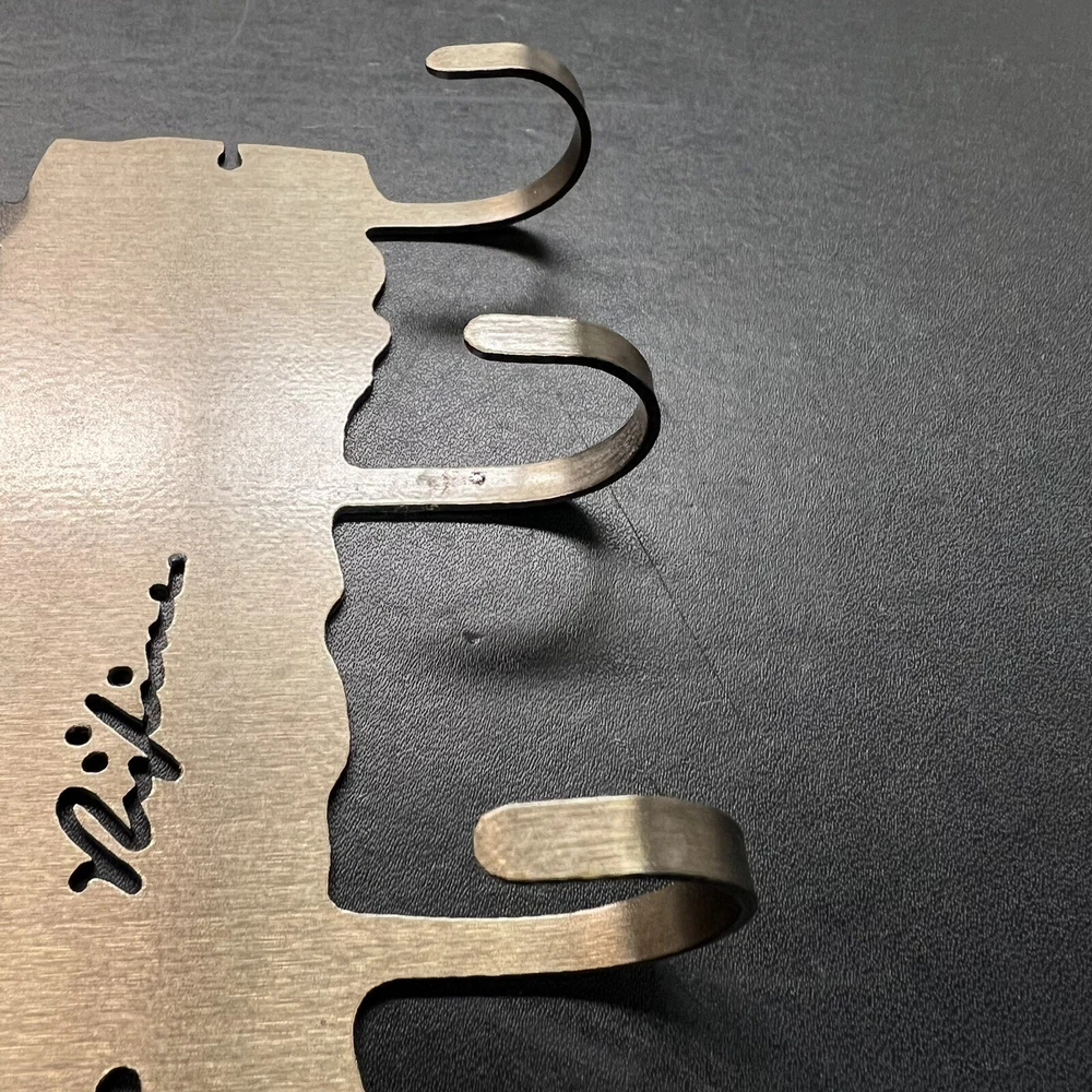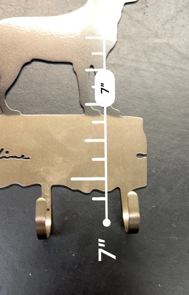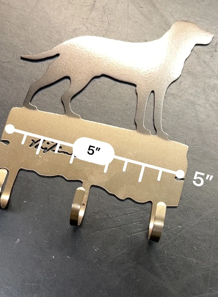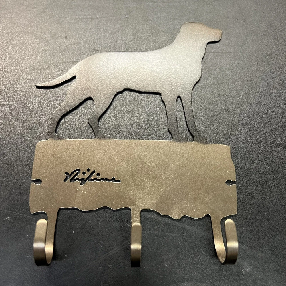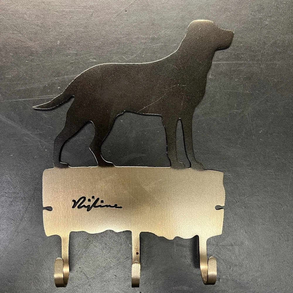 This 3-hook key or leash holder features an attractive Labrador Retriever silhouette design made from brushed metal. The durable hook is made from metal and has a traditional style that will complement any home décor. The item measures 5 inches in length and width, and 7 inches in height, making it the perfect size to hold your keys or leash. The key hook is easy to install and requires no assembly, making it a hassle-free addition to your home. It features a metallic finish and is an original Silhouette brand product made in the United States. The hook is designed to hang and has a sturdy construction that can withstand daily use. Add this charming and practical key holder to your home today! Never used. Great shape.