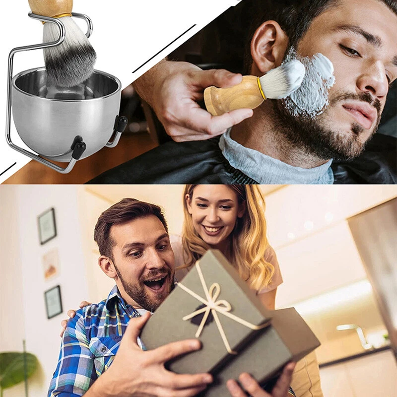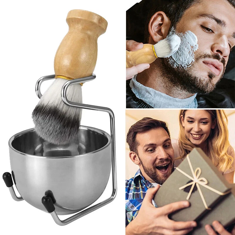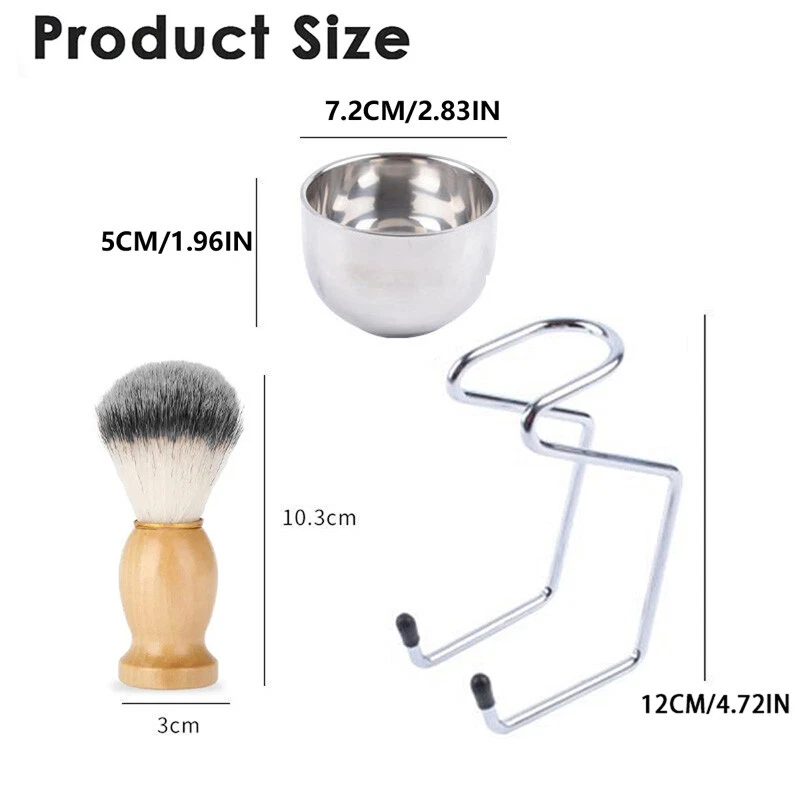 Specifics: Color: Silver, Wood color Material: Wooded Handle & Nylon Hair & Stainless Steel Brush Size: 10.3x3cm Bowl Diameter:2.83"(7.2cm) Holder Size:4.72"(12cm) Features: Shaving Kit:3 in 1 Shaving Set, every set has a shaving brush, stainless steel bowl and stainless steel stand. Material: Shaving bowl and stand is made of stainless steel , the finely polished surface creates looks more clear. Brush: The brush is very silky and brings water to the face , true wet shave, creates a rich lather. Solid Brush Handle: Its ergonomic shape makes it easy to hold the brush, is easier for using. Easy to Carry: Help organize your shaving tools, it is easy,safe and convenient storage of razor and shaving brush. great gift idea for your father, husband, boyfriend or for any wet shavers looking for a fabulous combination. Hair is silky, soft and firm, as water absorbing and heat retention capability, works well with all shaving soap and all foams, gels or creams, Perfect for thick, glossy lathering, easy to clean, and fairly quick to dry. Recommend thoroughly rinse the shaving brush, shake and hang it to dry. The longevity of a quality hair shaving brush is directly related to the care and respect it is given. Shaving Stand: Hang shaving brush to maintain brush hair, lathering shaving foam in the 2 layers shaving mug. Package Includes: 1 Pcs Brush 1 Pcs Holder 1 Pcs Bowl Note: Please allow 1-2cm errors due to manual measurement. Because of the different display of each computer, the pictures may not reflect the actual color of the item. On Dec 9, 2024 at 20:44:28 PST, seller added the following information: