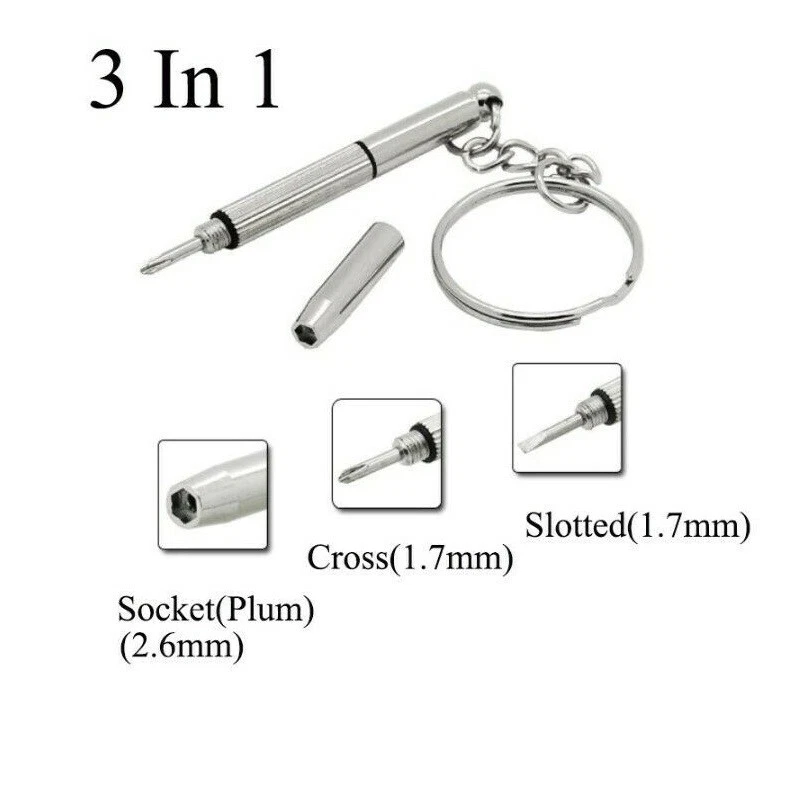 3 In 1 Mini Keychain Screwdriver Eyeglasses Computer Watch Phone Repair Tool NEW DESCRIPTION Features: Three small screwdriver Rotary head type: Slotted, for Phillips, Hex Applicable screw diameter: .7mm, 2.6(mm) Specifications: three small screwdriver Slotted: .7mm for Phillips: .7mm Hexagon socket: 2.6mm Blade length: 60mm(blade) Blade outer diameter: 50mm Package Contents: * Mini Screwdriver POLICES Shipping Payment WARRANTY We only ship to confirmed ebay Order addresses. Please comfirm that your Order address is in line with your shipping address. Please kindly note that the c ombined shipping is not provided because the shipping fee is calculated by weight. Also, the each additional item means exactly the the same color and size. It takes about 7 -15 working days to US; about 10-30 working days to other countries. Transit time may be a little delayed because of the bad weather and customs inspection . If you do not receive your item within 30 working days since payment finished, please contact us immediately for further assistance. Payment must be completed within 5 days. If you have any problems about payment, please contact us via ebay message. We strive for 100% customer satisfaction! Positive Feedback is very important to us. If you have any questions, p lease feel free to contact us via "Ask seller a question" . We will reply your email within 24 working hours.
