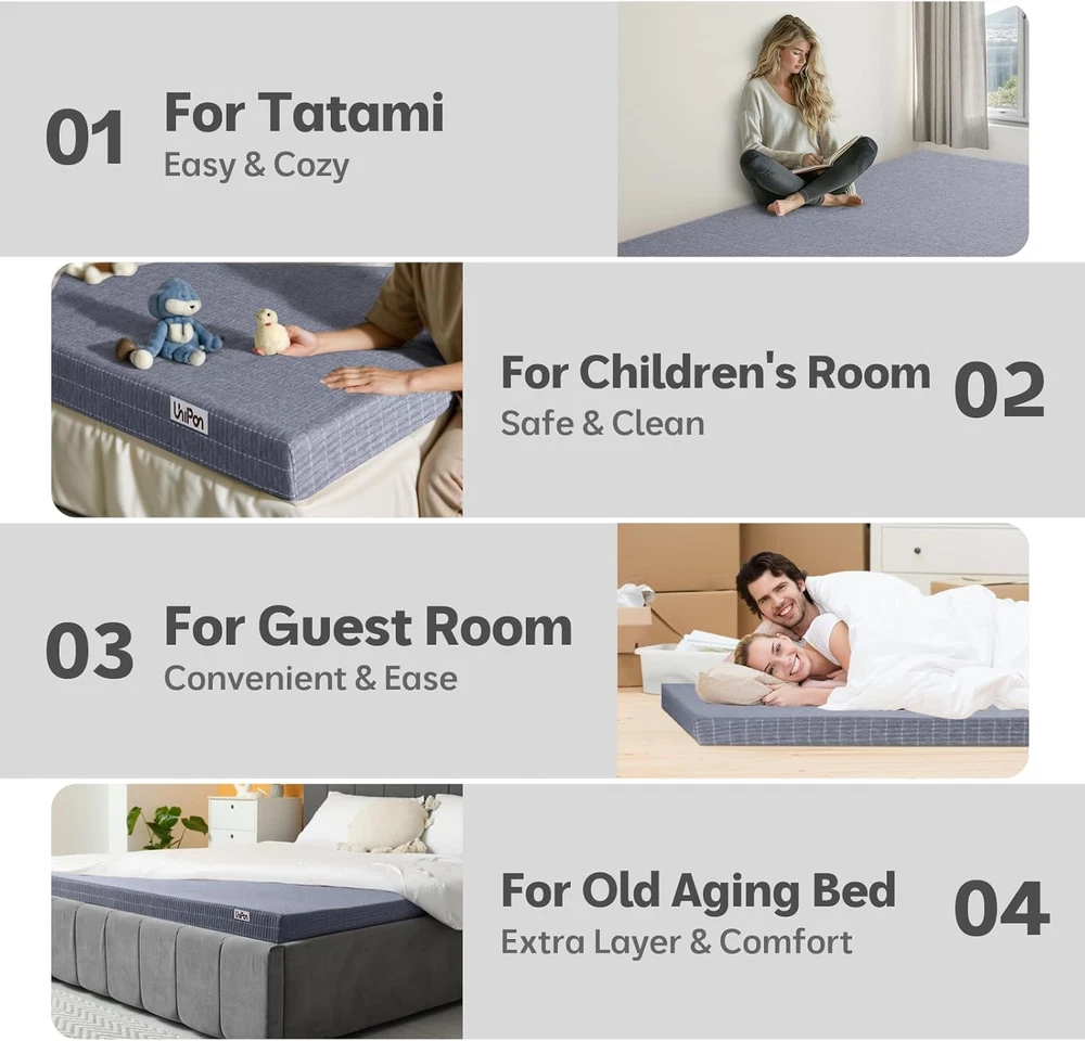Store New Arrivals Add to Favorite View Feedback Contact 3 Inch Firm Mattress Topper Twin Size, Firm to Extra Firm Memory Foam Mattress Topper for Pressure Relief, Support Foam Bed Topper with Removable Bamboo Cover Description Closure Type Zipper Style 3 inch Number of Items 1 Color White Material Memory Foam Water Resistance Level Not Water Resistant Fabric Type Knit Stretch Bamoboo Fiber Item Weight 15.62 pounds Age Range (Description) Child Size Twin Special Feature Memory Foam, Bamboo Cover, Removable Product Dimensions 74 x 38 x 3 inches Product Care Instructions Machine Wash Firm and Comfortable: Did you find your mattress is too soft? Sleeping on a soft mattress can make you uncomfortable. Now just having an extra firm mattress topper can change the whole story which effectively relieve back pain and let you sleep better. Pressure Relief: The 3 inch memory foam topper uses 38D charcoal memory foam and 30D high-density supportive base foam,which is more supportive and evenly distributes pressure points throughout your body. Skin-friendly Removable Cover and Charcoal Infused Foam: The exterior cover of this extra supportive mattress topper is designed with soft knit stretch fiber, Skin-friendly and soft to touch. This foam bed topper is charcoal Infused which helps regulate humidity and sweat, temperature and odor, creating a clean and comfortable sleeping environment. CertiPUR-US Certified Foam : This Twin Unipon Firm mattress Topper use CertiPUR-US and OEKO-TEX certified Foam, Super Healthy. No Worries of harm particles, Perfect for the whloe family usuage. Multi-Use Topper: This bed topper is easy to carry. It is not only the perfect way to upgrade your own bed, but also enhances comfort in guest rooms, dorm rooms, for travel, and more occassion. Product Description 1 Ergonomic Design 2 Pain Relieve 3 Good Value Skin-friendly Cover OEKO-TEX Standard 100, Safe for Whole Family Usuage Relieving Body Pressure Extra Cushioning, Balance Support, Save Your Old Aging Bed ABOUT US We offer the best prices around on high quality products. Our E-store includes media such as books, movies, music and games while offering electronics, toys, sporting apparel, clothing, tools, general home, garden items and more. SHIPPING We are always working hard to ensure your package arrives as soon as possible. Please understand that some factors like weather, high postal traffic, and the performance of shipping companies are outside of our control. We offer free shipping to the lower 48 states and ship within 2 business days of payment, usually sooner. We do not accept P.O. Boxes. Please provide a physical address. For shipping outside of the continental USA, we only use eBay's Global Shipping Program.The item is shipped to KY and then sent to the rest of the world. International customers are responsible for all duties and taxes. Continue to check out in order to calculate costs for shipping the item to your country. Messages regarding eBay's Global Shipping Program MUST be directed at eBay EXCLUSIVELY. RETURNS We offer a 30-Day Return Policy on items which you are not completely satisfied with. You have the option for a full-refund or an exchange of the item. No returns are available on items shipped outside of the USA. PAYMENT We accept PayPal. CONTACT US This page content is yet to come Please ad us to your favorite seller and visit again later Thank You CUSTOMER SATISFACTION We try our very best to make sure every customer is completely satisfied. If there's a problem, message us! We're happy to help. WE ACCEPT Copyright © 2021 AutoDS. | All Rights Reserved