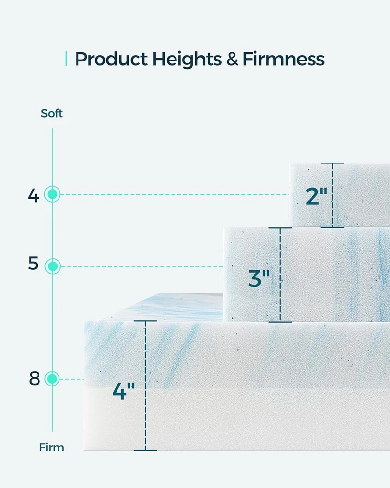 Color White and Blue Size Twin Fabric Type Memory Foam Special Feature Cooling, Noiseless About this item Gel Memory Foam Mattress Topper - Infused with real gel beads to prevent overheating, you can enjoy the blend of softness and cooling, ensuring you wake up refreshed and rejuvenated. Upgrade your sleep experience with LINSY LIVING twin mattress topper! High Density Memory Foam - Made of 30D memory foam, the slow rebounce feature of our gel memory foam can make your bed softer and help to increase the comfort level of your bed Take Your Sweet Dreams Back - Is your mattress old enough to make you feel the spring underneath? It is time to get a LINSY LIVING twin mattress topper, with it's soft and comfy, your sleep quality would be completely improve within affordable budget. Upgrade your bed does not need to buy a whole new mattress CertiPUR-US Certified - LINSY LIVING memory foam mattress topper twin has passed the CertiPUR-US test, which means our mattress topper has passed strict tests and meet the standards for smell, material, performance and durability, a bed topper you can definitely trust 3 Thickness Option - Our gel memory foam mattress topper comes in 3 firmness option. 3 inch is medium firm, it's ideal for most people with softness of 5, offering a balance of soft and support. Choose the 2 inch version for softer experience and 4 inch version for firmer need. Color White and Blue Size Twin Fabric Type Memory Foam Special Feature Cooling, Noiseless Closure Type Pull On Product Care Instructions Spot Clean Only Water Resistance Level Not Water Resistant Age Range (Description) All Ages Material Gel Memory Foam Model Name 3 Inch Mattress Topper Number of Items 1