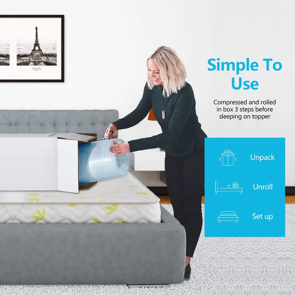 Reminder and Notices: Please put the mattress topper flatly in a ventilated area for 24~36 hours until fully expanded. Don’t forget to rotate the foam topper every months to enhance the lifespan of it. Manual measurement has been used, there may be some reasonable error. Please confirm the product size before purchasing, to make sure the size of our product is in line with your requirements. Items may slightly differ from photo in terms of color due to the lighting or your monitor’s display. Pictures taken with professional equipment, for reference only. Best specification: Item Display Height:2.0 Inches ---It is also very suitable for who are side sleepers and patients with joint pain. ---Designed to be placed right on top of your current mattress for an added comfort layer. ---Correctly aligns the spine by supporting the head, neck and shoulders. ---Specialized memory foam is soft. Infused with temperature-controlling to help distribute heat across your mattress. Memory Foam Mattress Topper Topper Foam Toppers Mattress Topper Mattress Topper , Memory Foam Mattress Topper