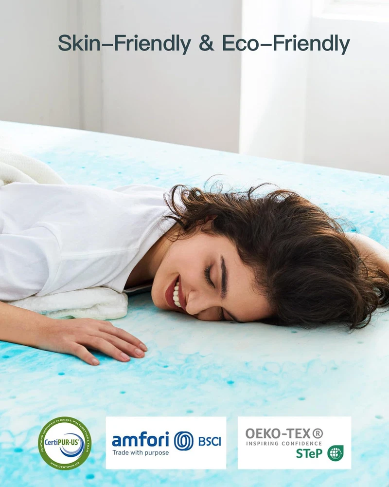 Upgraded Sleep Experience: Improve comfort & support for sleep without spending a fortune on a new bed. Renew an old mattress, transform a hard mattress, or enhance a new mattress with this queen memory foam mattress topper. All-Night Comfort: This high-density memory foam mattress topper queen conforms to your body and provides real support for shoulders, back, waist, hips, and legs. It's suitable for all sleeping positions and brings ultimate relaxation. Breathable & Cool: This queen bed topper is breathable and has airflow channels to carry excess heat away, helping you have a cool night. It's also infused with cooling gel for an enhanced cooling effect. Certified Mattress Topper: The queen foam mattress topper has been tested to meet rigorous CertiPUR-US standards for content, emissions, and durability. It's safe and skin-friendly, so the whole family can use it with confidence. Easy to Carry & Unroll: The foam mattress topper is convenient for use around the home on sofa beds, air mattresses, and floors. The topper is delivered to you compressed and needs 24–48 hours to fully expand (may take longer in low temperatures).