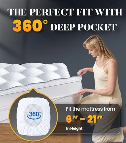 Return Policy Fast Delivery Trusted seller 3 Inch Ultra-Fluffy Memory Foam Mattress Topper Queen for Back Pain, Extra Soft Pillow Top Queen Mattress Topper with 4X Support, Mattress Pad with Breathable Air Mesh Sides, 6-21'' Deep Pocket Product Description MEMORY FOAM COMBINING SOFTNESS AND SUPPORT! Is your firm gel memory foam mattress topper too hard, and your down alternative topper too soft, causing you to toss and turn with body aches? Filled with a blend of 40% memory foam and 60% fiber, bed topper is designed for coordinated support and softness. Experience the plush comfort akin to sinking into a fluffy cloud, yet maintaining support that contours perfectly to your body, effectively relieving pressure points! FLUFFY AND COZY THAT WON'T GO AWAY! Made with premium fabric and refined diamond-quilted techniques, this mattress pad ensures even distribution of filling and prevents clumping over time. With sufficient memory foam filling, memory foam mattress topper will not flatten or lose its softness over time, unlike other queen mattress toppers on the market. Our mattress topper queen will consistently offer you the utmost comfortable softness! ENJOY A BREATHABLE AND SWEAT-FREE NIGHT'S SLEEP. Featuring an innovative 3D air mesh design, pillow top mattress topper queen allows air to flow in and out from all directions, preventing heat buildup and maximizing temperature regulation to keep you cool and dry throughout the night. Prioritizing your safety, our foam mattress topper is Oeko-Tex Standard 100 certified, ensuring it is free from harmful chemicals and ing a healthy sleep! DEEP POCKETS FOR PERFECT FIT! Our mattress topper are available in 9 sizes, whether you have a queen bed or a cal king bed. Coming in the fitted sheet style with 18" elastic deep pocket, our queen size mattress topper can accommodate your mattresses from 6" to 21" in height and provide an extra protection for them. The deep elastic pockets provides a secure grip, allowing you to freely change positions without causing the mattress topper to slide or shift. HASSLE-FREE REPLACEMENT - NO NEED TO RETURN! Our high-quality mattress topper saves you from the expense of replacing an expensive mattress, helping alleviate body fatigue. Our commitment extends to service quality, with each purchase including a 10-year after-sales . If you're not satisfied, t's no need to struggle with packing the thick mattress topper back into the original shipping box. We offer free replacements or refunds without requiring a return! Product Functionality: The product contains memory foam, which is subject to compression during packaging, shipping, and storage. This is a normal characteristic of memory foam. Please strictly follow the necessary steps listed in the product instructions to restore the full thickness and volume of the product. Shipping Returns Payment Shipping Shipping is FREE to all addresses other than APO/PO boxes in the lower 48 states. All our stock ships from US-based warehouses. Shipped via USPS or UPS (depending on location and package weight) Unless stated otherwise, all orders will ship within 24-72 hours of your payment being processed. Check our feedback to see the great reviews of FAST shipping we offer. Returns Seller does not accept returns Payment We currently accept payment via eBay managed payments only. Once payment is cleared, we will dispatch your shipment within 1-3 business days. Please refer to the "Shipping" tab for more information regarding shipping speed to your destination.
