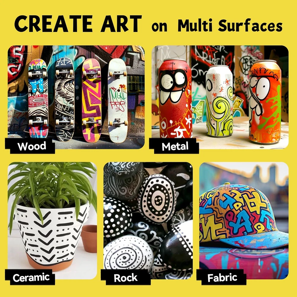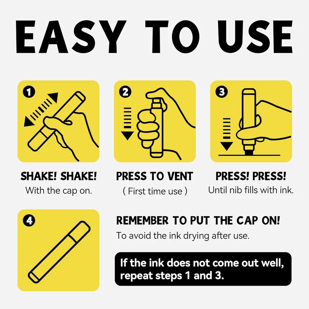 Store New Arrivals Add to Favorite View Feedback Contact 3 Jumbo Permanent Markers White, 15Mm Thick Wide Tip, Large Acrylic Paint Markers for Rock Painting, Poster, Stone, Ceramic, Glass, Wood, Canvas Description Item model number ART001White Closure Snap Number of Items 3 Color White Material Type Plastic Brand SRUOLOC Line Size Jumbo 3/5 inch(15mm), Medium 1/5inch(5mm), Fine 1/8inch (2mm) Inches Manufacturer Part Number ART001White Item Weight 5.6 ounces Recommended Uses For Product Coloring, Calligraphy, Writing, Painting Ink Color White Manufacturer SRUOLOC Point Type Jumbo Package Dimensions 5.39 x 3.03 x 1.06 inches Size 1 Count (Pack of 3) Jumbo Permanent Markers Set: SRUOLOC jumbo white markers are made with the highest-quality water-based acrylic ink. That is waterproof, quick dry, long-lasting, and smooth ink flow Safety First – Our acrylic paint markers are non-toxic, Each thick permanent marker meets ASTM d-4236 and EN-71 safety standards, are suitable for artists of all ages, working seamlessly on rock, fabric, glass, wood, plastic, paper, and more 3-IN-1 NIB: (fine, medium, and jumbo) The thick tip permanent markers felt wide tip is not only equipped with 3-IN-1 nib, but also allows the jumbo marker paint pen to produce smooth and even ink MULTI-SURFACE: Our permanent jumbo poster markers are versatile enough to be used on a variety of surfaces, ideal for wall-painting, posters, stone, ceramic, glass, wood, fabric, canvas, plastic, metal, resin, terracotta, seashell, and more The permanent acrylic markers black set is perfect for artists to use on DIY designs, arts, and crafts, and painting projects. Product Description More color Add to Cart Add to Cart Add to Cart Add to Cart Add to Cart Customer Reviews 4.4 out of 5 stars 198 4.4 out of 5 stars 198 4.4 out of 5 stars 198 4.4 out of 5 stars 198 4.4 out of 5 stars 102 Price $9.99 $ 9 . 99 $9.99 $ 9 . 99 $9.99 $ 9 . 99 $9.99 $ 9 . 99 $25.99 $ 25 . 99 Color Black White Gold Silver 12 Colors Unit Count 3 3 3 3 12 Water-based Ink ✔ ✔ ✔ ✔ ✔ Non-toxic ✔ ✔ ✔ ✔ ✔ Waterproof ✔ ✔ ✔ ✔ ✔ ABOUT US We offer the best prices around on high quality products. Our E-store includes media such as books, movies, music and games while offering electronics, toys, sporting apparel, clothing, tools, general home, garden items and more. SHIPPING We are always working hard to ensure your package arrives as soon as possible. Please understand that some factors like weather, high postal traffic, and the performance of shipping companies are outside of our control. We offer free shipping to the lower 48 states and ship within 2 business days of payment, usually sooner. We do not accept P.O. Boxes. Please provide a physical address. RETURNS We offer a 30-Day Return Policy on items which you are not completely satisfied with. You have the option for a full-refund or an exchange of the item. No returns are available on items shipped outside of the USA. PAYMENT We accept PayPal. CONTACT US This page content is yet to come Please ad us to your favorite seller and visit again later Thank You CUSTOMER SATISFACTION We try our very best to make sure every customer is completely satisfied. If there's a problem, message us! We're happy to help.