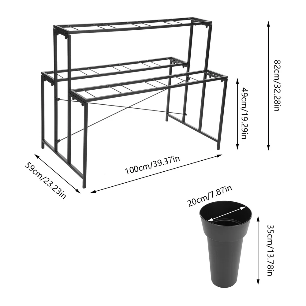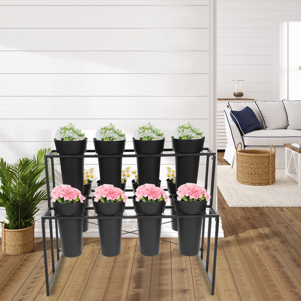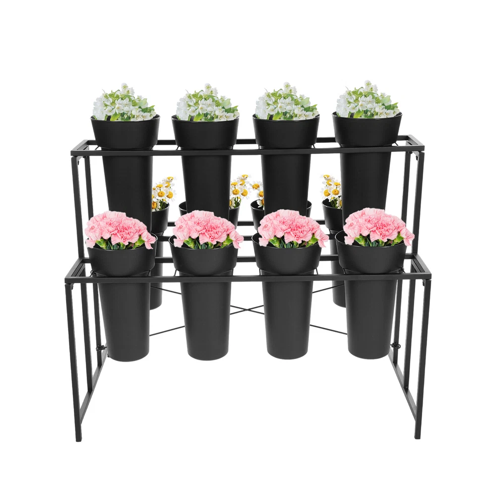 Specifications Style: Modern Color: Black Material: Metal, PP Surface Treatment: Rust Removal Mount Type: Floor Mount Assembly Required: Yes Number of Tiers: 3 Number of Buckets: 12 Max. Load Capacity: About 25kg/ 55.12 lbs Each Bucket Size(D*H): 20*35cm/ 7.87*13.78 in Stand Size: 100*59*82cm/ 39.37*23.23*32.28 in First Shelf Height: 49cm/ 19.29 in Flower Bucket: Gross Weight: 4kg/ 8.82 lbs Net Weight: 3.8kg/8.38 lbs Package Size: 72*22*22cm/ 28.35*8.66*8.66 in Stand: Gross Weight: 7.5kg/ 16.53 lbs Net Weight: 7kg/ 15.43 lbs Package Size: 103*62*9cm/ 40.55*24.41*3.54 in Package Included 1* Flower Display Stand 1* X-shape Reinforced Bracket 12* Flower Buckets 3 Layer Metal Flower Display Stand Plant Stand Flower Display Stand W/12 Buckets Welcome to our store~ Description This flower display stand is not only a stage for flowers but also a spiritual poem in your home life. It is carefully crafted with high-quality materials and blends modern design aesthetics with practicality, allowing the story of each bouquet to be interpreted. Its multi-layer design is staggered, so that even a small space can create a rich visual hierarchy, allowing each flower to have its stage. Choose it to add a splash of color to your life. Key Features Sturdy and Durable: The product is made of high-quality metal and PP, using rust removal treatment, with high strength, wear resistance, and long service life. Display Assistant: 3-tier display shelves with stepped distribution and 12 flower buckets not only meet your basic flower display needs without blocking each other's view but also allow for easy access. You can freely combine the types of flowers to make different visual effects. In addition, its PP bucket can be removed for use and placed on the dining table with plants, which will be a great decorative piece. Excellent Load-bearing Capacity: The stable stepped s tructure, high-quality material, and strong fixation give it a weight capacity of 55.12 lbs, allowing you to display your flowers with peace of mind. Beautifully Decorated: Its minimalist structure not only provides good support for flowers but also adds a touch of aesthetic style to your indoor or outdoor space as if bringing the garden into your home and embracing nature at all times. Space-saving: Its small footprint (39.37*23.23 inches) and multi-tier design make full use of vertical space and can be placed on the floor without delaying the rest of your work. The stackable buckets also ensure space-saving storage when not in use. Easy to Clean: The smooth surface, removable design, and simple structure design allow you to easily remove dust from the surface of the product with a towel. Easy Installation: The complete accessories and simple construction allow you to easily install this product and enjoy the hands-on fun of it. Customer Service: We stand behind all our guests and look forward to assisting you with your purchase. It is our pleasure to answer your confusion and questions. The end of the story between us is definitely not "we sell and you buy" Details Conical Flower Bucket: This design fits the branches well and makes the flowers easy to see. Its large caliber (7.87'') makes it easy to accommodate and hold more flowers. Crossbars: The X-shape reinforced bracket enhances the stability of this stand without easily collapsing. Application This product is suitable for florists, gardens, parks, exhibitions, farms, shops, etc. It can be used to display roses, sunflowers, carnations, lilies, chrysanthemums, asters, and other flowers and plants. Specifications Style: Modern Color: Black Material: Metal, PP Surface Treatment: Rust Removal Mount Type: Floor Mount Assembly Required: Yes Number of Tiers: 3 Number of Buckets: 12 Max. Load Capacity: About 25kg/ 55.12 lbs Each Bucket Size(D*H): 20*35cm/ 7.87*13.78 in Stand Size: 100*59*82cm/ 39.37*23.23*32.28 in First Shelf Height: 49cm/ 19.29 in Flower Bucket: Gross Weight: 4kg/ 8.82 lbs Net Weight: 3.8kg/8.38 lbs Package Size: 72*22*22cm/ 28.35*8.66*8.66 in Stand: Gross Weight: 7.5kg/ 16.53 lbs Net Weight: 7kg/ 15.43 lbs Package Size: 103*62*9cm/ 40.55*24.41*3.54 in Package Included 1* Flower Display Stand 1* X-shape Reinforced Bracket 12* Flower Buckets Notes We ship the flower buckets and stand separately to protect the product from damage during shipping. Please be patient as all parts arrive. Please note that this product does not include other products such as flowers. Please use the product within its load capacity. Please allow the slight color difference caused by the shooting light and 1-3cm error due to manual measurement, and make sure you do not mind before you order. *Description* Payment Delivery details Terms of sales About us Contact us Payment We accept ebay payment 。 Fees such as import duties, taxes are not included in the item price or shipping costs. These charges are the buyer's responsibility. Delivery details Shipping: 2-9 working days to: USA Terms of sales We maintain high standards of excellence and strive for hundred percent customer satisfaction. Feedback is very important to us. We hope that you contact us immediately before you give neutral or negative feedback, so that we can address your concerns. It is impossible to address issues if we do not know about them! About us Your satis faction is our ultimate goal. We work hard to earn your trust and future business. Our certified technicians have tested each item before shipping. The unit comes with 1 year limited warranty on all manufacturing defects. a) If you receive a defective item, you may return it or ask for a discount. Please contact us within 14 days after you receive the package. b) What you returned must be intact and in its original packaging as re? u. Customer is responsible for shipping costs of the returned item. c) We will cover the cost of shipping back t with the shipping rate indicated in the registration page. We will send you a new unit or refund the full payment you paid. Thank you. Contact 