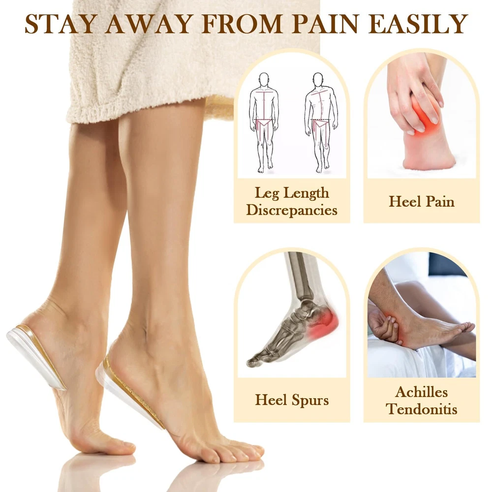 3 Layers Adjustable Heel Lift Inserts, Orthopedic Gel Heel Pads for Shoes, He...