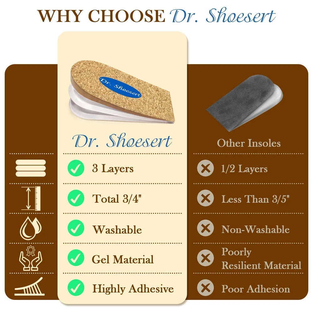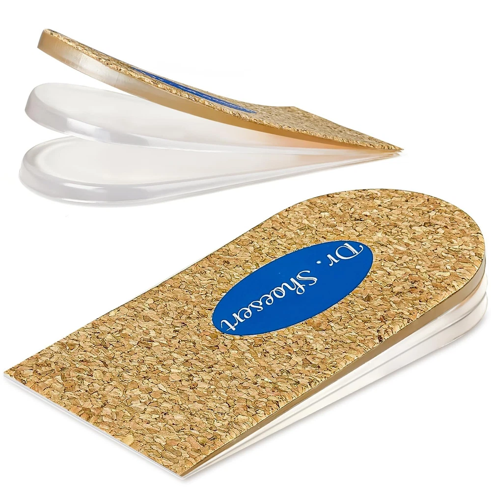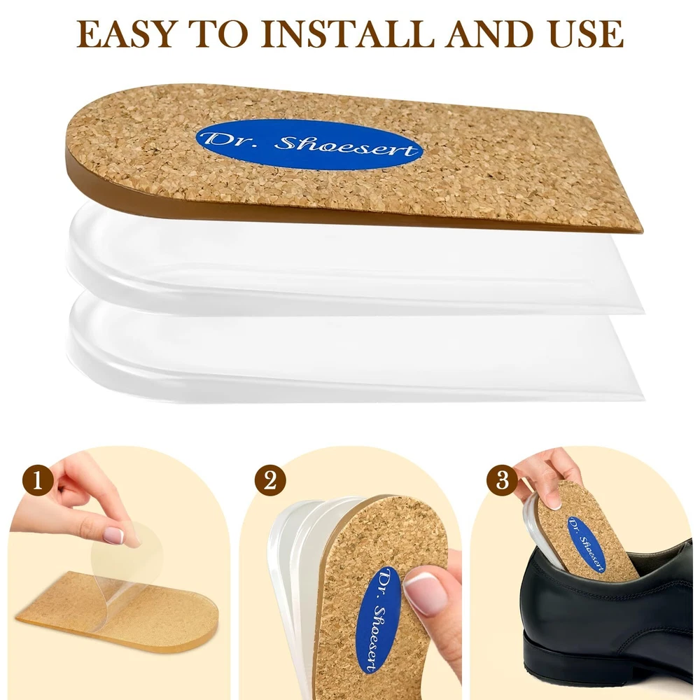 EASY TO USE - Each heel pads for shoes has self-adhesive bonding, just peel off the film on the back of the heel lift and place it on the heel of your shoes where it fits, it will not easily slide inside your shoes, you can also cut your own size according to the different shapes of your shoes to fit your shoes perfectly. 3 LAYERS ADJUSTABLE DESIGN - The height increase insoles include a total of three 1/4" pads, you can adjust to 1/4", 2/4" and 3/4" heights at will according to your needs, you can customize your own lifting heights that best suits you for a better corrective leg length deviation or height increase effect. EASY RELIEF FROM FOOT PROBLEMS - Simply place the right height shoe lifts into your shoes for easy relief from heel pain, heel spurs, Achilles tendonitis, pain from sports injuries, and correction of leg length discrepancies. WASHABLE & REUSABLE - Our heel inserts are made of GEL material which is not only soft and comfortable, but can also be washed in water to make the heel pads look new and reusable. TWO SIZES FIT MOST SHOES - This heel lift have two sizes please choose the exact size that matches your shoes, small size is suitable for women's size 4.5-9.5, men's size 6-8.5, large size is suitable for women's size 10-13, men's size 9-14. The height increase insoles are suitable for many types of shoes, such as sneakers, leather shoes, boots, sandals, slippers and high heels, etc., which makes you more convenient to use.
