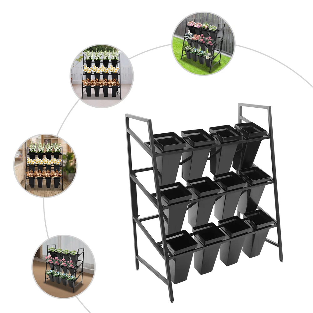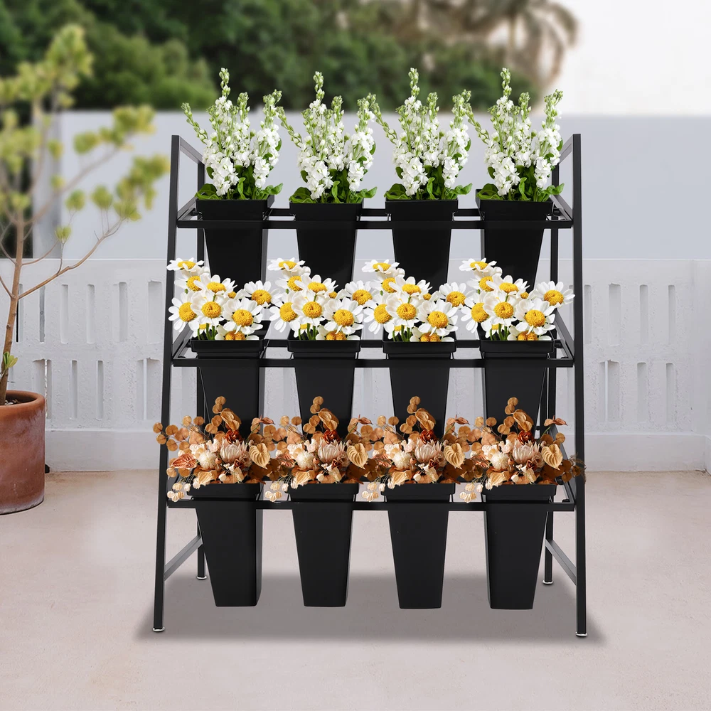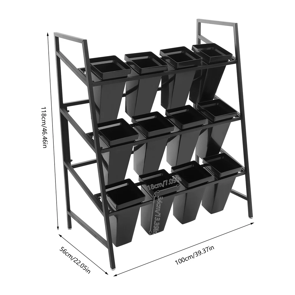 Specifications Style: Modern Shape: Rectangular Color: Black Material: Metal, PP Process: High-temperature Spray Molding, Rust Removal Mount Type: Floor Mount Assembly Required: Yes Number of Tiers: 3 Number of Buckets: 12 Overall Max. Load-bearing Capacity: About 25-30kg/55.12-66.14 lbs Each Bucket Size(L*H): 18*34cm/7.09*13.39 in Stand Size: 100*56*118cm/39.37*22.05*46.46 in Bucket Package Size: 72*22*22cm/28.35*8.66*8.66 in Gross Weight: 5kg/11.02 lbs Net Weight: 4.5kg/9.92 lbs Stand Package Size: 102*62*8.5cm/40.16*24.41*3.34 in Gross Weight: 6kg/13.23 lbs Net Weight: 5kg/11.02 lbs Package Included 1* Flower Display Stand 12* Buckets 3 Layers Metal Flower Display Stand with 12PCS Buckets for Garden Florist Description This flower display stand is both stylish and practical. It is made of high-quality metal, which is sturdy and durable. The 12 flower buckets are enough for you to place different kinds of flowers. Featuring a three-tier ladder structure and freestanding open design, it allows for easy watering and fertilizing. High-quality materials and a stable structure give it a total carrying capacity of 55.11-66.14 lbs. You can put it indoors or outdoors, it is ideal for you to place and display flowers. Key Features Sturdy and Durable: The product is made of high-quality metal and PP with high-temperature spray molding and rust treatment, which is wear-resistant, corrosion-resistant, and not easy to rust, ensuring a long service life. Great Decoration: Designed with a modern and simple concept, its beautiful geometric shapes create a timeless feel. Combined with various beautiful fresh flowers and plants (not included), it will bring you an eye-catching sight whether in homes or flower shops. Carefully Designed: It adopts a 3-tier ladder structure and freestanding open design for easy watering and fertilizing at each level, helping plants get enough sunlight in a comfortable environment to encourage growth. Large Capacity: This three-tier planter has 12 buckets, each bucket is 13.39 inches high, enough for you to place different kinds of flowers, whether it's for business or home use, it will meet your needs well. Strong Load-bearing Capacity: The high-quality material and stable structure provide it with a total load-bearing capacity of 55.12-66.14 lbs, so you don't have to worry about it being easily deformed and damaged, using it with peace of mind. Thoughtful Design: 12 flower buckets enable you to sort and arrange different flowers according to the type and living conditions, which is also very convenient for customers to pick. Moreover, the buckets are deep enough (13.39in) to accommodate long rhizomes. You can fill soil and water (not included) into buckets to keep plants and flowers alive for a long time. Space-saving: The overall footprint is 39.37*22.05*46.46 in, making full use of vertical space and saving floor space. Easy Assembly: With a simple structure and complete accessories, you can install it quickly and enjoy the assembly process. Easy to Clean: Thanks to its simple structure, smooth surface, and removable flower buckets, you can easily clean it with water and a cloth (not included). Protective Package: Bubble bags can effectively reduce the normal impact and ensure that it is fully delivered to you to the greatest extent. Ideal Gift: Thanks to its beauty and practicality, you can give it to your friends or colleagues as a wedding, Christmas, or Thanksgiving gift. Details Anti-slip Feet: They can better maintain the stability of the product and improve the safety of use. Widened Bucket Top: It allows you to quickly and easily hang the bucket on the flower stand. Application You can fill soil and water into buckets to keep plants and flowers alive for a long time. It is suitable for garden parties or outdoor event decorations, as well as organizing and displaying flowers and plants in homes, gardens, florists, entrances, living rooms, sunny windows, stairwells, screened terraces, porches, cactus gardens, pool areas, balconies, rooftops, terraces, florists' clubs, weddings, and more. Specifications Style: Modern Shape: Rectangular Color: Black Material: Metal, PP Process: High-temperature Spray Molding, Rust Removal Mount Type: Floor Mount Assembly Required: Yes Number of Tiers: 3 Number of Buckets: 12 Overall Max. Load-bearing Capacity: About 25-30kg/55.12-66.14 lbs Each Bucket Size(L*H): 18*34cm/7.09*13.39 in Stand Size: 100*56*118cm/39.37*22.05*46.46 in Bucket Package Size: 72*22*22cm/28.35*8.66*8.66 in Gross Weight: 5kg/11.02 lbs Net Weight: 4.5kg/9.92 lbs Stand Package Size: 102*62*8.5cm/40.16*24.41*3.34 in Gross Weight: 6kg/13.23 lbs Net Weight: 5kg/11.02 lbs Package Included 1* Flower Display Stand 12* Buckets Notes Please note that flowers are not included in this product. Please note that this product is shipped in two packages. Please do not place overweight objects on the product. If you put it too heavy, it is easy to break. Please allow the slight color difference caused by the shooting light and 1-3cm error due to manual measurement, and make sure you do not mind before you order. Payment Delivery details Terms of sales About us Contact us Payment We accept ebay payment 。 Fees such as import duties, taxes are not included in the item price or shipping costs. These charges are the buyer's responsibility. Delivery details Shipping: 2-9 working days to: USA Terms of sales We maintain high standards of excellence and strive for hundred percent customer satisfaction. Feedback is very important to us. We hope that you contact us immediately before you give neutral or negative feedback, so that we can address your concerns. It is impossible to address issues if we do not know about them! About us Your satis faction is our ultimate goal. We work hard to earn your trust and future business. Our certified technicians have tested each item before shipping. The unit comes with 1 year limited warranty on all manufacturing defects. a) If you receive a defecti