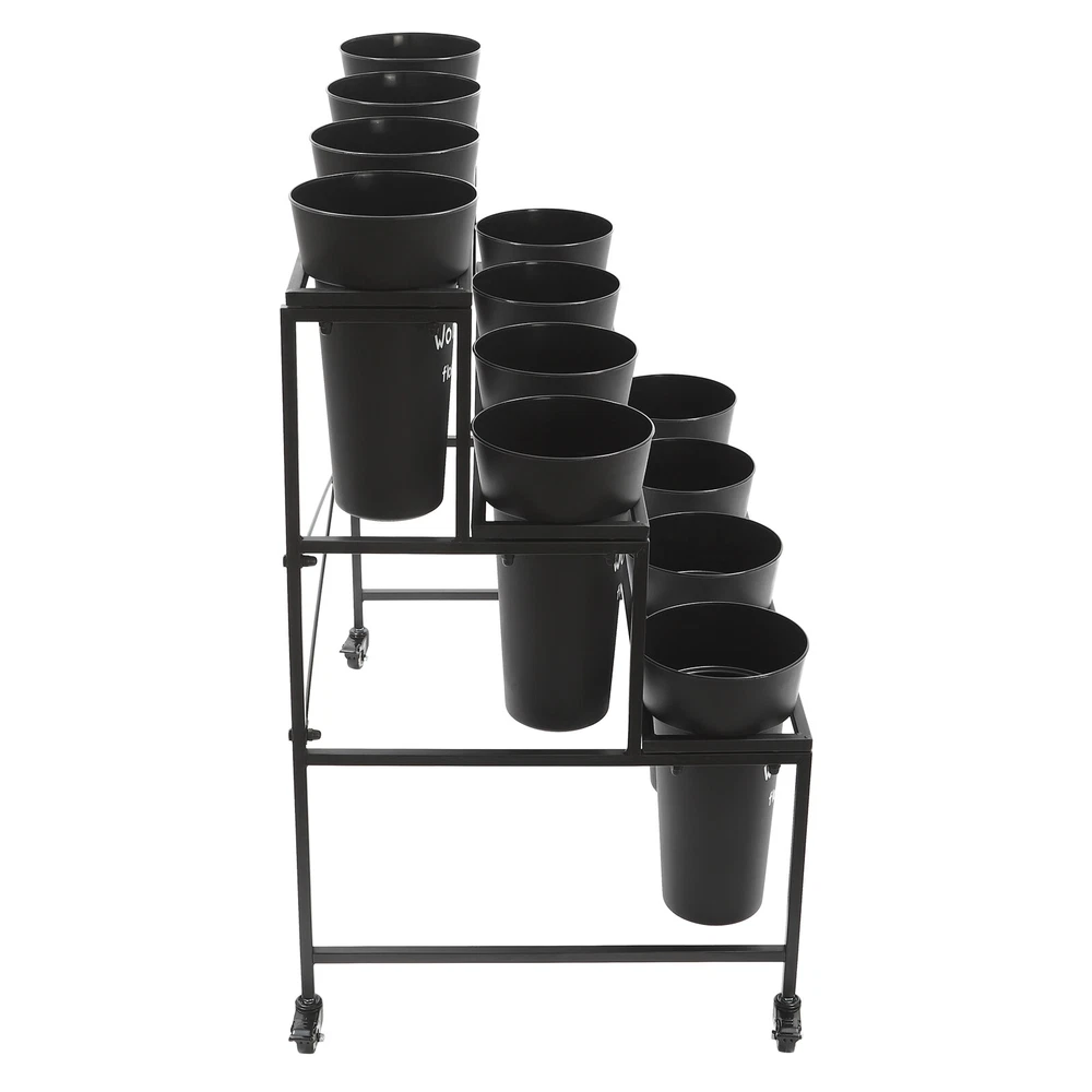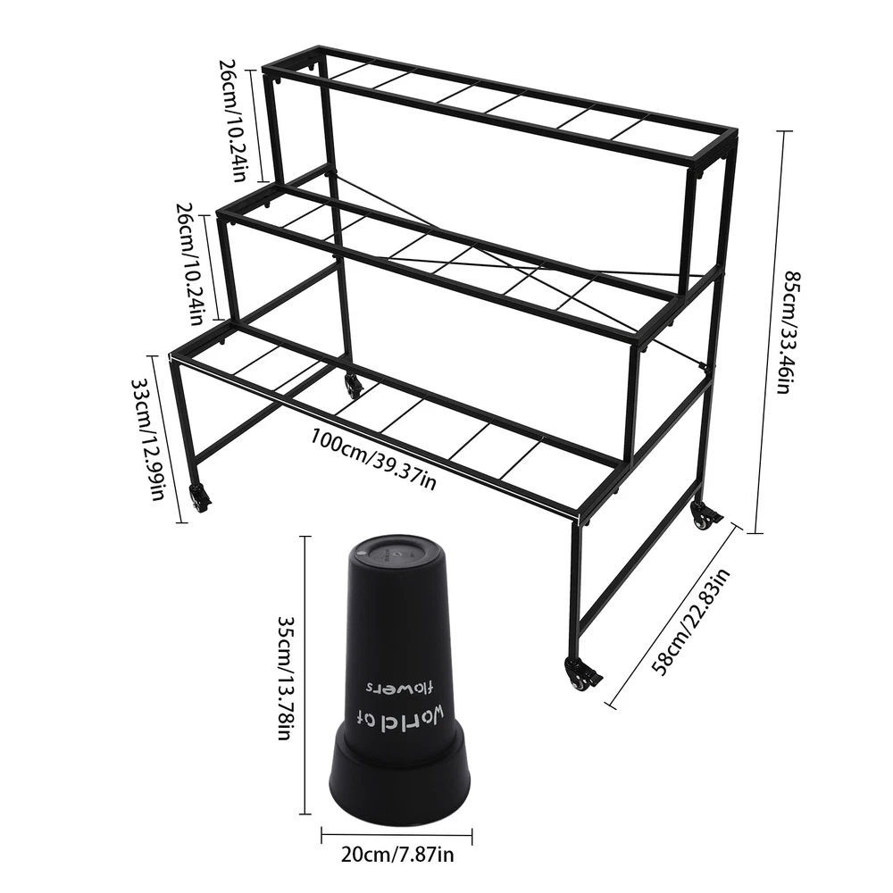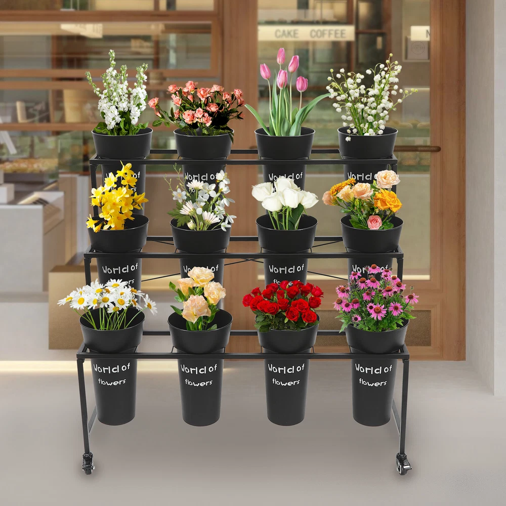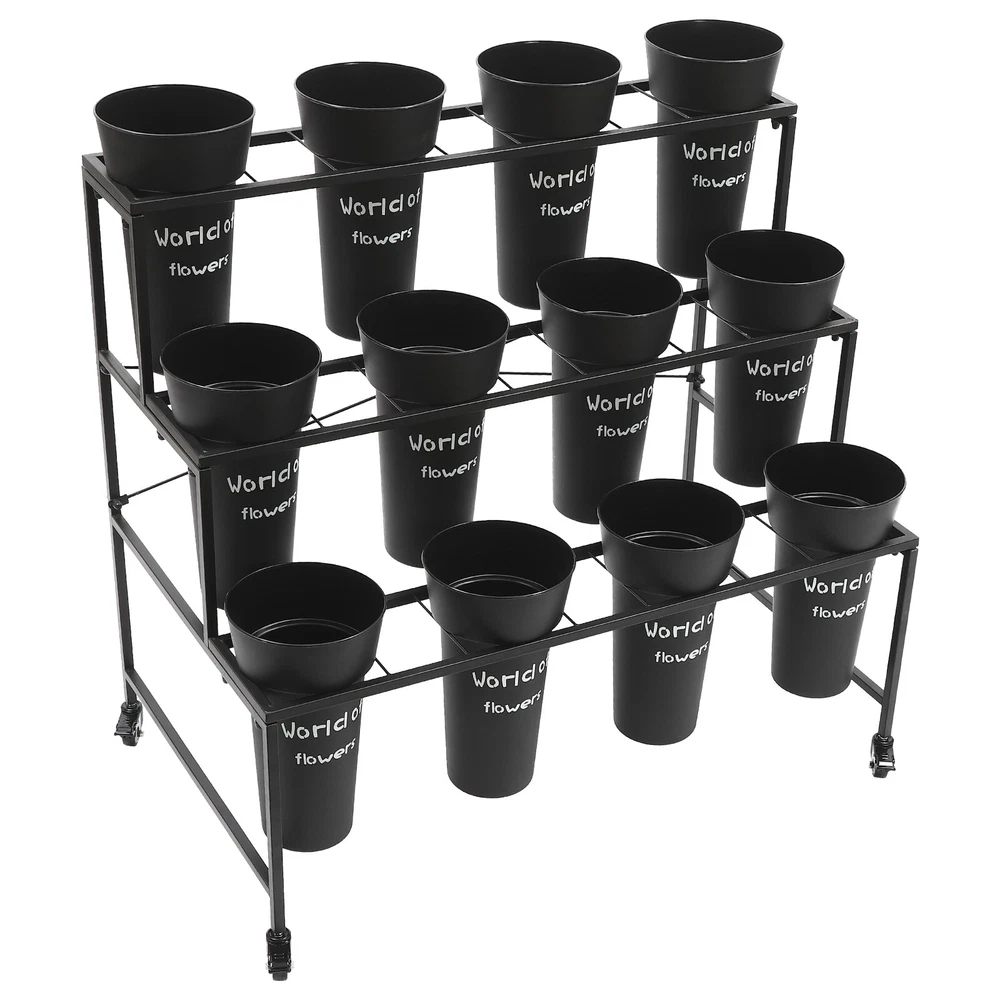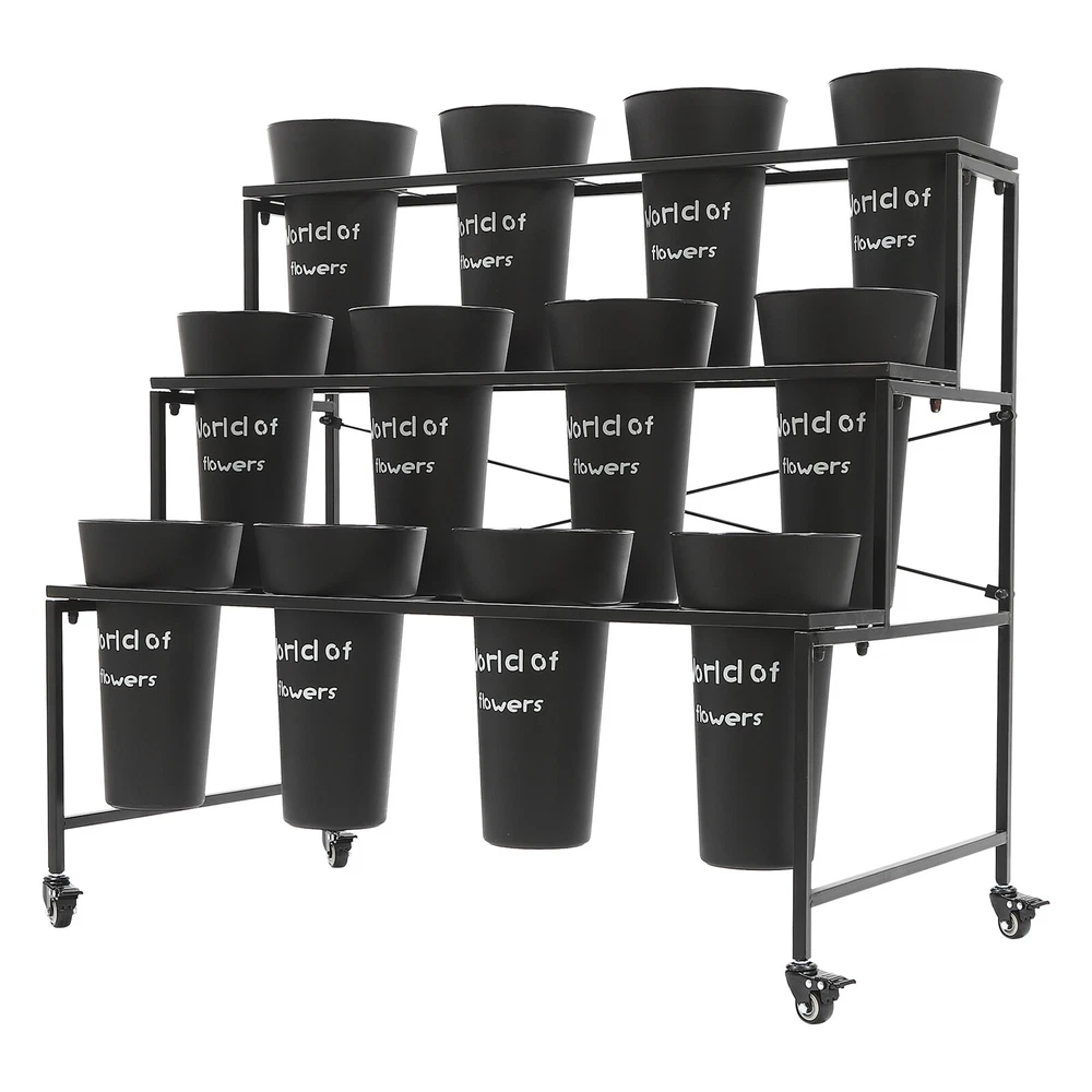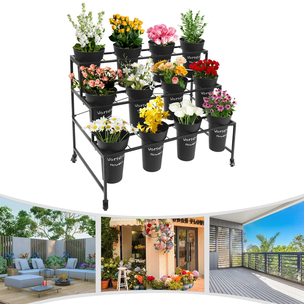 Specification Color: Black Style: Modern Number of Tiers: 3 Material: Steel, PP Process: Welding, Grinding, Spraying, Printing Assembly Required: Yes Mounting Type: Free Standing Each Bucket Size(D*H): 20*35cm/7.87*13.78in Plant Stand Size: 100*58*85cm/39.37*22.83*33.46in Tier Spacing: 26cm/10.24in; 26cm/10.24in; 33cm/12.99in Flower Buckets: Package Size: 72*22*22cm/28.35*8.66*8.66in Gross Weight: 4kg/8.82lbs Net Weight: 3.5kg/7.72lbs Plant Stand: Package Size: 102*62*8cm/40.16*24.41*3.15in Gross Weight: 7kg/15.43lbs Net Weight: 6.5kg/14.33lbs Package Included 1*3-Tier Plant Stand 12*Flower Buckets 4*Casters 1*Wrench 3 Layers Moving Plant Cart Shelf with Wheels Flower Display Stand + 12 Buckets Welcome(●'◡'●) Description If you like to keep flowering plants, then I believe a practical kit for displaying flowers is essential. Our flower display stand features a three-tier design with 12 flower buckets to form a complete set, meeting your flower planting and displaying needs at once and adding a splash of color to your home decoration. Key Features Made to Last: The plant stand is made of high-strength steel after welding, grinding, and spraying processes, sturdy and durable, and not easy to rust and deform. The flower bucket is made of premium PP after extrusion and printing treatment, hard and exquisite. Complete Set: The three-tier plant stand and 12 flower buckets form a complete set to fulfill your flower planting or display needs at once, you don't need to buy extra. Stepped Structure: The plant stand features a three-tier stepped structure with an open design, avoiding shading each other, making it easy to fertilize and water, and helping plants get enough sunlight in a comfortable environment to promote growth. A Beautiful Sight: The black flower buckets and stand match various beautiful fresh flowers and plants, bringing you an eye-catching sight whether in homes or flower shops. Easy to Move: The universal wheels with brakes make it easy to move this product from one room to another, ensure safe fixation when it needs stable placement, and allow for convenient floor cleaning. Simple Installation: Thanks to its complete accessories and simple structure, you can easily and quickly assemble this product without complicated tools, ensuring you can use it in a short time. Effortless Cleaning: It has a smooth surface and an open structure, so you only need to wipe the dust or residue with a towel or rinse it with water. Easy to Store: The removable plant stand and stackable buckets are easy to store when not in use. Ideal Gift: With good performance and a modern appearance, it can be used as an ideal housewarming gift for parents, friends, lovers, or other flowering enthusiasts. Good Customer Service: We aim to provide quality products and services. If you have problems, please feel free to contact us. We will reply and solve the problem for you as soon as possible. Details Crossbars: The crossbars at both sides and the X-shape reinforced brackets enhance the stability of this stand without easily collapsing. Thickened Bucket Rim: The thickened bucket rim is not easy to crack, increasing the service life of the flower bucket and allowing you to add soil and water to it with confidence. Application This product is suitable for growing, organizing, and displaying various flowers and plants in homes, gardens, florists, clubs, weddings, etc. Specification Color: Black Style: Modern Number of Tiers: 3 Material: Steel, PP Process: Welding, Grinding, Spraying, Printing Assembly Required: Yes Mounting Type: Free Standing Each Bucket Size(D*H): 20*35cm/7.87*13.78in Plant Stand Size: 100*58*85cm/39.37*22.83*33.46in Tier Spacing: 26cm/10.24in; 26cm/10.24in; 33cm/12.99in Flower Buckets: Package Size: 72*22*22cm/28.35*8.66*8.66in Gross Weight: 4kg/8.82lbs Net Weight: 3.5kg/7.72lbs Plant Stand: Package Size: 102*62*8cm/40.16*24.41*3.15in Gross Weight: 7kg/15.43lbs Net Weight: 6.5kg/14.33lbs Package Included 1*3-Tier Plant Stand 12*Flower Buckets 4*Casters 1*Wrench Notes To avoid product damage during shipping, our product is shipped in two packages. Please allow the slight color difference caused by the shooting light and 1-3cm error due to manual measurement, and make sure you do not mind before ordering. DESCRIPTION: SELLER HELP Payment Delivery details Terms of sales About us Contact us Payment We accept ebay payment 。 Fees such as import duties, taxes are not included in the item price or shipping costs. These charges are the buyer's responsibility. Delivery details Shipping: 2-9 working days to: USA Terms of sales We maintain high standards of excellence and strive for hundred percent customer satisfaction. Feedback is very important to us. We hope that you contact us immediately before you give neutral or negative feedback, so that we can address your concerns. It is impossible to address issues if we do not know about them! About us Your satis faction is our ultimate goal. We work hard to earn your trust and future business. Our certified technicians have tested each item before shipping. The unit comes with 1 year limited warranty on all manufacturing defects. a) If you receive a defective item, you may return it or ask for a discount. Please contact us within 14 days after you receive the package. b) What you returned must be intact and in its original packaging as re? u. Customer is responsible for shipping costs of the returned item. c) We will cover the cost of shipping back t with the shipping rate indicated in the registration page. We will send you a new unit or refund the full payment you paid. Thank you. Contact us Business Hour Business Hour: Monday To Friday: 8:30 AM to 5:00 PM (Beijing China time) Due to time zones, our reply to your questions may not be immediately. But within above working time, we will reply your email within 24 hours. If it's non-workdays, please kindly be patient and wait till Monday. Please contact us with ebay message. Please feel free to contact u