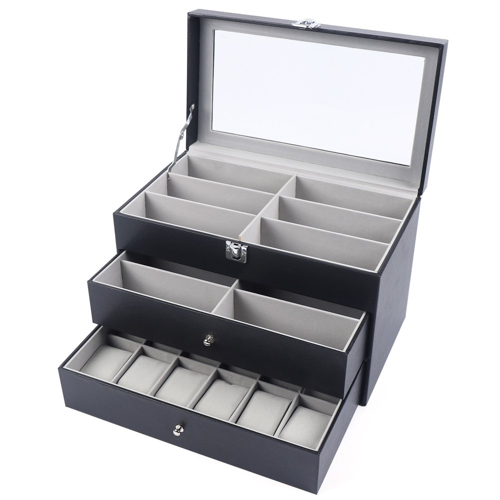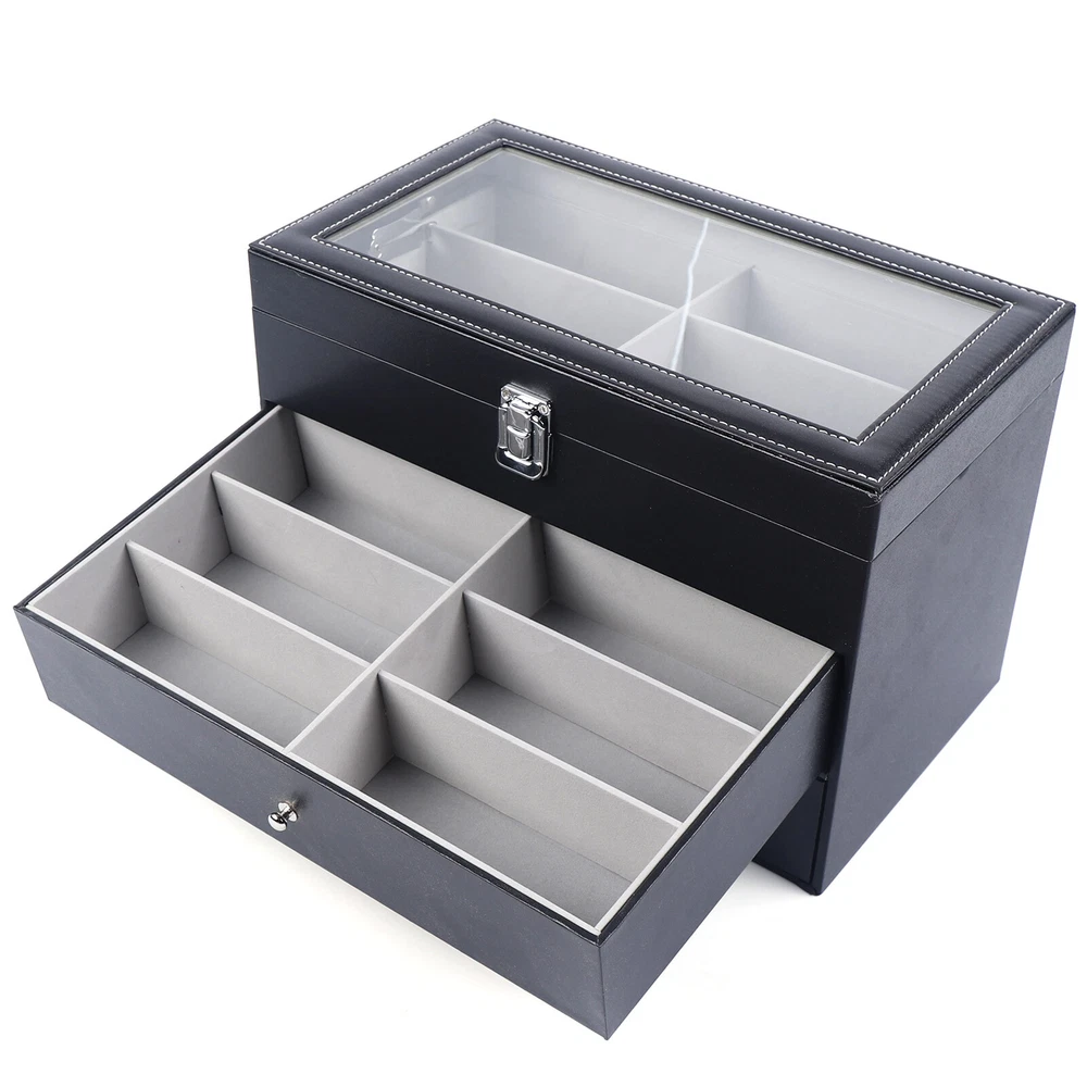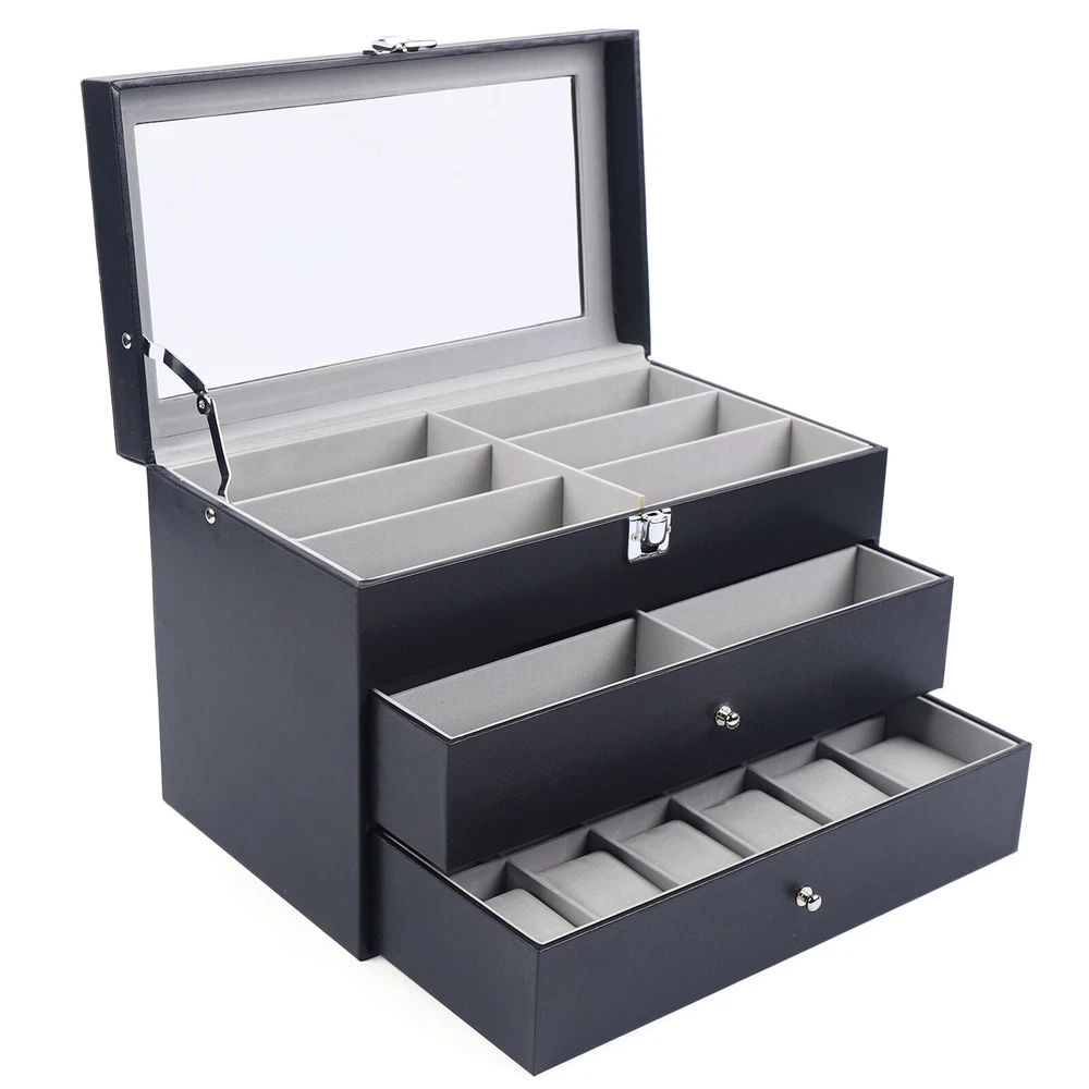Product Features: - High quality PU leather jewelry box with attractive appearance,simple structure,fine workmanship and sturdy construction - Metal Lock,Black High Grade PU Leather surface,Three levels,First and Second level includes 12 separate compartments to keep your sunglasses and glasses organized,Third level includes 12 removable velvet pillows - It's divided into plenty of unit space which are easy to clean and maintain,It will keep your watches and eyeglasses & sunglasses securely - This elegant jewelry case allows you to show your glasses and watch and other jewelry while protecting them away from dust,fingerprints,scratches and thieves 3 Layers Watch Display Box Jewelry Ring Organizer Case Sunglasses Storage Holder **Description of yybshop02** Product Features: - High quality PU leather jewelry box with attractive appearance,simple structure,fine workmanship and sturdy construction - Metal Lock,Black High Grade PU Leather surface,Three levels,First and Second level includes 12 separate compartments to keep your sunglasses and glasses organized,Third level includes 12 removable velvet pillows - It's divided into plenty of unit space which are easy to clean and maintain,It will keep your watches and eyeglasses & sunglasses securely - This elegant jewelry case allows you to show your glasses and watch and other jewelry while protecting them away from dust,fingerprints,scratches and thieves - Clear glass top gives you a open view and you can find your favorite treasure in seconds with this unique jewelry box.Perfect for home and business use,and a wonderful gift idea. Product Specification: - Material: High Grade PU Leather,Medium Density Fiberboard - Window: Glass - Color: Black - Product Dimensions (L x W x H): 13.38" x 7.48" x 8.66" (34 x 19 x 22 cm) First Tier: - Slot Size (L x W x H): 6.2" x 2.3" x 1.6" (15.7 x 5.8 x 4.1 cm) Second Tier: - Slot Size (L x W x H): 6.2" x 2.3" x 1.6" (15.7 x 5.8 x 4.1 cm) Third Tier: - Watch Slot Size (L x W x H): 3.1" x1.8" x 1.5" (8 x 4.5 x 3.8 cm); Pillow Size (L x W): 2.7" x 1.8" (7 x 4.5 cm) Packaging List: - 1 x Watch Display box - 12 x Removable Pillows **Description of yybshop02** Payment Delivery details Terms of sales About us Contact us Payment We accept ebay payment 。 Fees such as import duties, taxes are not included in the item price or shipping costs. These charges are the buyer's responsibility. Delivery details Shipping: 2-9 working days to: USA Terms of sales We maintain high standards of excellence and strive for hundred percent customer satisfaction. Feedback is very important to us. We hope that you contact us immediately before you give neutral or negative feedback, so that we can address your concerns. It is impossible to address issues if we do not know about them! About us Your satis faction is our ultimate goal. We work hard to earn your trust and future business. Our certified technicians have tested each item before shipping. The unit comes with 1 year limited warranty on all manufacturing defects. a) If you receive a defective item, you may return it or ask for a discount. Please contact us within 14 days after you receive the package. b) What you returned must be intact and in its original packaging as re? u. Customer is responsible for shipping costs of the returned item. c) We will cover the cost of shipping back t with the shipping rate indicated in the registration page. We will send you a new unit or refund the full payment you paid. Thank you. Contact us Business Hour Business Hour: Monday To Friday: 8:30 AM to 5:00 PM (Beijing China time) Due to time zones, our reply to your questions may not be immediately. But within above working time, we will reply your email within 24 hours. If it's non-workdays, please kindly be patient and wait till Monday. Please contact us with ebay message. Please feel free to contact us if you have any questions. Monday To Friday: 8:30 AM to 5:00 PM (Beijing China time) Due to time zones, our reply to your questions may not be immediately. But within above working time, we will reply your email within 24 hours. If it's non-workdays, please kindly be patient and wait till Monday. Please contact us with ebay message. Please feel free to contact us if you have any questions. Features1 stable performance,Durable Current Rating Does Not Apply MPN Does Not Apply EAN Does Not Apply Brand Unbranded modified item no ISBN Does Not Apply OE/OEM Part Number Does not apply MPN ( MPN ) n/a UPC Does Not Apply Material High Grade PU Leather,Medium Density Fiberboard Size 13.38" x 7.48" x 8.66" (34 x 19 x 22 cm) Type BOX Color Black Capacity More than 12 Watches