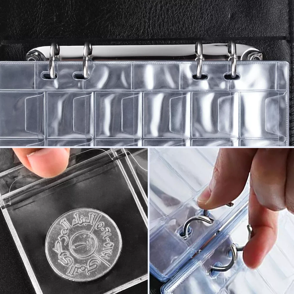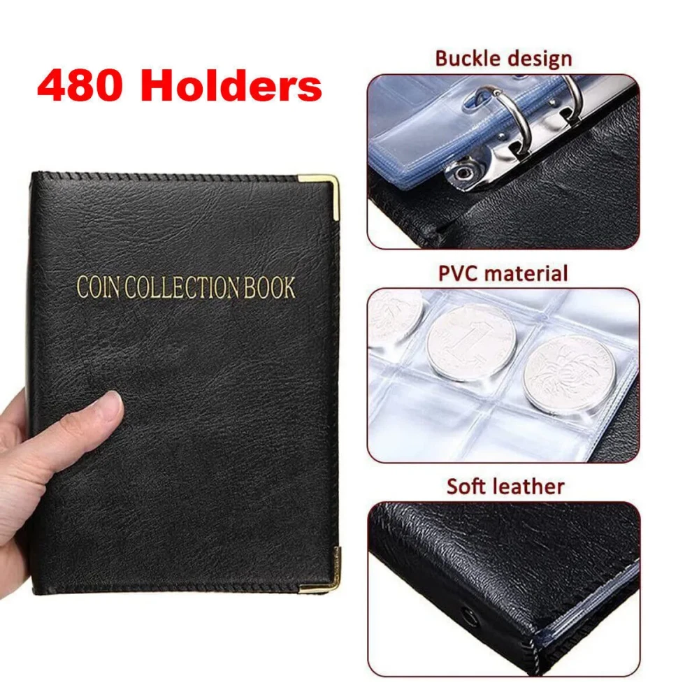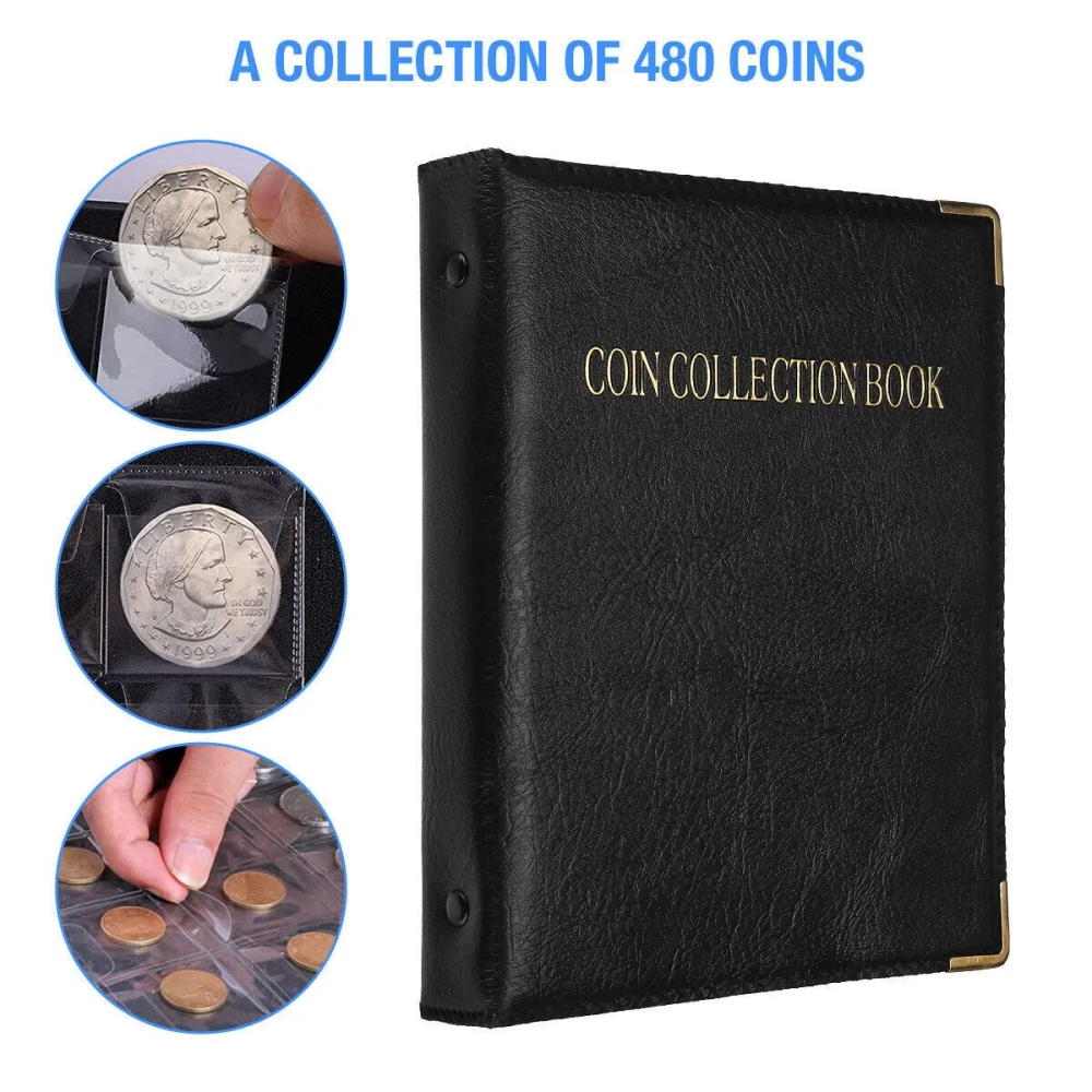 Feature: Material: The coin collection book is covered with high-grade soft leather, which feels good, beautiful and durable, and hand-sewn is more atmospheric and durable. The loose leaf is made of transparent PVC material which is clear and durable. Size: The size of each loose leaf is about 18.5 cm x 14 cm (7.28 inches x 5.51 inches), suitable for coins within 30mm*30mm. Large Capacity: 20 pages can hold 480 coins, each pocket of the coin collector has a top flap to protect the coins from slipping out. Multi-purpose: Organize and store collectible pennies, quarters, dimes, nickels, tokens, medals and badges and more with the coin collector booklet. Specification: Type: 480 Coin Collection Color: Black Material: PVC+Leather Pages: 20 Number Of Cells: 480 Size: 19.5x15.5cm (7.68x6.1in) Size Per Page: 18.5x14cm (7.28x5.51in) Package Included: 3 x Coin Collection Book
