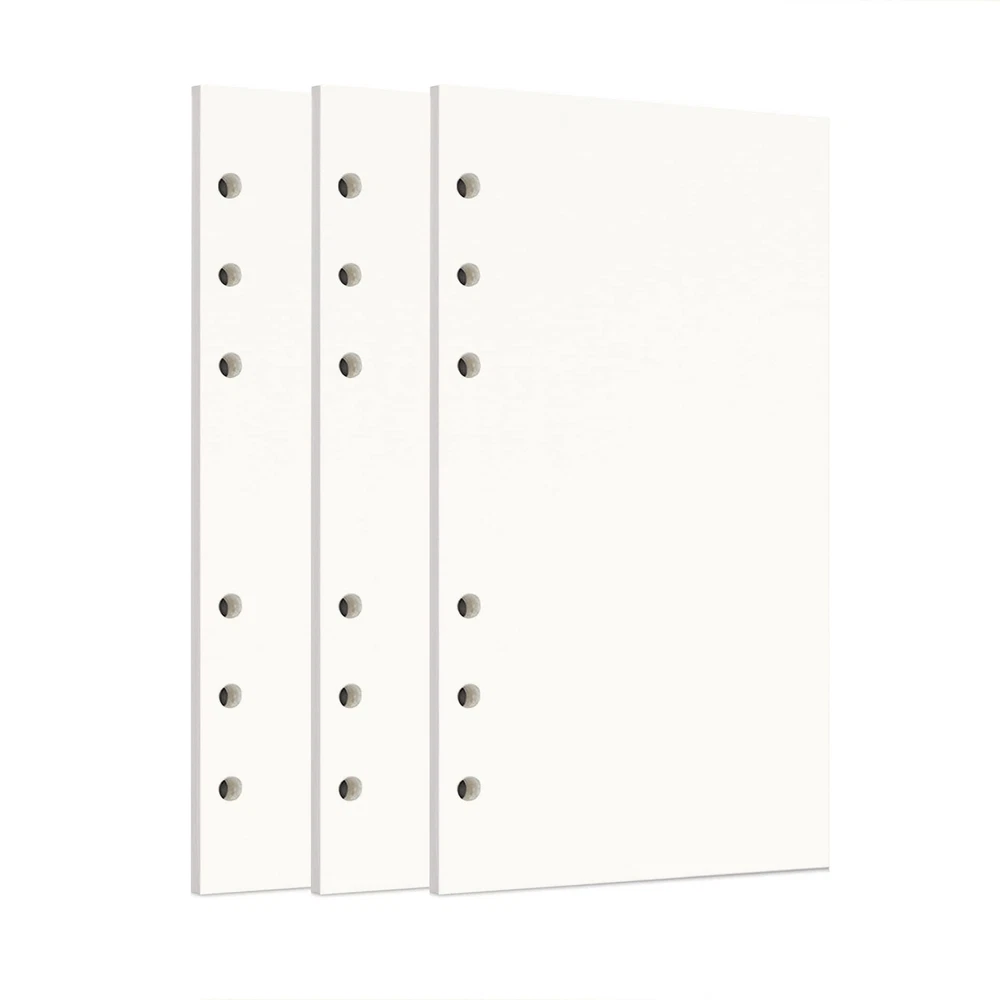 3 Pack A6 135 Sheets/270 Pages Blank Loose Leaf Punched Paper Refills Paper for 6 Hole Binder Personal Organizer Diary Notebook Refillable Planner Size: A6 95x172mm/3.7"x6.8"/6 Hole, standard 6 holes loose-leaf refills; Hole gap: 20mm-19mm-19mm-49mm-19mm-19mm-20mm, Hole diameter: 5mm