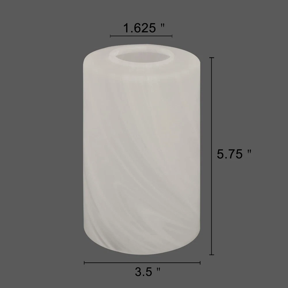 Does your light fixture need an update or replacement? This 3 packs cylinder shape alabaster glass lamp shades are perfect for ceiling fan light kits, also fit for other types pendant light fixture, wall sconce and so on. It will create a warm and romantic atmosphere with soft light. Especially fit for families with children, to avoid too bright light which is harmful for children's eyes. Features: ★ Sturdy and smooth, making the light warmer. ★ Cylinder shape with alabaster glass is also a nice home decor. ★ Quality assurance with strict quality inspection and quality packaging. Specification: ★Model No.: G0121 ★Material: Glass ★Fitter: 1-5/8 Inches ★Item diameter: 3.5 inches (width) * 5.75 inches (height) Service: ★Free replacement for any defects. ★30-day full refund. ★services. Package included: 3 x Glass Lamp Shade Notes: 1. Please check the size of glass lampshade before purchase. 2. Socket rings for fixing glass lamp shade are not included 【Create New Look Easily】Cyliner shaped alabaster glass shade provides a new look for light fixture, evenly emitting soft light and making your room look warmer. 【Dimension】3.5"(D)*5.75"(H) with 1-5/8-inch fitter opening for each lamp shape. Please measure your current glass shade to ensure the correct size. 【Wide Used】Fit for ceiling fan light kit, chandelier, pendant light, wall sconce and vanity light. Soft light makes it perfect for children's room. 【Quality Assurance】We have carried out strict quality inspection before shipment and provide quality packaging to reduce damage in transit . 【Widely used】 Fitting for Chandelier, wall sconces, vanity lights or table lamp in kitchen, living room and bathroom.