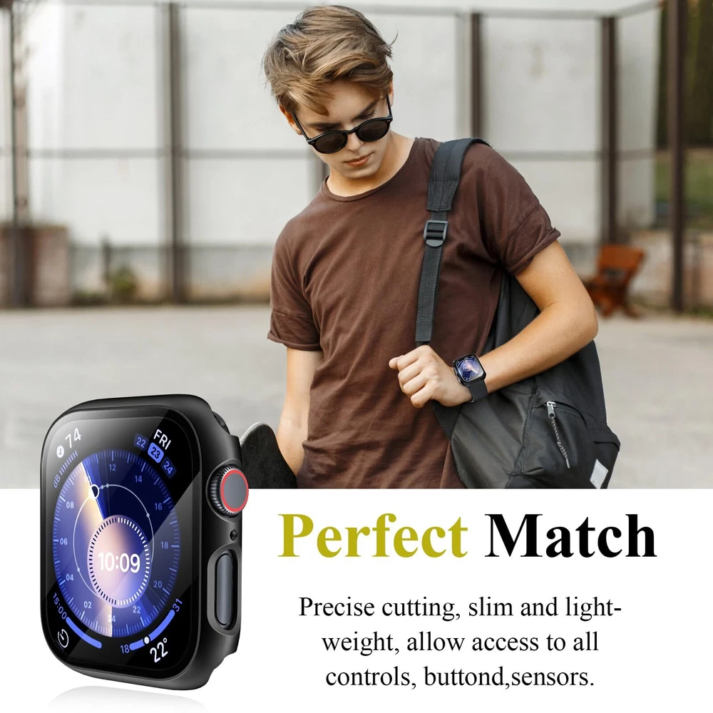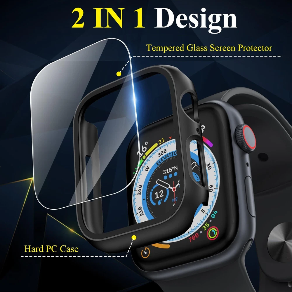 [3 Pack] Case for Apple Watch Series 9 Screen Protector 45mm Series 8 Series 7, Features: -COMPATIBILITY: This Apple watch case 45mm is compatible with Apple Watch Series 9 45mm, Series 8 45mm & Series 7 45mm. -FULL PROTECTION: This Apple Watch Series 9 screen protector 45mm, hard PC case built in anti-scratch tempered glass screen protector, offer all around protection to your iWatch screen without compromising usability, guarding it against scratches, bumps, and impacts. -EASY TO INSTALL: Easy to install and remove, snap-on design, no need to remove the watch band, keep the apple watch series 9/series 8/7 from popping off, firm and secure. Charge directly with the case on. -HD & SENSITIVE TOUCH: This apple watch series 9 protective cover 45mm features ultra-thin crystal clear tempered glass with high transparency, add no bulk, keeps your Apple watch series 9 series 8 series 7 45mm touch sensitivity. Smooth touch feeling, nothing different but with more protection. -INCLUDE: 2 x hard PC case with tempered glass compatible for Series 9 series 8/7 45mm. Reminder: If you find any scratches/cracked/damages, please feel free to contact us via email directly, we will arrange new replacement. Features: -COMPATIBILITY: This Apple watch case 45mm is compatible with Apple Watch Series 9 45mm, Series 8 45mm & Series 7 45mm. -FULL PROTECTION: This Apple Watch Series 9 screen protector 45mm, hard PC case built in anti-scratch tempered glass screen protector, offer all around protection to your iWatch screen without compromising usability, guarding it against scratches, bumps, and impacts. -EASY TO INSTALL: Easy to install and remove, snap-on design, no need to remove the watch band, keep the apple watch series 9/series 8/7 from popping off, firm and secure. Charge directly with the case on. -HD & SENSITIVE TOUCH: This apple watch series 9 protective cover 45mm features ultra-thin crystal clear tempered glass with high transparency, add no bulk, keeps your Apple watch series 9 series 8 series 7 45mm touch sensitivity. Smooth touch feeling, nothing different but with more protection. -INCLUDE: 2 x hard PC case with tempered glass compatible for Series 9 series 8/7 45mm. Reminder: If you find any scratches/cracked/damages, please feel free to contact us via email directly, we will arrange new replacement. eBay integration by