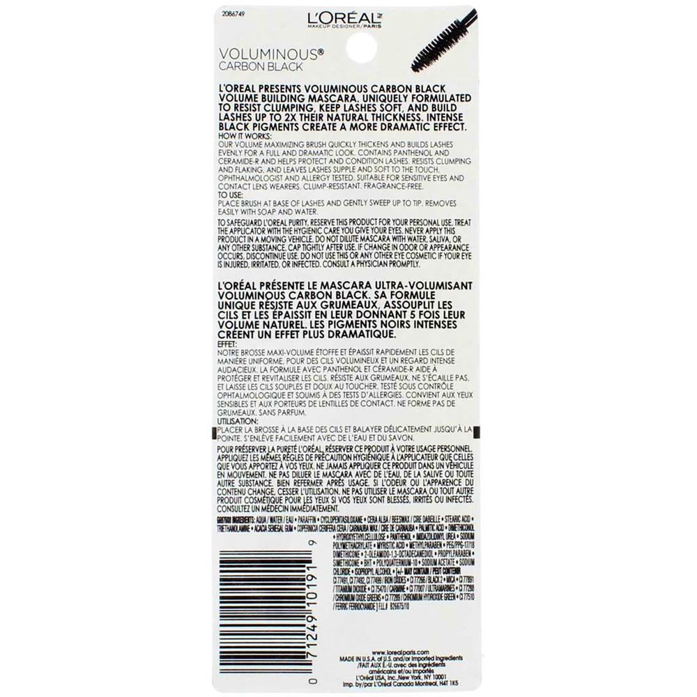 Product Description Voluminous False Fiber Lashes Mascara with a sculpting fiber formula that adheres to lashes for a volumized, sculpted lash effect. Lashes appear fuller, longer, sculpted and curled at every angle. Clump-free. Flake-free. Smudge-free. Frangance-free. Ophthalmologist-tested and allergy-tested. Suitable for sensitive eyes and contact lens wearers. False lash effect, volumizing mascara Sculpting fiber formula Fuller, longer, curled lashes Clump-free, Flake-free, Smudge proof mascara Ingredients Aqua / Water / Eau Paraffin Potassium Cetyl Phosphate Cera Alba / Beeswax / Cire Dabeille Copernicia Cerifera Cera / Carnauba Wax / Cire De Carnauba Acacia Senegal / Acacia Senegal Gum Glycerin Cetyl Alcohol Hydroxyethylcellulose Phenoxyethanol Peg/Ppg-17/18 Dimethicone Steareth-20 Phenyl Ethyl Alcohol Sodium Polymethacrylate Propylene Glycol Rayon Hydrogenated Jojoba Oil Hydrogenated Palm Oil Pentaerythrityl Tetraisostearate Silica Disodium Edta Polyquaternium-10 Soluble Collagen Panthenol Sodium Chondroitin Sulfate Atelocollagen [+/- May Contain / Peut Contenir Ci 77491, Ci 77492, Ci 77499 / Iron Oxides Ci 77007 / Ultramarines Mica Ci 75470 / Carmine Ci 77891 / Titanium Dioxide Ci 77510 / Ferric Ferrocyanide]. Instructions Place brush at base of lashes and gently sweep up to tip. Removes easily with soap and water. Product Description Voluminous False Fiber Lashes Mascara with a sculpting fiber formula that adheres to lashes for a volumized, sculpted lash effect. Lashes appear fuller, longer, sculpted and curled at every angle. Clump-free. Flake-free. Smudge-free. Frangance-free. Ophthalmologist-tested and allergy-tested. Suitable for sensitive eyes and contact lens wearers. False lash effect, volumizing mascara Sculpting fiber formula Fuller, longer, curled lashes Clump-free, Flake-free, Smudge proof mascara Ingredients Aqua / Water / Eau Paraffin Potassium Cetyl Phosphate Cera Alba / Beeswax / Cire Dabeille Copernicia Cerifera Cera / Carnauba Wax / Cire De Carnauba Acacia Senegal / Acacia Senegal Gum Glycerin Cetyl Alcohol Hydroxyethylcellulose Phenoxyethanol Peg/Ppg-17/18 Dimethicone Steareth-20 Phenyl Ethyl Alcohol Sodium Polymethacrylate Propylene Glycol Rayon Hydrogenated Jojoba Oil Hydrogenated Palm Oil Pentaerythrityl Tetraisostearate Silica Disodium Edta Polyquaternium-10 Soluble Collagen Panthenol Sodium Chondroitin Sulfate Atelocollagen [+/- May Contain / Peut Contenir Ci 77491, Ci 77492, Ci 77499 / Iron Oxides Ci 77007 / Ultramarines Mica Ci 75470 / Carmine Ci 77891 / Titanium Dioxide Ci 77510 / Ferric Ferrocyanide]. Instructions Place brush at base of lashes and gently sweep up to tip. Removes easily with soap and water. Warnings Safety Warning: To safeguard L'Oreal purity, reserve this product for your personal use. Treat the applicator with the hygienic care you give your eyes. Never apply this product in a moving vehicle. Do not dilute mascara with water, saliva, or any other substance. Cap tightly after use. If change in odor or appearance occurs, discontinue use. Do not use this or any other eye cosmetic if your eye is injured, irritated, or infected. Consult a physician promptly. Disclaimer The product descriptions and instructions provided by vitabox.com are for informational purposes only and are qualified in their entirety by the information available from manufacturers of the products. You should carefully read all product packaging, and contact the manufacturer with any questions before using a product. While we endeavor to ensure that product descriptions are current, manufacturers sometimes change their products. We are not liable for inaccuracies or misstatements about products. We do not provide medical advice or recommendations. You should not use the information provided by vitabox.com for diagnosing or treating a health problem or disease. If you have or suspect that you have a medical problem, immediately contact your health care provider. Information and statements regarding dietary supplements have not been evaluated by the Food and Drug Administration or any other government agency and are not intended to diagnose, treat, cure, or prevent any disease.
