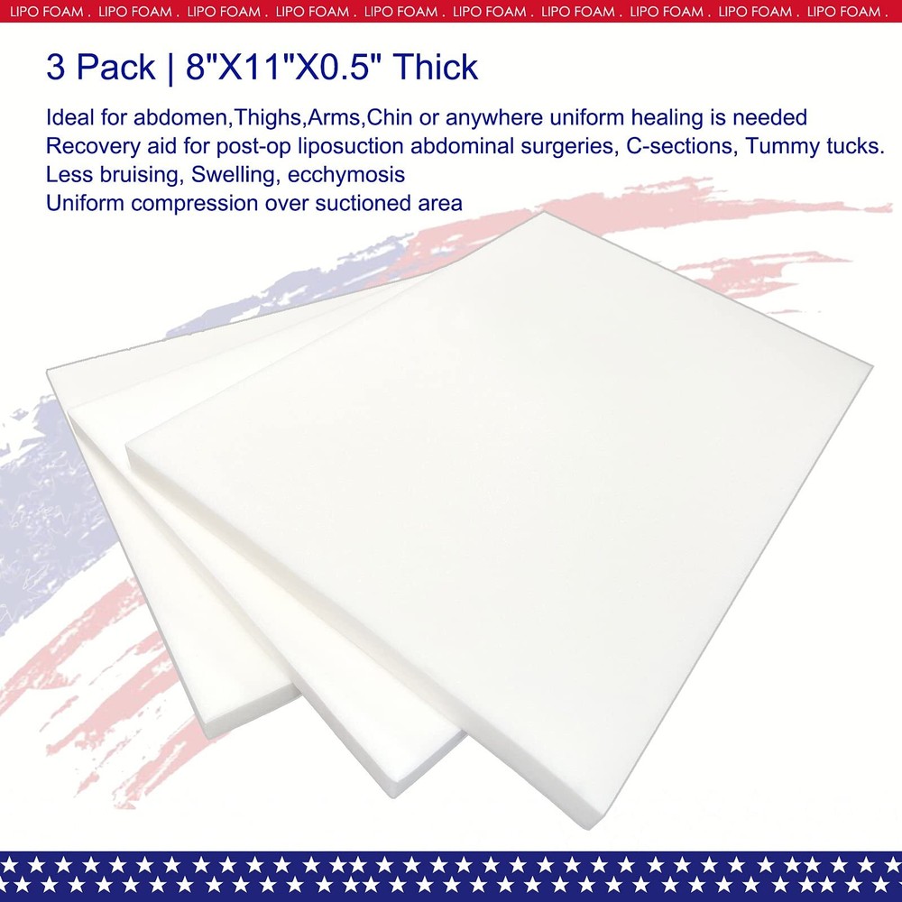 3 Pack Lipo Foam Pads - Post Surgery Ab Board Liposuction Surgery Flatten A MUST FOR YOUR RECOVERY - Lipo foam pads works by offering comprehensive compression over the healing zone and ensuring equal pressure for improved comfort and faster healing. Lipo foams are an essential post op recovery aid for anyone who has undergone liposuction and abdominal surgeries such as tummy tucks and C-sections. Size 8" X 11" X 0.5" inch. LIPOSUCTION FOAM - Compression lipo foam sheets designs to help with recovery after plastic surgery procedures such as abdominal and waist liposuction, BBL, 360 lipo abdominoplasty (tummy tuck), arms and thighs liposuction, coolsculpting, smart lipo, Brazilian butt lift, liposculpture, C-section, vaser. SUPER SOFT & EASILY CURVED: Our post surgery lipo foam is made of high quality polyurethane foam, which is super soft and easily curved to fit you perfectly, help to create a soft barrier between compression garments and sensitive skin. Foam can be easily trimmed to desired size and shape. CONTROL SWELLING & IMPROVE DISCOMFORT: Our lipo compression AB board foam is fundamental in helping controlling swelling, bruising and also with contouring by preventing wrinkling of the skin and enhancing skin retraction.With the use of lipo foam sheets, you will feel and see a difference in your pain, discomfort and results. THE IDEAL COMPLEMENT FOR YOU: These Surgery Ab Boards are used after a cellulite reduction, tummy tuck, hip surgery, abdominoplasty, knee surgery, panniculectomy, liposuction, breast augmentation and more.They can be used under any medical compression garments, recovery suit, assets shapewear bodysuit, girdle, bra, bandeau, belt, or other post surgery clothing. Shipping We offer FREE shipping on all orders! We ship within Three business days of payment, usually sooner. We use a selection of shipping services such as UPS, FedEx, USPS etc. We only ship to the lower 48 states, no APO/FPO addresses or PO Boxes allowed. Local pickups and combined shipping options are not provided at this time. Return You can return a product for up to 30 days from the date you purchased it. Any product you return must be in the same condition you received it and in the original packaging. Please keep the receipt. Payment We accept payment by any of the following methods: PayPal Please pay as soon as possible after winning an auction, as that will allow us to post your item to you sooner! Feedback Customer satisfaction is very important to us. If you have any problem with your order, please contact us and we will do our best to make you satisfied. Contact Us If you have any queries, please contact us via ebay. We usually respond within 24 hours on weekdays. Please visit our eBay store to check out other items for sale! Thank you for shopping at our store.