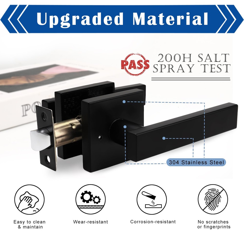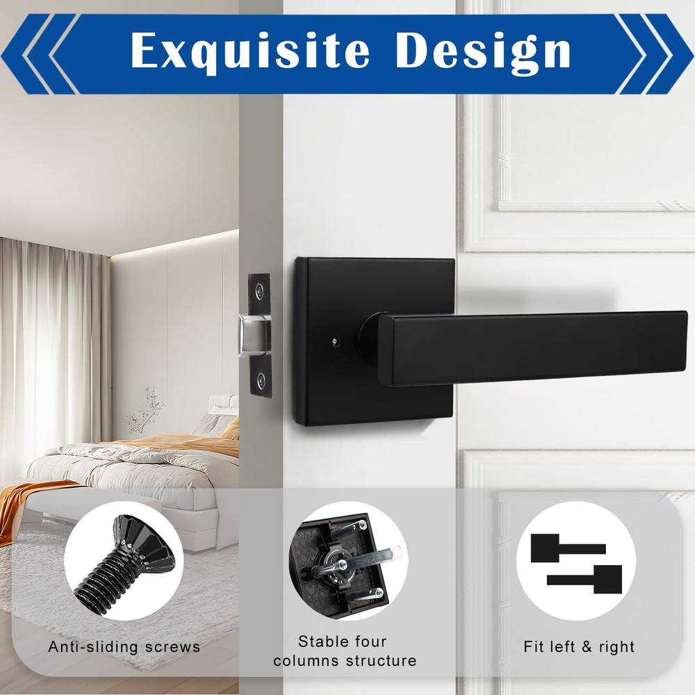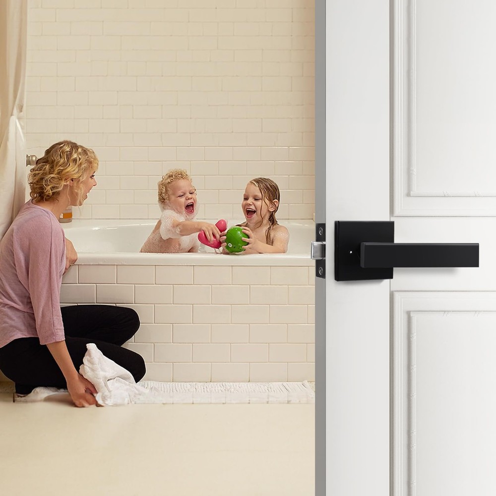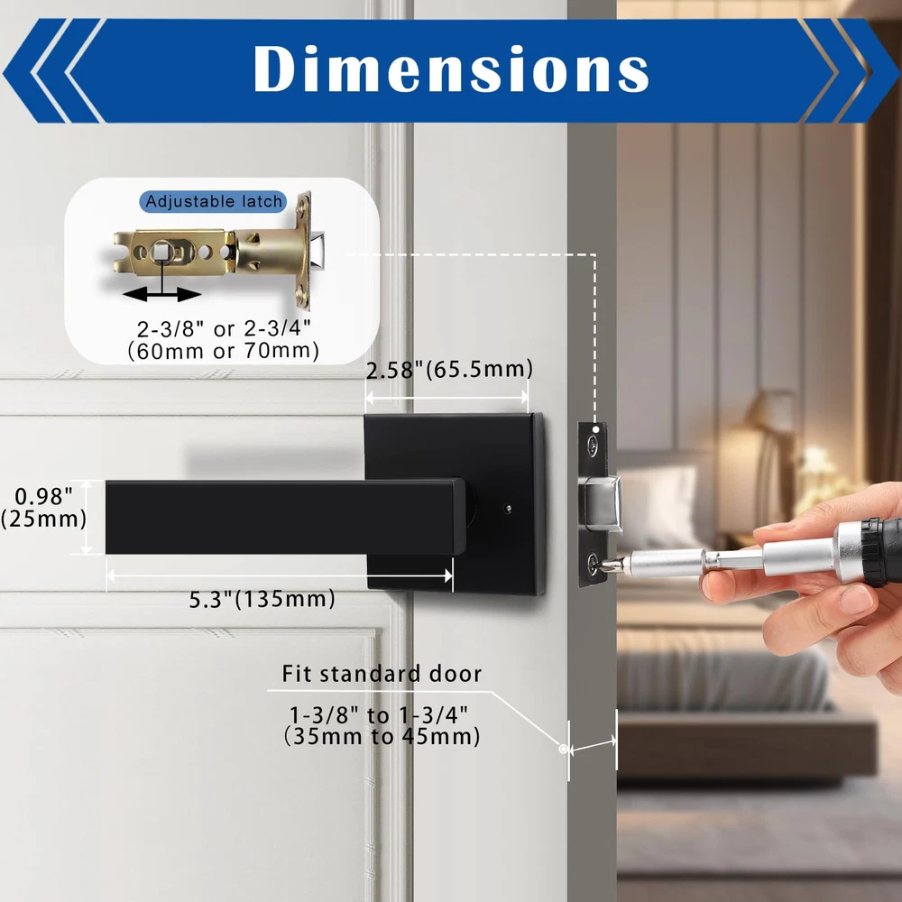 【Privacy Function】The privacy function is ideal for bathroom, bedroom or any room where privacy is needed. Push button to lock; pull the button or turn the handle to unlock. Use tools for emergency release from outside. ANSI grade-3 certified, over 250,000 cycles. 【High Quality】The black stainless steel handle is suitable for modern decoration. The excellent material and craftsmanship make the lever wear-resistant, corrosion-resistant, and easy to clean. 【Dimensions】Adjustable latch: 2-3/8" or 2-3/4" (60mm or 70mm); Fit standard door: 1-3/8" to 1-3/4" (35mm to 45mm); Rosette size: 2.58" (65.5mm); Handle length: 5.3" (135mm); Handle width: 0.98" (25mm). The square latch plate is not removable. 【Easy installation】Support left or right hand installation. All accessories and instruction are included and well packaged. Easy to install with a Phillips screwdriver. [After-sale Service]: is committed to providing you with high-quality service and products.Any quality problems will be handled by professional customer service staff.
