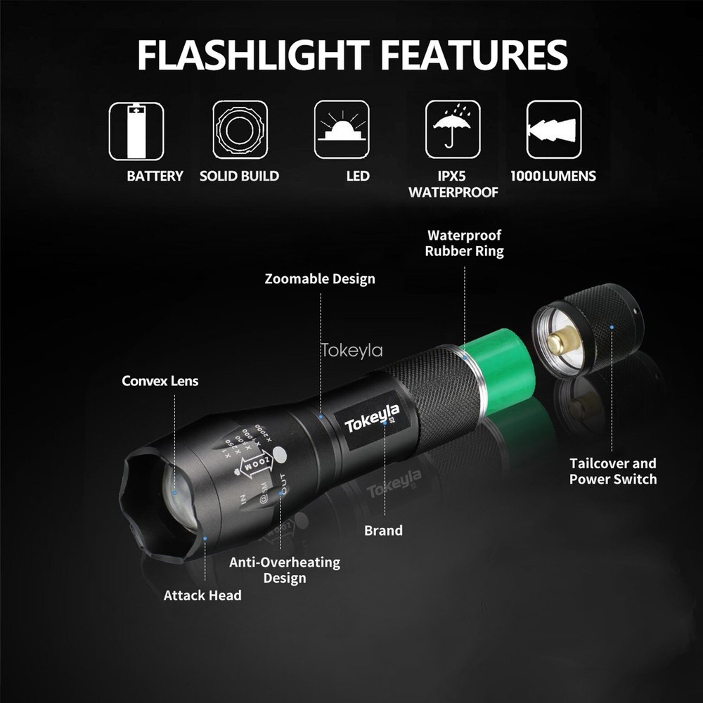 Home Payment Return Policy About us Contact us Details 3 Pack Mini Super Bright LED Flashlight Small Portable Working Torch Zoomable ‼️‼️【Note】 Batteries not included, please feel free to contact us if any need. Features: 1. [SUPER BRIGHT WITH 5 MODES] : The super bright flashlight LED uses advanced LED beads, emits bright light up to 2000 lumens and reaches nearly 656ft, it can easily light up an entire room! Adjustable/zoomable focus with 5 modes: High- Medium- Low- Strobe- SOS (for Emergency). 2. [WATERPROOF]: The small LED flashlight can be used in any weather. The aluminum alloy body has no rust issue. The flashlight high lumens super bright waterproof can be daily used, like troubleshooting, biking, hiking, camping, walking dog, or for emergency, survival, etc... 3. [ADJUSTABLE FOCUS]: Our handheld flashlights tactical torch utilize the latest durable LED chip, provides super bright light beam. Easy-controlled head-pulling zoom and easy mode-switch by light taps of button. Adjustable focus for use in different situations it ideal for use around the house 4. [PREMIUM QUALITY & LONG-LASTING]: Our flashlight super bright is made of high quality aluminum alloy, this super bright LED Flashlight is solid and sturdy, the edge designed is sharp and strong, can easily break the windows in case there's a car accident. Specification: Type of flashlight: Super Bright LED Flashlight Small LED Type: LED Output Power (max): 10W Power by: 1x 3.7v Li-ion Rechargeable Battery (Not included) Size: 4.80 x 1.06 x0.95 inches Material: Aluminum Weight: 2.5 ounce Function: Zoomable Light Mode: High/Medium/Low/Strobe/SOS Warm Tips: 1. Before use, please remove the the plastic packaging film of the battery. 2. Please take out the battery if you won't use for a long time to avoid battery leakage. 3. Please do not submerged handheld super bright zoomable LED flashlight underwater as it doesn't 100% waterproof. 4. Please select a lower setting when the LED flashlight super bright torch zoomable is hot as it is typical for high powered led flashlight and will not cause damage to the handheld flashlight. 5. Don't directly illuminate the eyes. Note:Please find us in first time when you find the parcel Broken/Scratch/Function Error/Miss Parts/Unwork/has not arrived etc, we always have more details and solutions, even duty for your order. Package includes: 3x Super Bright LED Flashlight Small (not included battery) Shipping Policy Payment Method Returns Policy Shipping Policy Payment Method This is the description of Payment Method. Do not dismiss your dream. To be without dream is to be without hope. To be without hope is to be without purpose. Do not run through your life so fast that you forget not only where you have been, but also where you are going. Life is not race, but a journey to be savored each step of the way. Returns Policy This is the description of Returns Policy. Do not dismiss your dream. To be without dream is to be without hope. To be without hope is to be without purpose. Do not run through your life so fast that you forget not only where you have been, but also where you are going. Life is not race, but a journey to be savored each step of the way. Store Categories Store Categories Battery and Charger Led Flashlight Led Headlamp Laser Pointer Pen Other Home Payment Shopping About Us Contact Us Copyright©2018 datacaciques Tokeyla Home Payment Return Policy About us Contact us Details 3 Pack Mini Super Bright LED Flashlight Small Portable Working Torch Zoomable ‼️‼️【Note】 Batteries not included, please feel free to contact us if any need. Features: 1. [SUPER BRIGHT WITH 5 MODES] : The super bright flashlight LED uses advanced LED beads, emits bright light up to 2000 lumens and reaches nearly 656ft, it can easily light up an entire room! Adjustable/zoomable focus with 5 modes: High- Medium- Low- Strobe- SOS (for Emergency). 2. [WATERPROOF]: The small LED flashlight can be used in any weather. The aluminum alloy body has no rust issue. The flashlight high lumens super bright waterproof can be daily used, like troubleshooting, biking, hiking, camping, walking dog, or for emergency, survival, etc... 3. [ADJUSTABLE FOCUS]: Our handheld flashlights tactical torch utilize the latest durable LED chip, provides super bright light beam. Easy-controlled head-pulling zoom and easy mode-switch by light taps of button. Adjustable focus for use in different situations it ideal for use around the house 4. [PREMIUM QUALITY & LONG-LASTING]: Our flashlight super bright is made of high quality aluminum alloy, this super bright LED Flashlight is solid and sturdy, the edge designed is sharp and strong, can easily break the windows in case there's a car accident. Specification: Type of flashlight: Super Bright LED Flashlight Small LED Type: LED Output Power (max): 10W Power by: 1x 3.7v Li-ion Rechargeable Battery (Not included) Size: 4.80 x 1.06 x0.95 inches Material: Aluminum Weight: 2.5 ounce Function: Zoomable Light Mode: High/Medium/Low/Strobe/SOS Warm Tips: 1. Before use, please remove the the plastic packaging film of the battery. 2. Please take out the battery if you won't use for a long time to avoid battery leakage. 3. Please do not submerged handheld super bright zoomable LED flashlight underwater as it doesn't 100% waterproof. 4. Please select a lower setting when the LED flashlight super bright torch zoomable is hot as it is typical for high powered led flashlight and will not cause damage to the handheld flashlight. 5. Don't directly illuminate the eyes. Note:Please find us in first time when you find the parcel Broken/Scratch/Function Error/Miss Parts/Unwork/has not arrived etc, we always have more details and solutions, even duty for your order. Package includes: 3x Super Bright LED Flashlight Small (not included battery) Shipping Policy Payment Method Returns Policy Feedback About US Shipping Policy Products would be shipped from Local US warehouse. Usually takes 2-5 days by US