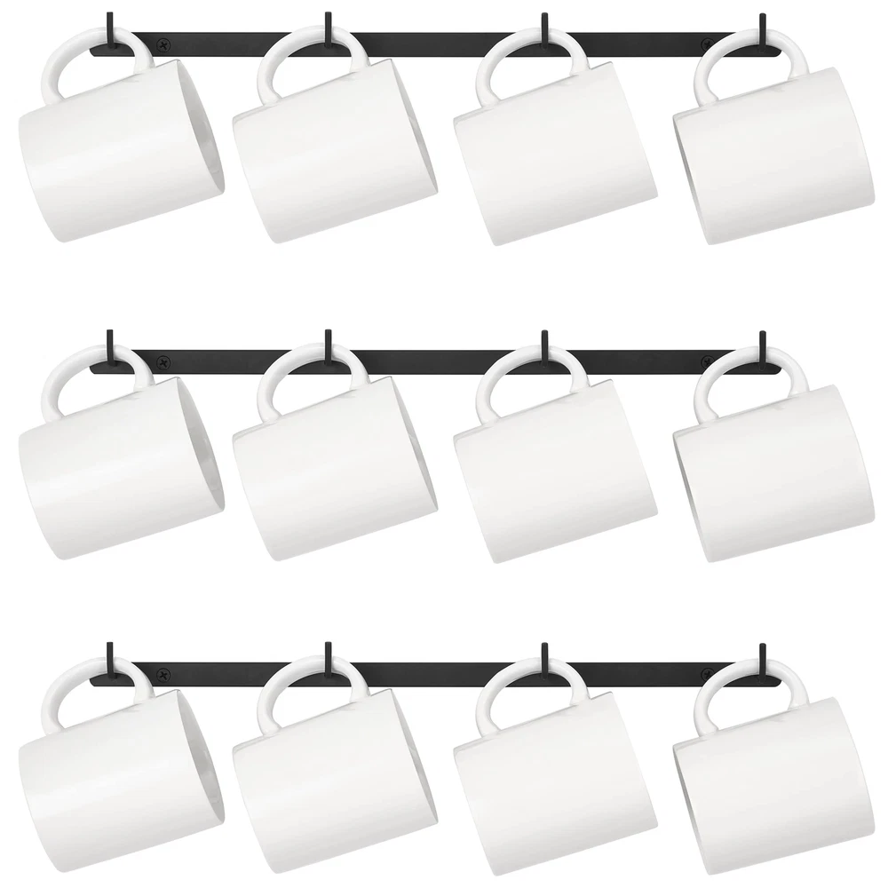 3 Pack Wall Mounted Metal Coffee Mug Holder Rack w/ 12 Hooks for Kitchen Dining