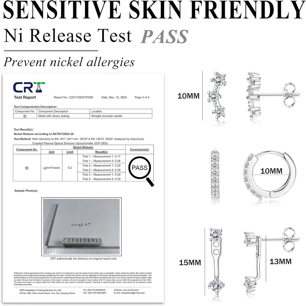 Store New Arrivals Add to Favorite View Feedback Contact Fast deliveries to the customer's home Quality customer service John Make the customers happy! 3 Pairs 925 Sterling Silver Hypoallergenic Earrings Set for Multiple Piercing Dainty 14K Gold Plated Stud Huggie Small Hoop Earrings for Women Trendy Cute Earring Stacks for Sensitive Ears Description Product Description Metal stamp 925 Gem Type Cubic Zirconia Color Silver,White CZ Product Dimensions 0.2 x 0.2 x 0.1 inches; 0.35 ounces Material Sterling Silver Metal Sterling Silver Item Length 0.2 inches Department womens Team Name Silver Back finding Push Back ABOUT US We offer the best prices around on high quality products. Our E-store includes media such as books, movies, music and games while offering electronics, toys, sporting apparel, clothing, tools, general home, garden items and more. SHIPPING We are always working hard to ensure your package arrives as soon as possible. Please understand that some factors like weather, high postal traffic, and the performance of shipping companies are outside of our control. We offer free shipping to the lower 48 states and ship within 2 business days of payment, usually sooner. We do not accept P.O. Boxes. Please provide a physical address. For shipping outside of the continental USA, we only use eBay's Global Shipping Program. The item is shipped to KY and then sent to the rest of the world. International customers are responsible for all duties and taxes. Continue to 'check out' to calculate costs for shipping the item to your country. Messages regarding eBay's Global Shipping Program MUST be directed at eBay EXCLUSIVELY. RETURNS We offer a 30-Day Return Policy on items in which you are not completely satisfied with. You have the option of a full-refund or an exchange of the item. No returns are available on items shipped outside of the USA PAYMENT We accept PayPal. CONTACT US This page content is yet to come Please ad us to your favorite seller and visit again later Thank You CUSTOMER SATISFACTION We try our very best to make sure every customer is completely satisfied. If there's a problem, message us! We're happy to help. WE ACCEPT