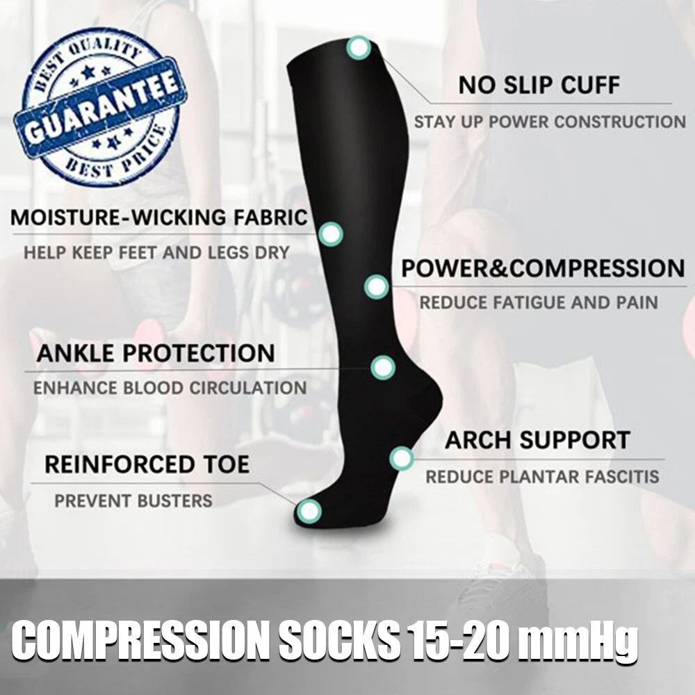 3 Pairs Compression Socks Stockings Women Men 15-20 mmHG Knee High Medical S-XL