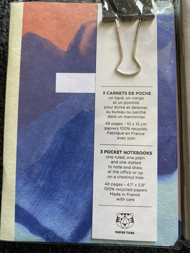 This set includes three Papier Tigre pocket notebooks, each with a unique design. Made in France, these notebooks are perfect for businesses, industries, or anyone in need of a reliable planner. The pages are blank, allowing you to customize the layout to suit your needs. With a total of nine notebooks, this set is ideal for those who prefer to have a physical planner rather than relying on digital technology. The brand, Papier Tigre, is known for its quality products and attention to detail. These notebooks are no exception, and they are sure to meet your planning needs.