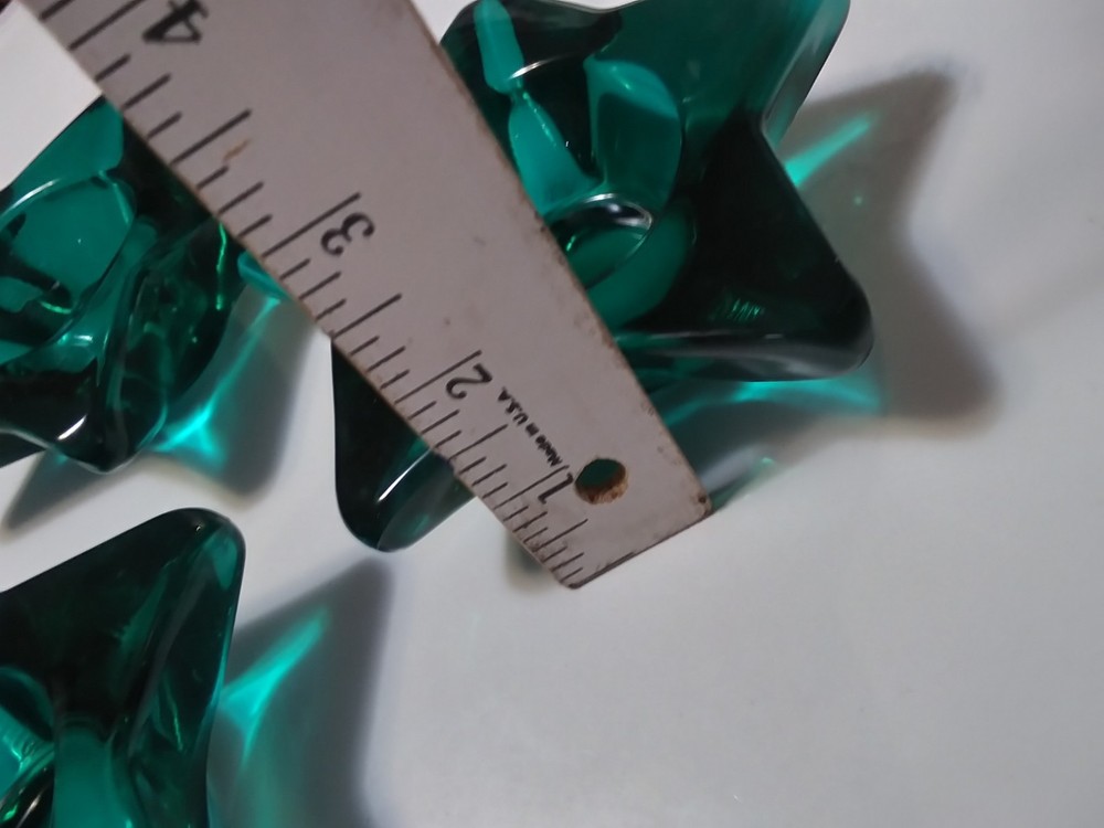 All in good shape. No chips or cracks. I got them for our emerald green bathroom. But, to me, they are more of a Kelly green. Like emerald with a splash of blue. Still very pretty. Will package carefully for shipping
