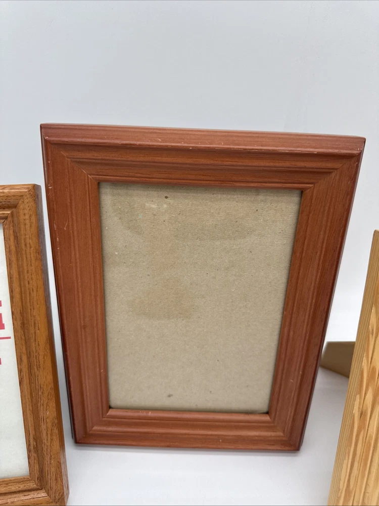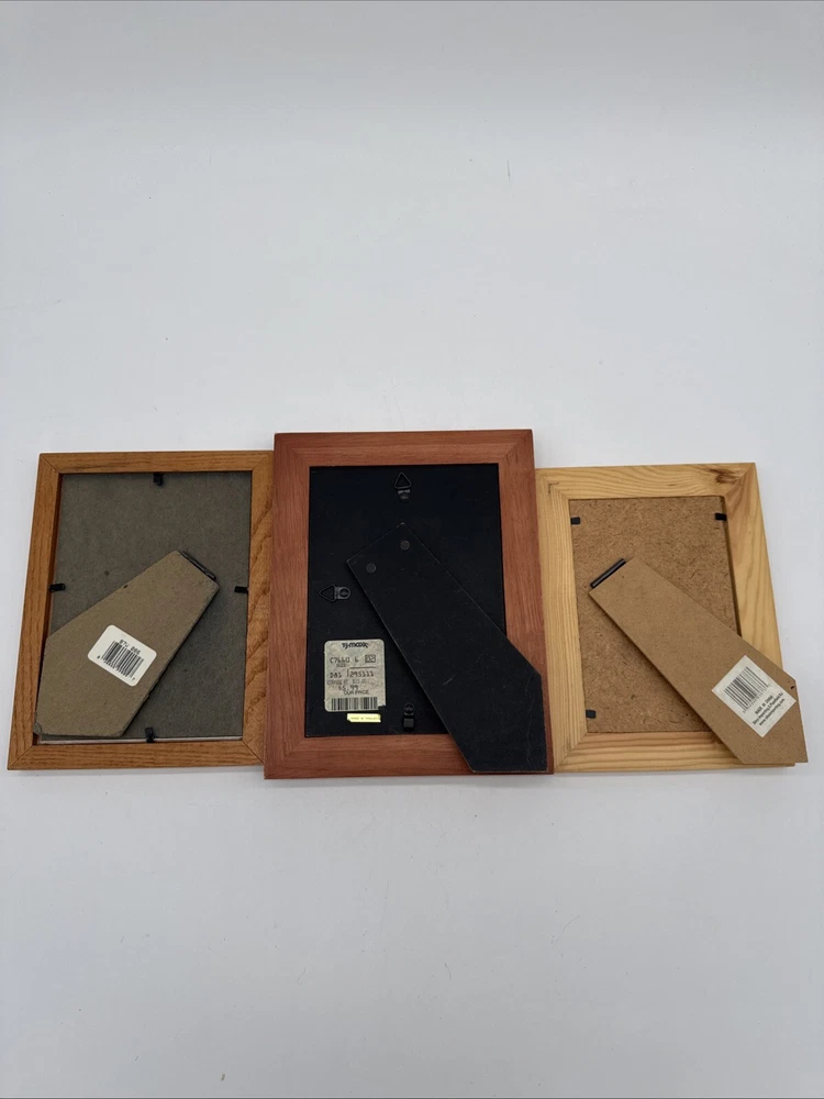 Crafted for moments worth cherishing, this set of three picture frames offers a blend of traditional charm and versatile display options. The set includes one 4x6 inch frame and two 5x7 inch frames, all designed to complement any decor with its classic wood finish. Whether you're looking to showcase your favorite photographs or create a gallery of memories, this unbranded frame set provides a warm and inviting touch to any room. Each frame is made from durable wood, ensuring that your pictures are displayed with care and lasting beauty.