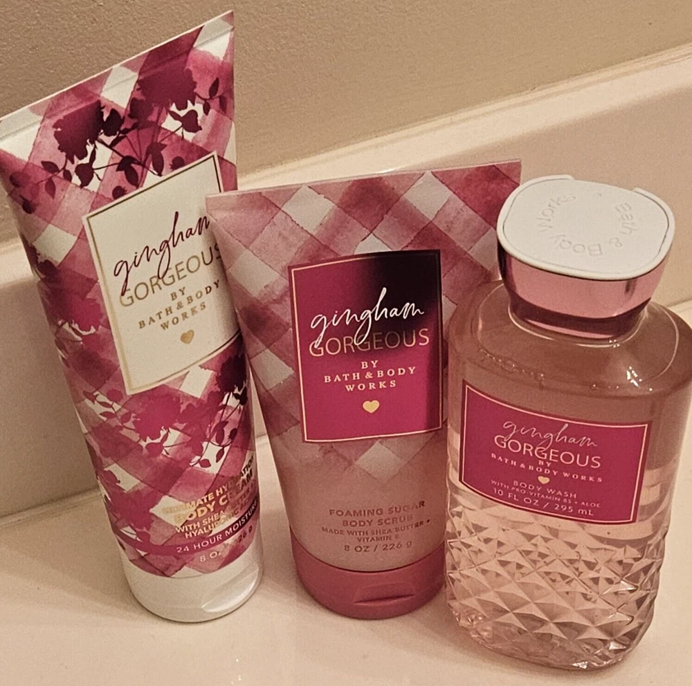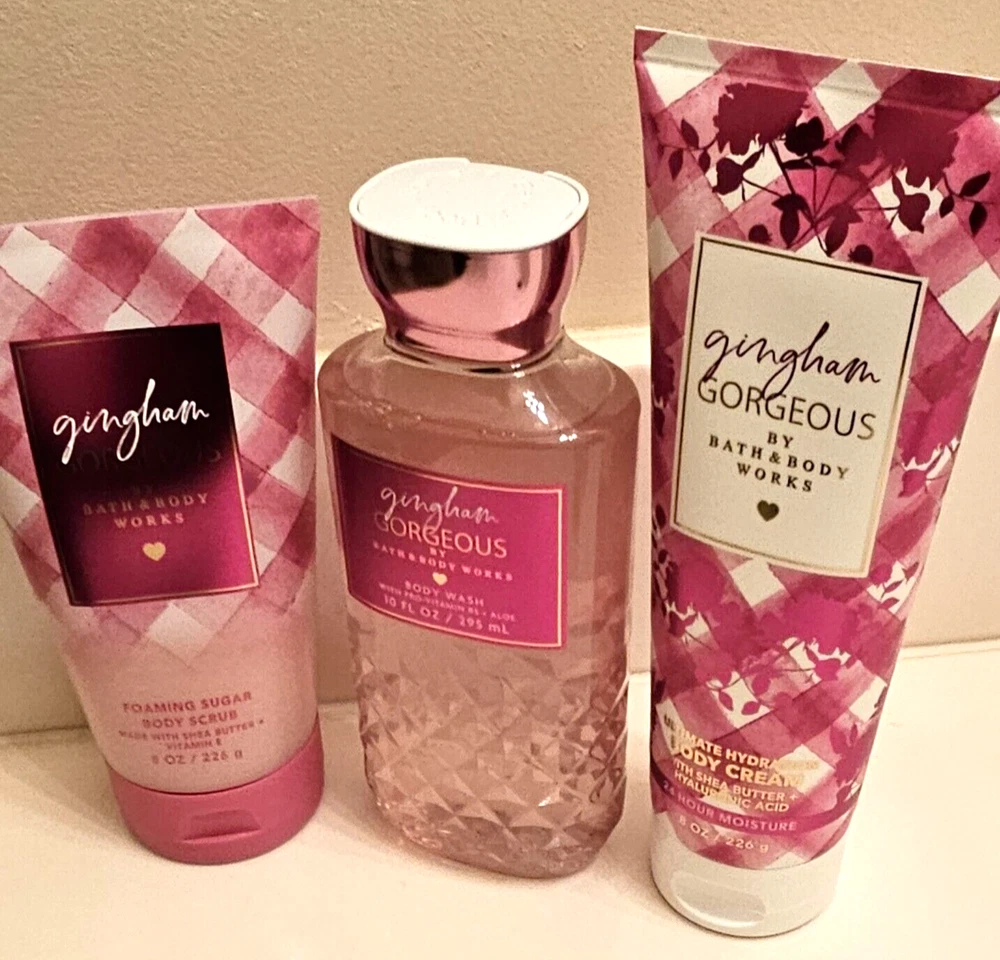 Bath and Body Works Gingham Gorgeous Scented Body Cream , Shower Gel and Scrub 3 piece set