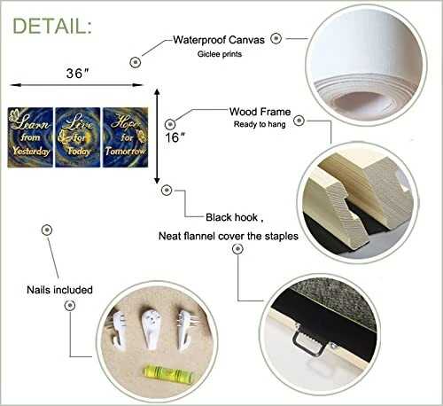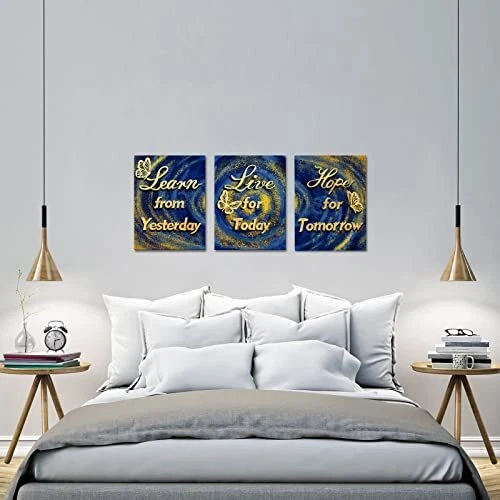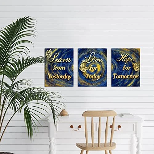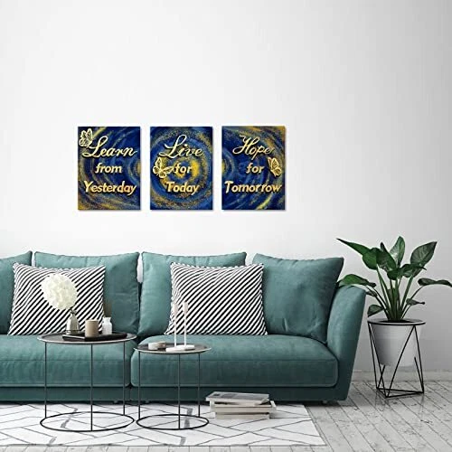 Menu 1. We require immediate payment. 2. We currently accept payment via eBay managed payments only. 3. Once payment is cleared, we will dispatch your shipment within 1-3 business days. Please refer to the "Shipping" tab for more information regarding shipping speed to your destination. 3 Piece Blue and Gold Canvas Decor Motivational Quotes Wall Art Life Inspirational Positive Sign Saying Poster Painting Artwork Framed for Home Living Room Bedroom Decorations Framed Product description Size:12 x 16 Inches x 3pcs Giclee artwork,printed on waterproof archival quality canvas.A perfect wall decorations art for living room,bedroom, kitchen,office,hotel,restaurant,dining room,office,bathroom,bar etc. Each panel canvas art has a black hook already mounted on the wooden bar ready to hang out of box Neat flannel on the back covered the staples or tacks.We only provide high grade wall art for you Learn from Yesterday Live for Today Hope for Tomorrow Poster Wall Art PLEASE MESSAGE US IF YOU HAVE ANY OTHER QUESTIONS, AND MANY THANKS FOR READING ALL OF THIS. Copyright ©#. All Rights Reserved.