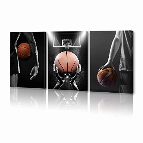 Return Policy Fast Delivery Trusted seller -3 Pieces Basketball Art Prints Black and White Wall Art Antique Basketball and Low Angle View Basketball Hoop Sport Canvas Art for Bedroom Gym Room Decoration Boys Gift Product Description Basketball Wall Art Size: 16inx24inx3pcs(40cmx60cmx3pcs) High Definition:High Definition Giclee modern canvas printing artwork,picture photo printed on high quality canvas.What you get is what you see. Ready To Hang:Gallery wrapped and stretched with wooden frame on the back.Ready to hang. Perfect Wall Decor: A perfect paintings for office decor, living room, classroom, Gym, bedroom, kitchen, Hotel, dining room, bar etc.. It will be a unique wall decorations to decorate your space. A Great Gift Option: Use the beautiful canvas paintings as a gift for relatives and friends, your friends and family will appreciate the paintings for many years. Shipping Returns Payment Shipping Shipping is FREE to all addresses other than APO/PO boxes in the lower 48 states. All our stock ships from US-based warehouses. Shipped via USPS or UPS (depending on location and package weight) Unless stated otherwise, all orders will ship within 24-72 hours of your payment being processed. Check our feedback to see the great reviews of FAST shipping we offer. Returns Seller does not accept returns Payment We currently accept payment via eBay managed payments only. Once payment is cleared, we will dispatch your shipment within 1-3 business days. Please refer to the "Shipping" tab for more information regarding shipping speed to your destination.