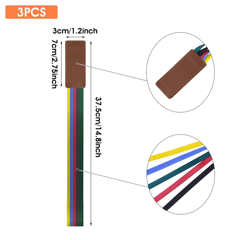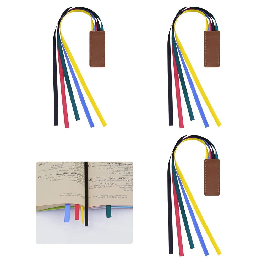 Description. Name : 3pcs Bible leather ribbon bookmark colour: brown Material: leather Size Leather part: 3*7cm/1.2*2.75inch Total length: 37.5cm/14.8inch Net weight: 14.5g Gross weight: 16.5g Packing: Bag Package size: 15*10*1.3cm Packing list: 3pcs Bible leather ribbon bookmark Package Contents: You will receive 3 bible ribbons bookmarks with a faux leather design, each with 5 ribbons including black, yellow, red, blue and green, the book ribbons markers are brightly coloured and suitable for everyday reading. Suitable size: Each bible bookmark measures 7 x 3cm/2.75 x 1.18inch and each ribbon measures 30cm/11.8inch, enough length and the right size for most kinds of books, very convenient for everyday reading use. High Quality Material: The ribbon bookmarks are made of high quality faux leather and the ribbon is firmly attached to the leather tag, easy to slide onto the spine, has a smooth and comfortable touch, non-toxic and safe to use, durable and reliable to serve you for a long time. Easy to Use: The book markers are easy to use, simply insert the coloured ribbon between the pages you are reading and close the pages with confidence, the bright colours will help you to easily identify and continue reading next time, providing you with lots of convenience, they are good reading accessories. Wide Range of Applications: Bookmarks are practical for those who enjoy reading large books and literature, the faux leather bookmark with coloured ribbon can be applied to novels, school books, bibles and other books, making it an ideal gift for students, teachers or friends who enjoy reading.