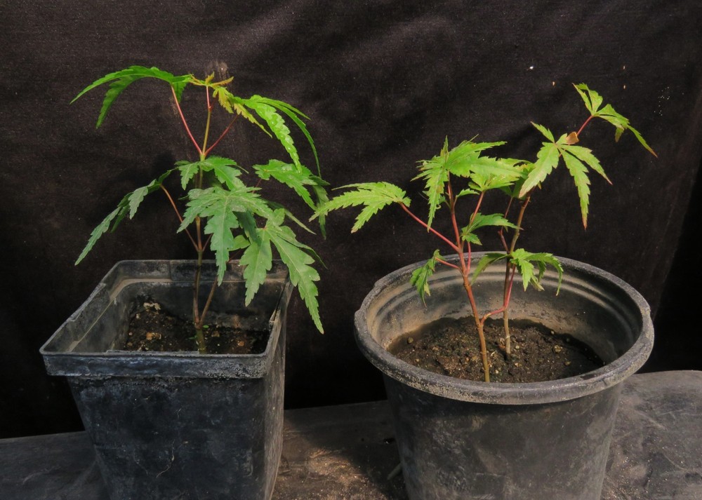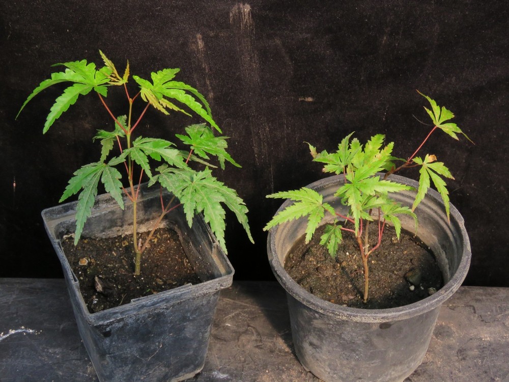Up for sale are 3 seed-grown Acer palmatum 'Arakawa' trees. These are the last of last year's runt seedlings. Arakawa is known for its gnarly, corky-looking, highly textured bark and is sometimes called the Rough Bark Maple. A high percentage of these seedlings should develop the rough bark and rough root bark characteristic of Arakawa. This group of seedlings is very consistent, with little variation. The trees are almost identical. Arakawa is one of the most popular trees in Japan, both for bonsai and landscape-growing enthusiasts. Japanese Maple seedlings can vary a lot or be mostly uniform. Some closely resemble the parent trees, while others will not. You never know for sure what you'll get, but you can be sure it'll be awesome! They can be grown in zones 5 to 9. Under ideal conditions, the trees can grow to 25 feet tall. In the fall, the leaves turn a bright, fiery orange-red. Shipping is $12 by Priority Mail or Ground Advantage.
