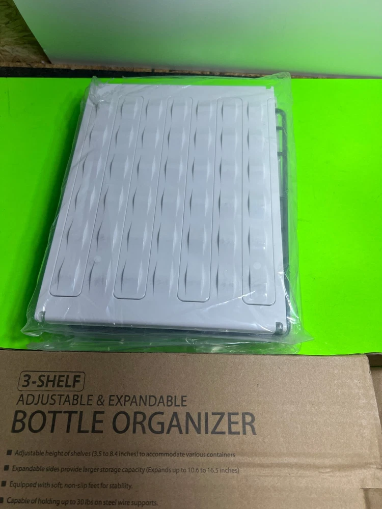 3 Shelf Bottle Organizer Adjustable Height Expandable Storage Easy to Assemble. Brand new, opened for pictures