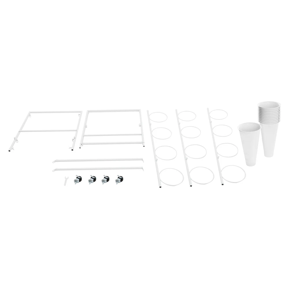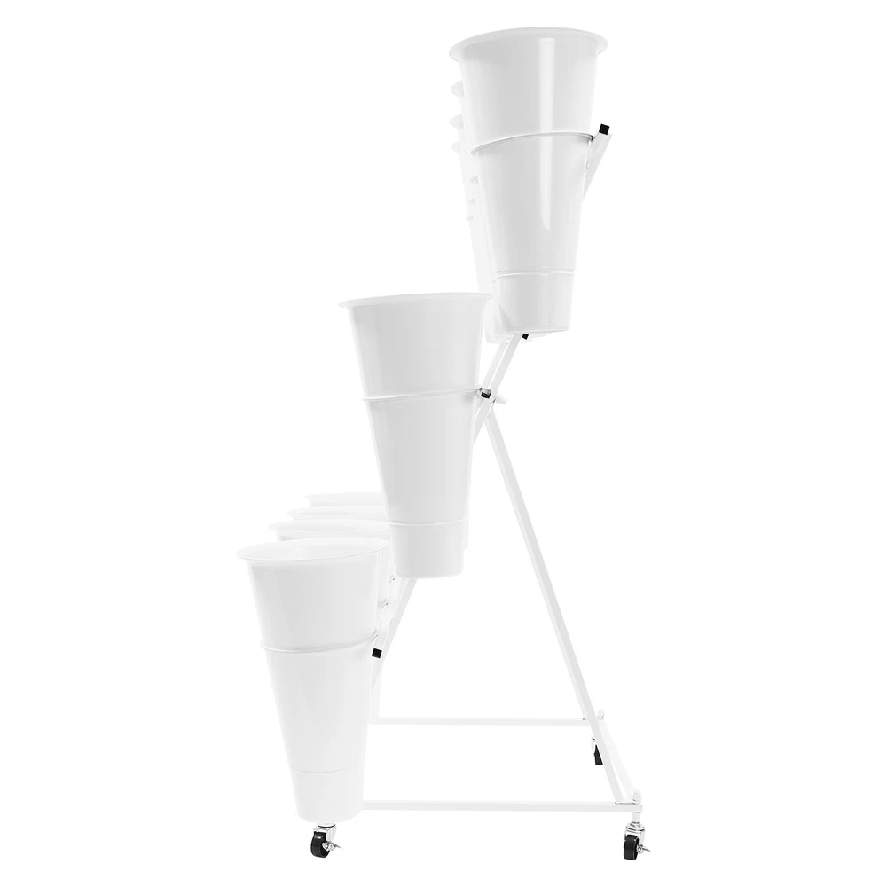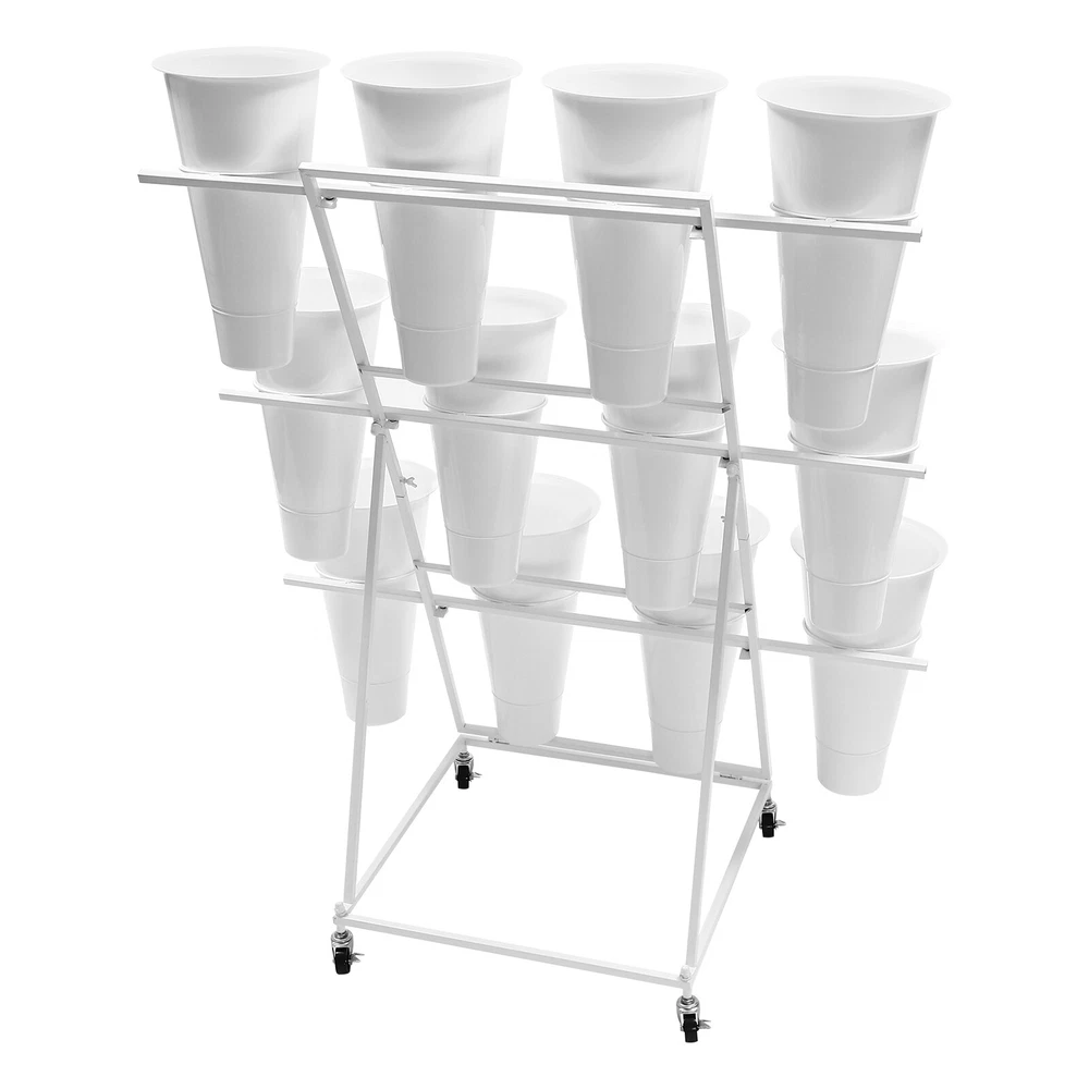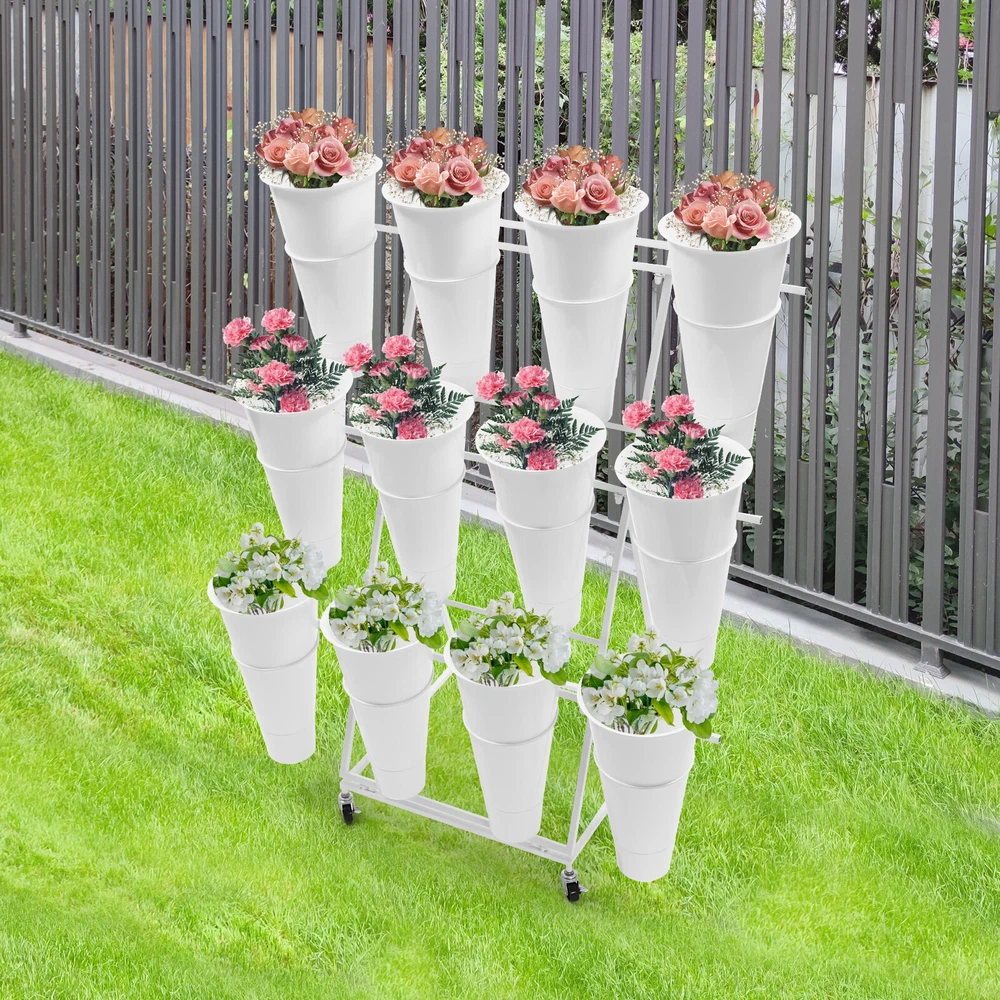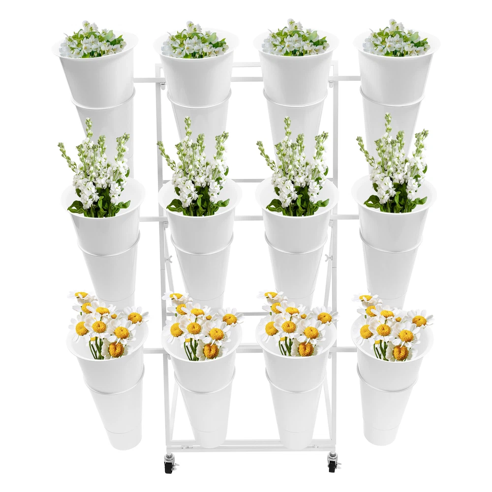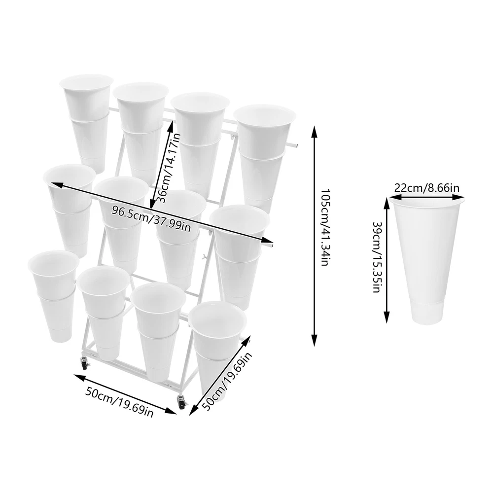 Description This flower display stand is made of high-quality iron pipe with a solid structure, which allows you to place the bucket firmly on it and arrange the flowers steadily and neatly. It can be used for waking up flowers, keeping flowers, or decorating. It is not only a reflection of the beauty of flowers, but also a sublimation of the style of the florist. We believe that this product will win the favor and praise of customers, and become a flower mecca in their hearts. Key Feature Build to Last: High-quality iron, PP, and exquisite dispel rust process make this product hard, wear-resistant, and corrosion-resistant, which can keep practical and beautiful for a long time. 3-tier Structure: The three-tier structure makes effective use of limited space, and the delicate design allow 3 Tier Plants Holder With Wheels Mental Flower Display Stand + 12 Pcs Buckets Description This flower display stand is made of high-quality iron pipe with a solid structure, which allows you to place the bucket firmly on it and arrange the flowers steadily and neatly. It can be used for waking up flowers, keeping flowers, or decorating. It is not only a reflection of the beauty of flowers, but also a sublimation of the style of the florist. We believe that this product will win the favor and praise of customers, and become a flower mecca in their hearts. Key Feature Build to Last : High-quality iron, PP, and exquisite dispel rust process make this product hard, wear-resistant , and corrosion-resistant , which can keep practical and beautiful for a long time. 3-tier Structure: The three-tier structure makes effective use of limited space, and the delicate design allows 12 buckets to be embedded in an orderly manner, which is both an interpretation of pragmatism and a unique display of aesthetic concepts. Strong Stability : The sturdy material and reasonable structure provide 66.14 lbs load-bearing capacity for this product, so you can use it without worrying about collapsing and breaking. Multifunction : The 3-tier stepped flower display stand comes with 12 buckets to hold water and keep plants and flowers alive for a long time, can be arranged in different styles, and used as a decorative addition to any garden party or outdoor event. Attractive Appearance : Its geometric shape and classic white color enhance customers' visual experience and add flair to your shop. Wherever you place it, it will be a unique and refreshing sight. Effortless Clean : A simple structure and smooth surface make this product easy to clean. You only have to wipe it with a damp cloth. Easy to Move &Fix: 4 silent universal wheels (with brakes) make this product easy to move and fix, very energy-saving, and at the same time will not disturb others. Easy to Install : Simple structure and complete installation accessories allow you to install it yourself in a few minutes Guaranteed Customer Service: We aim to provide quality products and services. If you have any problems, please feel free to contact us. We will reply and solve the problem for you as soon as possible. Details Practical Bucket : The 15.35-inch deep bucket gives it the unique ability to hold most types of slender bouquets while ensuring that the roots of the bouquets can immerse themselves in fresh water and draw in the nourishment of life. Smooth Edges : They not only enhance the aesthetics of the product but also improve safety during installation and use. Application It is suitable for organizing and displaying plants in homes, florists, home balconies, gardens, clubs, weddings, and elsewhere. Specification Material: Iron, PP Surface Treatment: Dispel Rust Shape: Trapezoid Color: White Assembly Required: Yes Mount Type: Floor Standing Style: Modern Number of Flower Rack Tiers: 3 Number of Universal Wheels: 4 Number of Buckets: 12 Load Capacity: About 30kg/66.14lbs Bucket Size(H*D): 39*22cm/15.35*8.66in Tier-spacing: 36cm/14.17in Cross Rod Length: 96.5cm/37.99in Flower Rack Size: 50*50*105cm/19.69*19.69*41.34in Flower Display Stand: Gross Weight: 6kg/13.23lbs Net Weight: 5.5kg/12.13lbs Package Size: 102*62*8cm/40.16*24.4*3.15in 12 Round Buckets : Gross Weight: 4kg/8.82lbs Net Weight: 3.5kg/7.72lbs Package Size: 61*24*24cm/20.12*9.45*9.45in Package Included 1*Flower Display Stand 4*Wheels 12*Buckets All Accessories for Assembly Notes Please note that flowers are not included in this product. We send the flower display stand and buckets separately to protect the product from damage during transportation. Please wait patiently for all parts to arrive. Please allow the slight color difference caused by the shooting light and the 1-3 cm error due to manual measurement, and make sure you do not mind before ordering. Payment Delivery details Terms of sales About us Contact us Payment We accept ebay payment 。 Fees such as import duties, taxes are not included in the item price or shipping costs. These charges are the buyer's responsibility. Delivery details Shipping: 2-9 working days to: USA Terms of sales We maintain high standards of excellence and strive for hundred percent customer satisfaction. Feedback is very important to us. We hope that you contact us immediately before you give neutral or negative feedback, so that we can address your concerns. It is impossible to address issues if we do not know about them! About us Your satis faction is our ultimate goal. We work hard to earn your trust and future business. Our certified technicians have tested each item before shipping. The unit comes with 1 year limited warranty on all manufacturing defects. a) If you receive a defective item, you may return it or ask for a discount. Please contact us within 14 days after you receive the package. b) What you returned must be intact and in its original packaging as re? u. Customer is responsible for shipping costs of the returned item. c) We will cover the cost of shipping back t with the shipping rate indicated in the registration page. We will send you a new unit or refund 