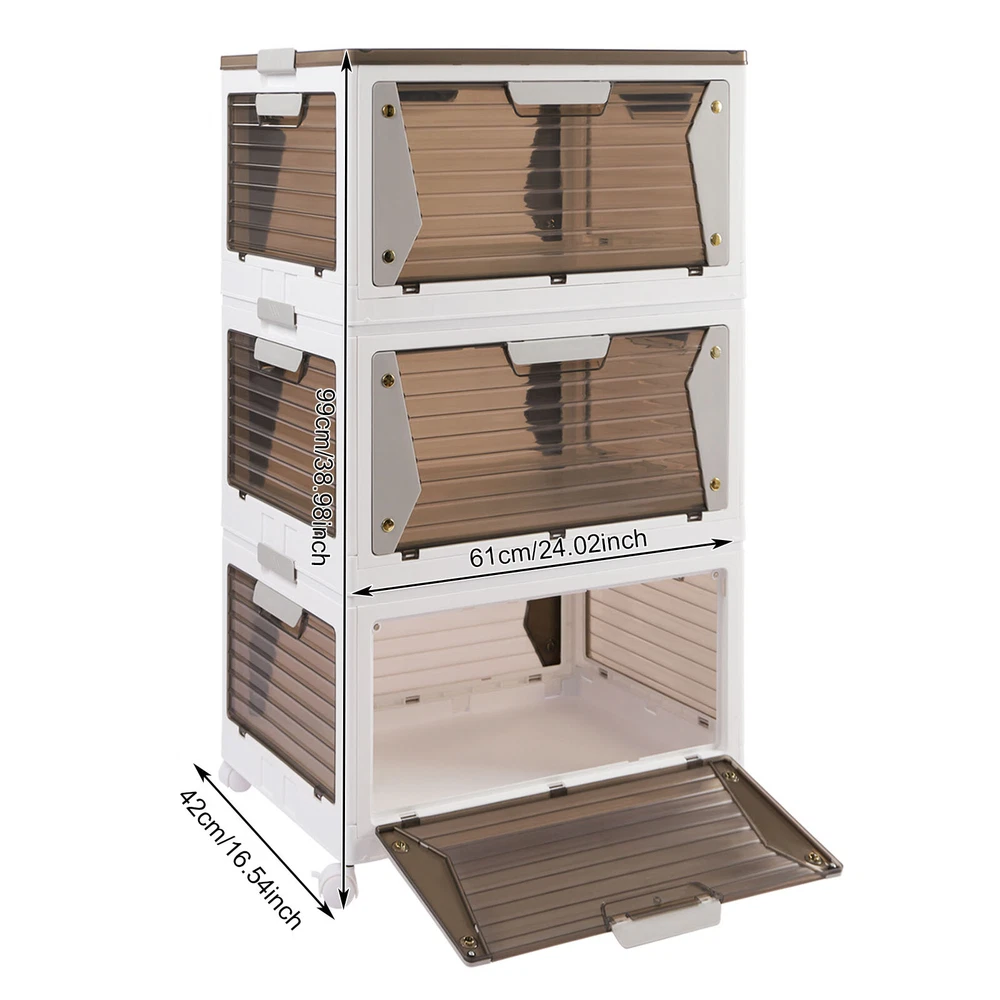 Specifications Color: White Material: PP Style: Modern Shape: Rectangular Process: Injection Molding Mount Type: Floor Standing Assembly Required: Yes Number of Tiers: 3 Number of Wheels: 4 (2 with Brakes) Product Size: 61*42*99cm/24*16.53*38.97inch Package Size: 65.5*45*24.5cm/25.79*17.72*9.64inch Each Tier Load-bearing Capacity: About 40kg/88.18 lbs Gross Weight: 8.4kg/18.52 lbs Net Weight: 8kg/17.63 lbs Package Included 1* 3-tier Storage Organizer 4* Universal Wheels All Accessories for Installation 3 Tier Plastic Storage Bins with Lids Stackable Closet Organizer Containers Box Description This 3-tier foldable storage organizer is both stylish and practical. It is designed to make full use of space and achieves fine classification storage to make your life more orderly. The modern style shows an exquisite charm, expressing a refined sense of fashion. Get this large-capacity organizer now to make your life more organized and tidy! Key Features High-quality Materials: The product is made of PP , with an injection molding process, which has high strength, good corrosion resistance, and is rust-resistant , moisture-proof , and can be used for the long term. Modern Appearance: The pleasing white color, simple appearance , and smooth lines add beauty elements to your room, bringing exquisite charm into your home. S torage Master : It has a 3-tier design, which is enough to easily store books, clothes, snacks, bed sheet s, toys, and other items, making your room cleaner. Good Stability: Side buckles make each tier of the organizer firmly fixed, and t he top lid, the doors on all four sides and the connections of the product use safety swivel buckles, which improve the stability of the product. Together with the thickened material and rectangular structure, it ensures each tier has an excellent load-bearing capacity of about 88.18 lbs so that you can use it with confidence. Thoughtful Design: The front and rear doors adopt a magnetic suction design that makes the doors close securely. Moreover, the visual door design not only allows you to find your items quickly and easily but also prevents moisture, dust, and insects from entering to keep stored items clean and dry. Convenient to Use: The product takes five-door designs for the front, back, left, right, and top cover, allowing you to access the items in the organizer from multiple directions, adding much convenience for your daily use! It can be quickly folded when not in use to be placed in your room with less storage space. Easy to Move & Fix: Four universal wheels (two with brakes) make the whole product easily moved from one place to another and can be fixed at will, greatly enhancing efficiency and convenience. Easy to Clean: With a smooth surface and simple structure, it is very easy to clean with a damp cloth (not included). Ideal Gift: With a delicate outlook and practical storage function, it is a wonderful housewarming or festival gift for your families, friends, or colleagues. Details Top Slot: The top slot with a ventilation design is used to store mothballs and fresheners(not included) to keep the items dry and fragrant. Round Corners& Edges: They no t only increase the beauty of the product but also improve the safety of use. Practical Handles: They allow you to open and close the doors easily and conveniently. Application It can be used in homes, living rooms, bedrooms, closets, kitchens, study rooms, laundry rooms, dormitories, basements, etc. for storing toys, books, clothes, sheets, snacks, drinks, tools, art supplies, photos, medicine, etc. How to Install Unfold both side baffles . Unfold the front and rear baffles and interlock the baffles on all sides. Cover the top fixing frame. Cover the top cover . Fasten the two sides of the buckle to fix the top cover. Flip over the storage box to install the wheels to complete the installation. Specifications Color: White Material: PP Style: Modern Shape: Rectangular Process: Injection Molding Mount Type: Floor Standing Assembly Required: Yes Number of Tiers: 3 Number of Wheels: 4 (2 with Brakes) Product Size: 61*42*99cm/ 24 * 16.53 * 38.97 inch Package Size: 65.5*45*24.5cm/ 25.79 * 17.72 * 9.64 inch Each Tier Load-bearing Capacity: About 40kg/88.18 lbs Gross Weight: 8.4kg/ 18.52 lbs Net Weight: 8kg/ 17.63 lbs Package Included 1* 3-tier Storage Organizer 4* U niversal Wheels All Accessories for Installation Notes Please check the style and size carefully before ordering. Please note that this product does not include other storage items shown in the picture. You can use the three storage bins together or separately according to your needs. But it has only one top lid. Please allow the slight color difference caused by the shooting light and 1-3cm error due to manual measurement, and make sure you do not mind before you order. Payment Delivery details Terms of sales About us Contact us Payment We accept ebay payment 。 Fees such as import duties, taxes are not included in the item price or shipping costs. These charges are the buyer's responsibility. Delivery details Shipping: 2-9 working days to: USA Terms of sales We maintain high standards of excellence and strive for hundred percent customer satisfaction. Feedback is very important to us. We hope that you contact us immediately before you give neutral or negative feedback, so that we can address your concerns. It is impossible to address issues if we do not know about them! About us Your satis faction is our ultimate goal. We work hard to earn your trust and future business. Our certified technicians have tested each item before shipping. The unit comes with 1 year limited warranty on all manufacturing defects. a) If you receive a defective item, you may return it or ask for a discount. Please contact us within 14 days after you receive the package. b) What you returned must be intact and in its original packaging as re? u. Customer is responsible for shipping costs of the returned item. c) We will cover the cost of shipping b