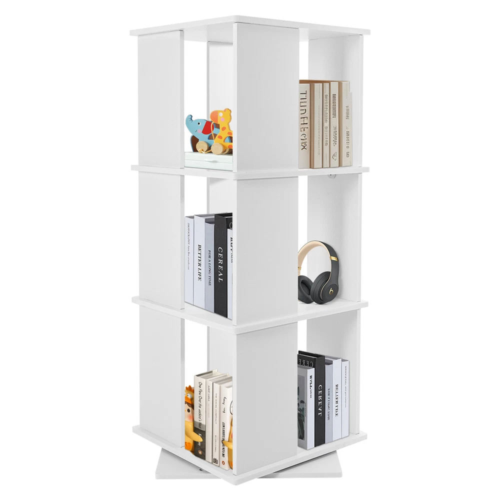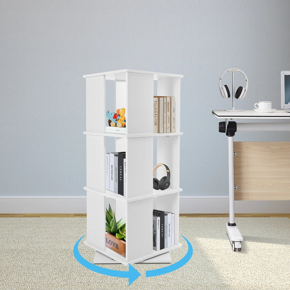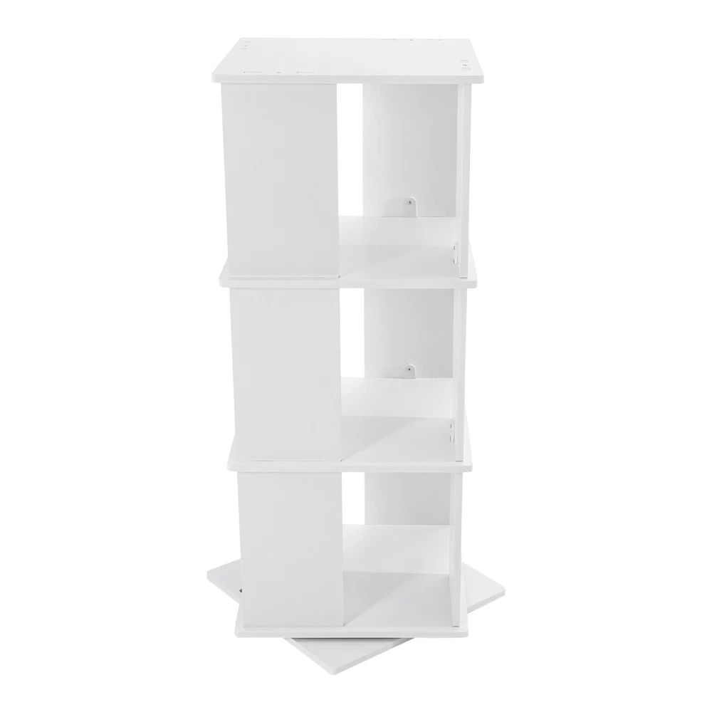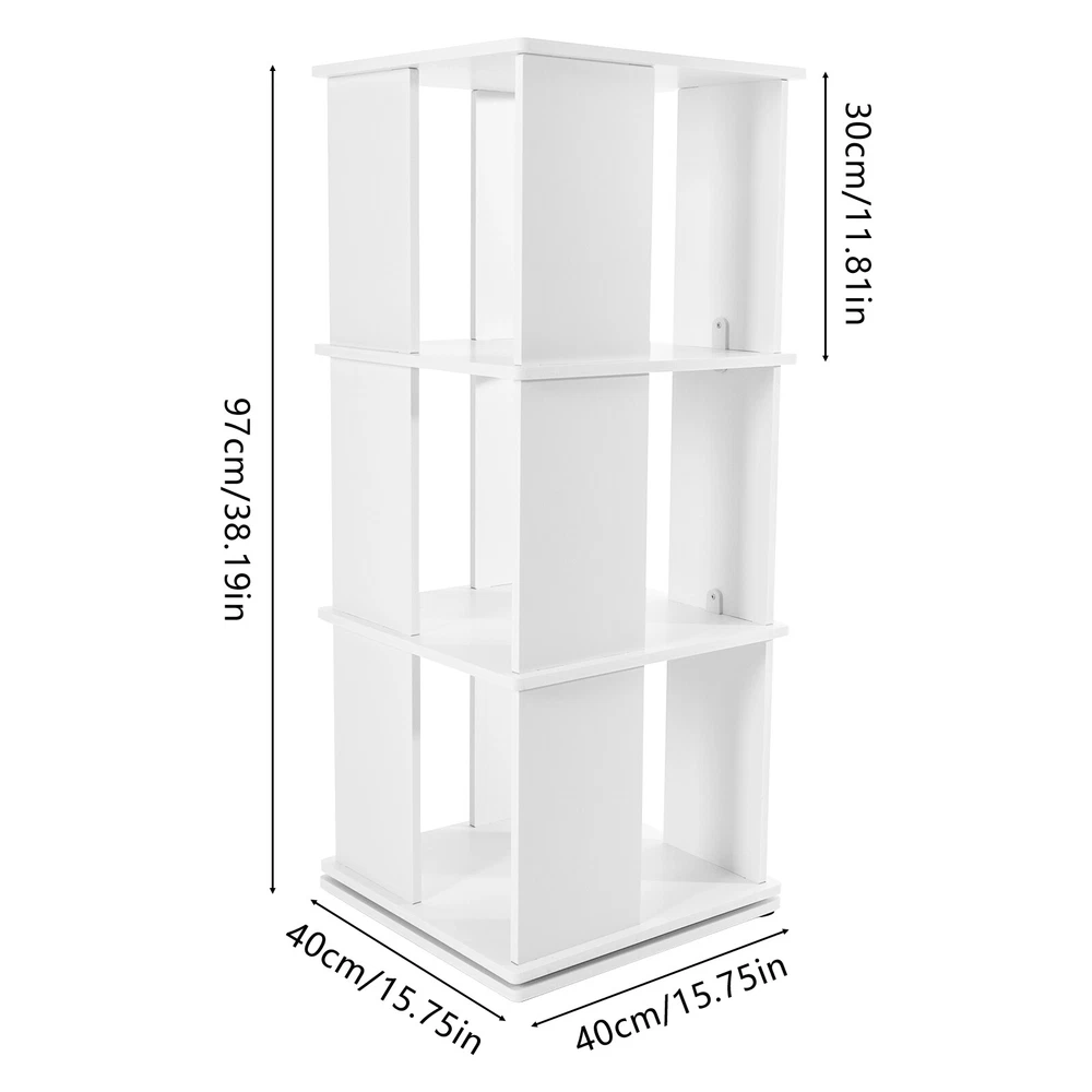 Specification Material: PVC Paint-free Board Process: Carving Color: White Shape: Rectangular Style: Modern Assembly Required: Yes Rotation Angle: 360° Board Thickness: 10mm/0.39in Mounting Method: Mortise and Tenon Structure Mount Type: Free Standing Overall Load Capacity: 50kg/110.23lbs Number of Tiers: 3 Each Tier Size: 40*40*30cm/15.75*15.75*11.81in Product Size: 40*40*97cm/15.75*15.75*38.19in Package Size: 48*46*14cm/18.9*18.11*5.51in Net Weight: 6kg/13.23 lbs Gross Weight: 6.5kg/14.33 lbs Package Included 1* Three-tier Rotating Bookshelf 1 Pair* Gloves 1* Sandpaper 1* English Installation Instruction All Accessories for Use 3 Tiers 360° Rotating Bookshelf Display Free Standing Wood Bookcase Storage Rack Description Against the ever-increasing pace of contemporary life, finding a quiet corner to immerse oneself in the sea of knowledge has become a luxury many people aspire to in their hearts. It is out of a deep understanding of this spiritual pursuit, a blend of classic aesthetics and modern design concepts of furniture masterpieces - a black three-tier rotating bookshelf came into being, it is not only a storage unit but also a home space in the artwork, so that every reading choice, are transformed into a double feast for the eyes and mind. Key Features Robust and Durable: Carved from durable PVC eco-friendly paint-free board, it is formaldehyde-free and odorless , ensuring that the bookshelf is sturdy, stable, and healthy. Rotating Design: Its base can be easily rotated to achieve 360 ° to get books, greatly enhancing the convenience of the reading experience, and can help children develop a good habit of timely storage after reading. Neat Organizer: Adopting a three-tier design, each tier has a capacity space of 15.75*15.75*11.81'', which can accommodate and collect most books and other items in an orderly manner, so you can say goodbye to the clutter. Stable Support: The double-supported non-slip base, screw-reinforced design, mortise-and-tenon construction, and 10mm plate thickness all greatly enhance the stability of the product, with an overall load capacity of 110.23 lbs, allowing you to place your items with confidence. Outstanding Display Effect: In addition to being used as a bookshelf, it can also be used to display artwork, greenery, photo frames, and other decorative items (all not included), making the bookshelf the focal point of the space with both practical and ornamental value. Humanized Height: The total height of the bookshelf is 38.19 inches, which is suitable and takes ergonomics into account to ensure that you don't need to bend over or stand on tiptoe when putting books away, bringing you a comfortable experience of using the bookshelf. Thanks to its compact shape, you can place it in the corner, next to the sofa or table. Simple-up Clean: The smooth surface, simple structure, and open design make the daily cleaning of the bookshelf easy and simple, just wipe it gently to keep it clean and as good as new. Stylish Simplicity: The minimalist aesthetic creates smooth lines and elegant colors that blend harmoniously with modern, industrial, or vintage-style interiors to enhance the style of the space. Installation Fun: Thanks to complete installation accessories, clear installation instructions, mortise, and tenon installation structure, allowing you to complete the assembly in a very short time, enjoy the fun of installation. Customer Service: We aim to provide quality products and services. If you have any problems, please feel free to contact us. We will reply and solve the problem for you as soon as possible. Details Matching Gloves: They can protect your hands from injury during installation. Book Stop: Each tier is equipped with stoppers to prevent books from falling for added safety. Top Platform: It provides you with extra space for photo frames, small potted plants, etc. while enhancing the style. Smooth Edges: The smooth, burr-free edges not only improve aesthetics, but also enhance safety during installation and cleaning. We also provide extra sandpaper to make it easy for you to sand the edges. Application It can hold various kinds of books, magazines, decorations, photo frames, green plants ( all excluded), and so on. It is suitable for placing in the living room, balcony, children's room, study room, living room, school, church, library, shopping mall and other places. Specification Material: PVC Paint-free Board Process: Carving Color: White Shape: Rectangular Style: Modern Assembly Required: Yes Rotation Angle: 360° Board Thickness: 10mm/0.39in Mounting Method: Mortise and Tenon Structure Mount Type: Free Standing Overall Load Capacity: 50kg/110.23lbs Number of Tiers: 3 Each Tier Size: 40*40*30cm/15.75*15.75*11.81in Product Size: 40*40*97cm/15.75*15.75*38.19in Package Size: 48*46*14cm/18.9*18.11*5.51in Net Weight: 6kg/13.23 lbs Gross Weight: 6.5kg/14.33 lbs Package Included 1* Three-tier Rotating Bookshelf 1 Pair* Gloves 1* Sandpaper 1* English Installation Instruction All Accessories for Use Notes Please check the size before purchasing. Please allow the slight color difference caused by the shooting light and 1-3cm error due to manual measurement and make sure you do not mind before ordering. On Dec 22, 2024 at 23:05:02 PST, seller added the following information: