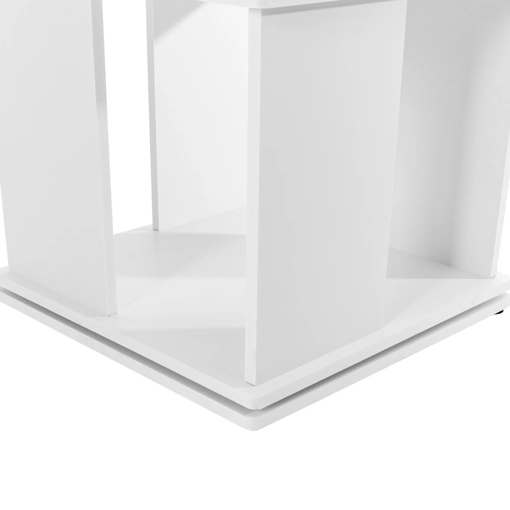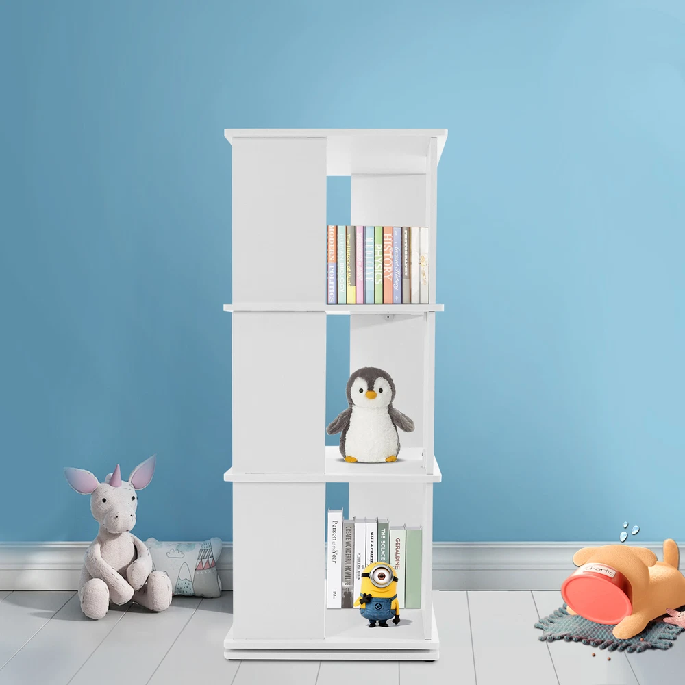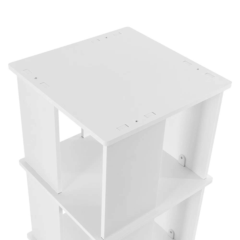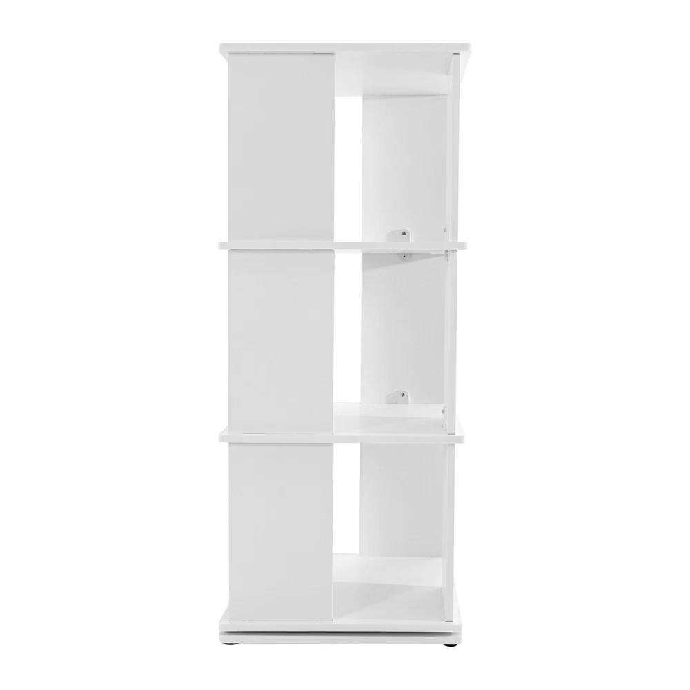 Specification Material: PVC Paint-free Board Process: Carving Color: White Shape: Rectangular Style: Modern Assembly Required: Yes Rotation Angle: 360° Board Thickness: 10mm/0.39in Mounting Method: Mortise and Tenon Structure Mount Type: Free Standing Overall Load Capacity: 50kg/110.23lbs Number of Tiers: 3 Each Tier Size: 40*40*30cm/15.75*15.75*11.81in Product Size: 40*40*97cm/15.75*15.75*38.19in Package Size: 48*46*14cm/18.9*18.11*5.51in Net Weight: 6kg/13.23 lbs Gross Weight: 6.5kg/14.33 lbs Package Included 1* Three-tier Rotating Bookshelf 1 Pair* Gloves 1* Sandpaper 1* English Installation Instruction All Accessories for Use 3 Tiers 360° Rotating Bookshelf Display Free Standing Wood Bookcase Storage Rack Description Against the ever-increasing pace of contemporary life, finding a quiet corner to immerse oneself in the sea of knowledge has become a luxury many people aspire to in their hearts. It is out of a deep understanding of this spiritual pursuit, a blend of classic aesthetics and modern design concepts of furniture masterpieces - a black three-tier rotating bookshelf came into being, it is not only a storage unit but also a home space in the artwork, so that every reading choice, are transformed into a double feast for the eyes and mind. Key Features Robust and Durable: Carved from durable PVC eco-friendly paint-free board, it is formaldehyde-free and odorless , ensuring that the bookshelf is sturdy, stable, and healthy. Rotating Design: Its base can be easily rotated to achieve 360 ° to get books, greatly enhancing the convenience of the reading experience, and can help children develop a good habit of timely storage after reading. Neat Organizer: Adopting a three-tier design, each tier has a capacity space of 15.75*15.75*11.81'', which can accommodate and collect most books and other items in an orderly manner, so you can say goodbye to the clutter. Stable Support: The double-supported non-slip base, screw-reinforced design, mortise-and-tenon construction, and 10mm plate thickness all greatly enhance the stability of the product, with an overall load capacity of 110.23 lbs, allowing you to place your items with confidence. Outstanding Display Effect: In addition to being used as a bookshelf, it can also be used to display artwork, greenery, photo frames, and other decorative items (all not included), making the bookshelf the focal point of the space with both practical and ornamental value. Humanized Height: The total height of the bookshelf is 38.19 inches, which is suitable and takes ergonomics into account to ensure that you don't need to bend over or stand on tiptoe when putting books away, bringing you a comfortable experience of using the bookshelf. Thanks to its compact shape, you can place it in the corner, next to the sofa or table. Simple-up Clean: The smooth surface, simple structure, and open design make the daily cleaning of the bookshelf easy and simple, just wipe it gently to keep it clean and as good as new. Stylish Simplicity: The minimalist aesthetic creates smooth lines and elegant colors that blend harmoniously with modern, industrial, or vintage-style interiors to enhance the style of the space. Installation Fun: Thanks to complete installation accessories, clear installation instructions, mortise, and tenon installation structure, allowing you to complete the assembly in a very short time, enjoy the fun of installation. Customer Service: We aim to provide quality products and services. If you have any problems, please feel free to contact us. We will reply and solve the problem for you as soon as possible. Details Matching Gloves: They can protect your hands from injury during installation. Book Stop: Each tier is equipped with stoppers to prevent books from falling for added safety. Top Platform: It provides you with extra space for photo frames, small potted plants, etc. while enhancing the style. Smooth Edges: The smooth, burr-free edges not only improve aesthetics, but also enhance safety during installation and cleaning. We also provide extra sandpaper to make it easy for you to sand the edges. Application It can hold various kinds of books, magazines, decorations, photo frames, green plants ( all excluded), and so on. It is suitable for placing in the living room, balcony, children's room, study room, living room, school, church, library, shopping mall and other places. Specification Material: PVC Paint-free Board Process: Carving Color: White Shape: Rectangular Style: Modern Assembly Required: Yes Rotation Angle: 360° Board Thickness: 10mm/0.39in Mounting Method: Mortise and Tenon Structure Mount Type: Free Standing Overall Load Capacity: 50kg/110.23lbs Number of Tiers: 3 Each Tier Size: 40*40*30cm/15.75*15.75*11.81in Product Size: 40*40*97cm/15.75*15.75*38.19in Package Size: 48*46*14cm/18.9*18.11*5.51in Net Weight: 6kg/13.23 lbs Gross Weight: 6.5kg/14.33 lbs Package Included 1* Three-tier Rotating Bookshelf 1 Pair* Gloves 1* Sandpaper 1* English Installation Instruction All Accessories for Use Notes Please check the size before purchasing. Please allow the slight color difference caused by the shooting light and 1-3cm error due to manual measurement and make sure you do not mind before ordering. On Dec 22, 2024 at 23:05:02 PST, seller added the following information: