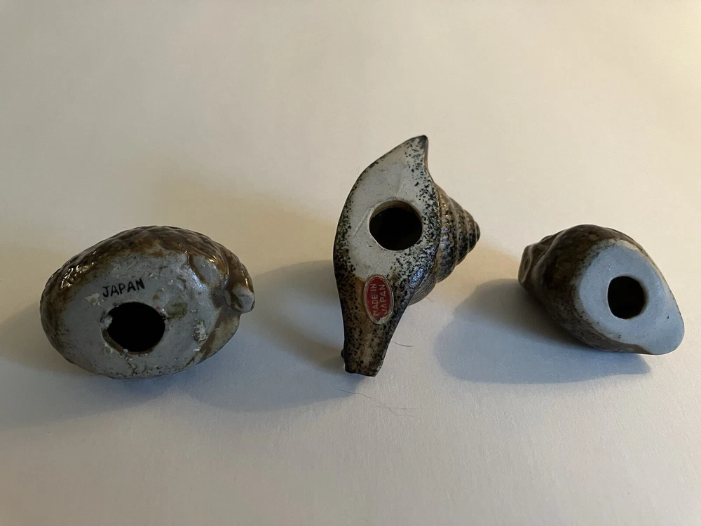 Vintage lot of 3 miniature Otagiri brown stoneware miniature figurines. Lot includes snail ( 2 1/4” x 1 1/4”,) owl (1 1/4” x 1 1:4”,) and quail (1 1/2” x 1 1/3”.) Quail stamped Japan and snail has red and gold Made in Japan foil label. All in great shape, no chips or cracks. Clean. Cute trio. Thanks for looking. Now for the fine print…… I use the good old USPS for all shipping. Despite their recent increase in shipping rates, I try to charge fair shipping. On certain items I charge a $1.00 handling fee to offset the price of bubble wrap, boxes, Styrofoam peanuts, etc. I’m very happy to combine shipping on multiple items that you purchase. I ship every day; Monday through Friday (except for snow and ice events) but do not ship on Saturdays.