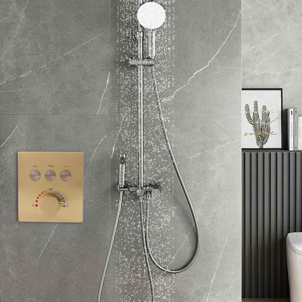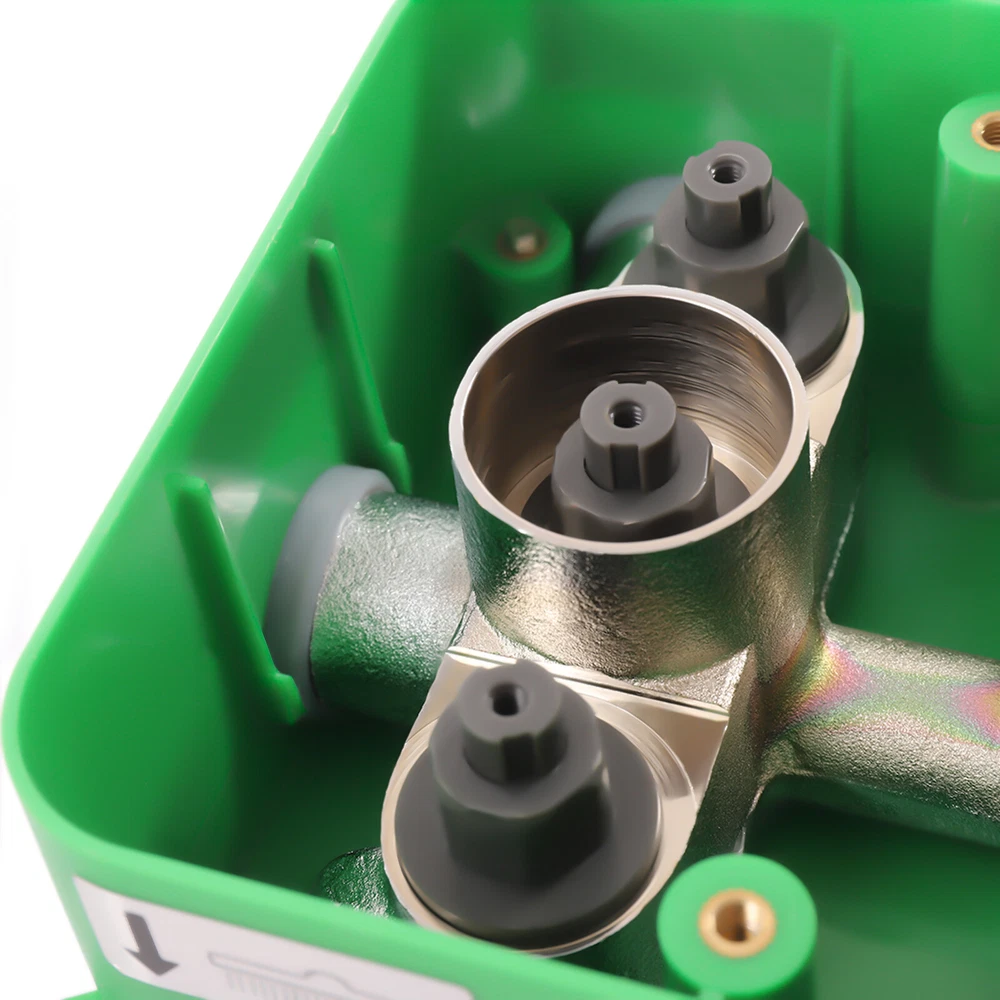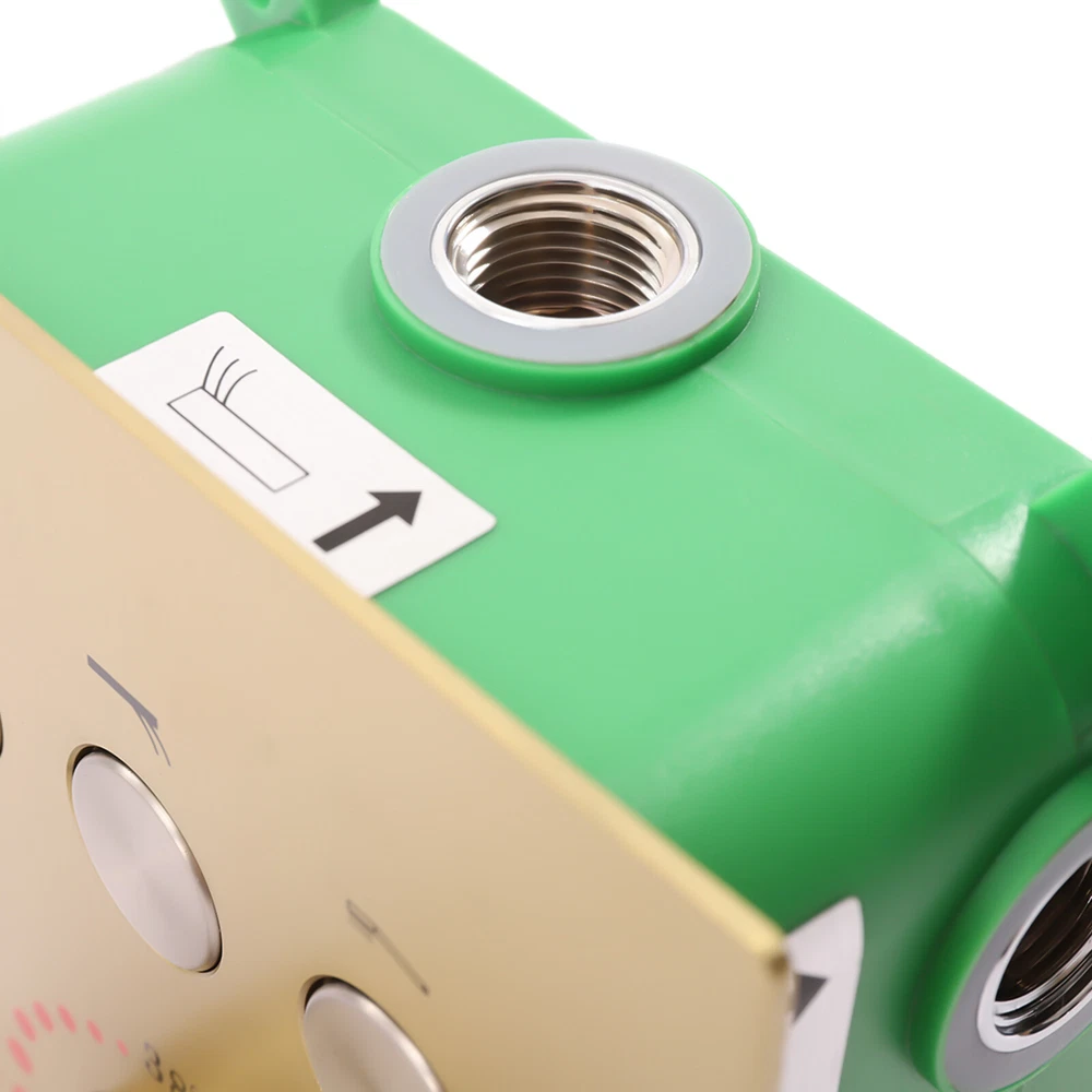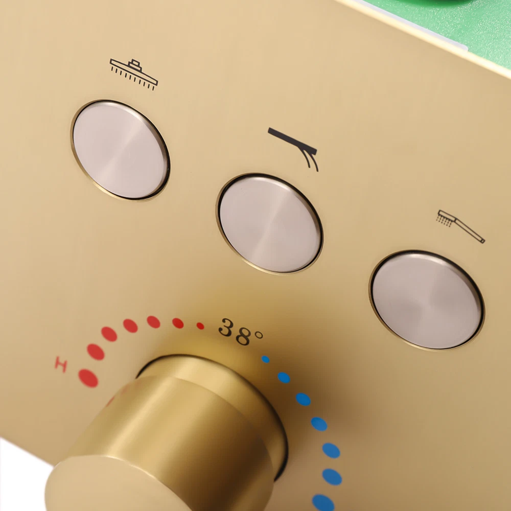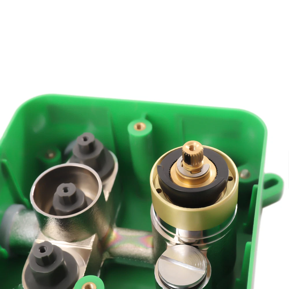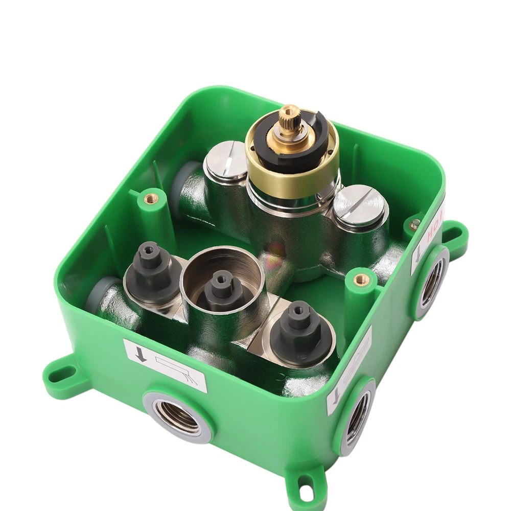 SPECIFICATION Model: V-002TP Overall Material: Copper Material of Embedded Box: Plastic Surface Process: Wire Drawing Color: Golden Installation Method: Wall-mounted Pre-embedded Depth Range: About 67mm/2.64inch Water Pressure Range: 0.1-1.0mpa Water Temperature Range: 4-85℃/39.2-185F Hot Water Temperature: 55-85 ℃/131-185F (65 ℃ is Recommended) Cold Water Temperature : 4-29 ℃ /39.2-84.2F (15 ℃ is Recommended) Suitable Thread: G1/2'' Net Weight: 3kg/6.61lbs Gross Weight: 3.3kg/7.28lbs Package Size: 24*20*18cm/9.45*7.87*7.09inch Product Size: 15*17cm/5.91*6.69inch PACKAGE INCLUDED 1* Thermostatic Shower Diverter Valve 1*Instructions All Accessories for Assembly 3 Way Function Concealed Thermostatic Shower Diverter Valve For G1/2" threads Welcome to my store Description When You Go Home After a Busy Day, Enjoying a Comfortable Shower Is Enough to Take Away the Tiredness of the Day so That You Can Better Enjoy Life. Our Thermostatic Shower Diverter Valve Can Help You Adjust the Proper Water Temperature to Make Your Shower More Comfortable. the Durable Copper Material and Wire Drawing Process Make the Product More Smooth and Bright. the Constant Temperature Design and Three Functions Fully Take Care of the Children and the Elderly at Home, so You Can Use It with Confidence. with This Product, You Can Enjoy Your Own Bath Time. Key Features High-end Material: This Item Is Made of Copper with Good Durability, Which Is Not Easy to Rust and Is Corrosion-resistant . Therefore, You Can Use It for a Long Time Without Frequent Replacement, Which Can save Your Use Cost After a Certain Time. Exquisite Process: the Shower Diverter Valve Adopts the Wire Drawing Process, Which Makes the Product Surface Smoother and Brighter, so You Can Clean It Easily with a Towel Multiple Functions: the Shower Diverter Valve Is Equipped with 3 Push Buttons, Which Can Be Applied to Most 3-Function Showers to Achieve Three Different Shower Functions. at the Same Time, the Three Functions Can Be Used Independently or Simultaneously, Which Provides More Convenience for You to Enjoy Your Bath Time. Safe and Reliable: the Shower Diverter Valve Uses a Thermostatic Valve Element to Ensure a Constant Temperature. It Can Be Safely Stopped at 38 ° Degrees (100℉) , Which Can Effectively Prevent Scalding in the Shower. This Design Is Especially Suitable for Children and the Elderly. Precise Temperature Control: the Spool of This Item Has Accurate Temperature Control, You Can Easily Control the Temperature in the Range of 4-85℃/39.2-185f with the Temperature Handwheel. Beautiful Appearance: the Shower Diverter Valve Is Golden, Giving a Sense of Luxury. with Smooth Lines, It Can Make Your Bathroom More Attractive and Bring in You a Good Mood. Easy to Use and Maintain: a Detailed Manual Is Provided in the Package of the Shower Diverter Valve. You Only Need to Follow the Steps, Which Saves You Time. Humanized Design: the Box of the Shower Diverter Valve Is Marked with Cold and Hot Water, Which Is Very Clear and Convenient for You to Adjust the Temperature Without Confusion. Details Embedded Box: This Product Is Made of a Plastic Embedded Box That Not Only Makes the Installation More Aesthetic but Also Can Better Protect the Valve Body from Damage, Making It Easy to Install and Maintain. Check Valve: This Shower Diverter Valve Has a Built-in Check Valve, Which Can Effectively Prevent Backflow and Bring You a Better Bath Experience. Application It Is Suitable for All Kinds of Bathroom Bathtubs with Three Functions: Hand Shower, Waterfall Shower and Overhead Shower. It Is Suitable for Installation in Inlets and Outlets with G1/2" Threads, As Well As for Installation on Solid and Hollow Walls. How to Use 1. Open or Close the Water Outlet Independently Through the Buttons. 2. Adjust the Thermostatic Handwheel on the Right to Adjust the Outlet Water Temperature. How to Install Open the Wall to Dig the Main Body Embedded Port, the Hot and Cold Water Inlet, and the Mixed Water Outlet. Drill Four 6mm/0.24inch Holes with an Impact Drill According to Product Size. Use a Hammer to Break Four Expanded Capsules into the Drilled Holes. Connect Each Takeover, Then Connect the Water Source to Confirm That There Is No Leakage. Adjust the Embedded Body to the Horizontal Line and Fix the Embedded Body on the Wall with a Cross Screwdriver to Lock the 4 Self-tapping Screws. Seal the Pipeline with Cement Filler. Loosen the Two M5 Screws on the Sheath Counter-clockwise with a Cross Screwdriver and Remove the Sheath. First Remove the Color Button of the Constant Temperature Handwheel Loosen the Main Handwheel in the Counter-clockwise Direction with the 2.5mm/0.1inch Hex Plate, and Remove It. When Taking out the Constant Temperature Handwheel, Do Not Turn the Constant Temperature Handwheel to Ensure That the Constant Temperature Handwheel Button Is Aligned. Tighten the Three Long Poles on the Key Value Core, Flatten the Wall on the Set, and Cut off the Extra Parts with a Cutting Machine or Blade to Extend the Positioning Plate Plane of the Long Rod. Then Go to the Positioning Board and Press the Icon. Balance the Panel on the Main Body. Put the Accessories of the Constant Temperature Handwheel in the Opposite Direction of the Unloading on the Main Body, ( Pay Attention to the Constant Temperature Handwheel Installation to Ensure That the Valve Core Does Not Turn, the Button Direction Is Aligned with the Direction of the Outlet Pipe. How to Maintain To Keep the Product Surface Clean and Bright. Clean Frequently. Rinse with Clean Water and Then Dry with a Soft Cotton Cloth. Do Not Use Any Abrasive Cleaner, Abrasive Cloth, or Abrasive Paper. Do Not Use Any Acidic Cleaner, Polishing Agent, Soap, Coarse Cleaner, or Polishing Liquid with an Abrasion Effect. When the Water Output Decreases or the Temperature Is Difficult to Adjust, Please Follow the Steps Below to Remove the Impurities on the Flow Net: Labor Shall Be Employed to Disassemble the Water Inle