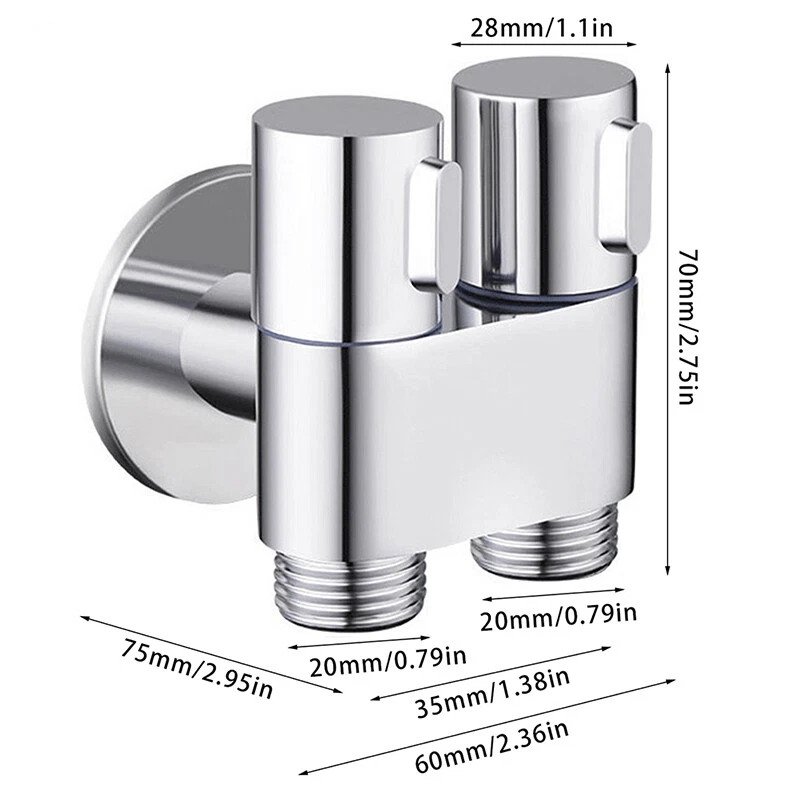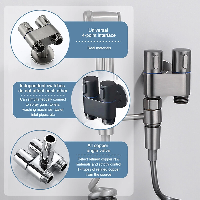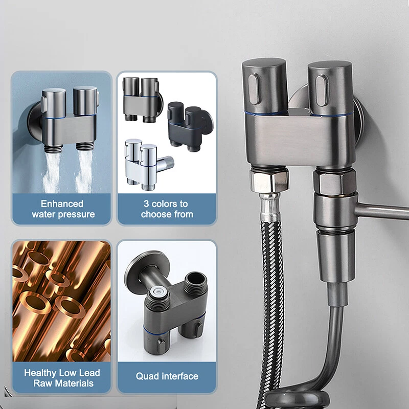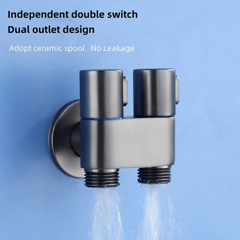 Black / Sliver /Dark Gray G1/2 Mini Multi-function Faucet Brass One into Two out Dual Control Washing Machine Tap Three-Way Toilet Triangle Valve Filling Angle Valves Water Stop Valve for Bathroom Water Heater Kitchen Toilet Sink Triangle Valve Accessories Specification: Product Name: Dual Control Valve Surface Treatment: Electroplating and Polishing Product Features: Dual Use Interface size: standard 4-point interface Installation method: single cold wall installation Material: Copper Color: Black / Sliver /Dark Gray Caliber: G1/2 inch Size: as shown in the figure Installation type: into the wall Scope of application: kitchen, bathroom Features: 【Connection Size】The Triangle Valve adapter can connects to toilet tank / wasing machine,1/2in connects to bidet hose,(1/2in about 1.9-2cm )1/2 in connects to flexble hose/conneter/ water supply. It Works with a standard 1/2” pipe interface in the local. 【Safety】This valve adapter for bidet / washing machine is smooth to operate and controls water flow extremely well. The handle is easy to operate, ideal for households with children ,smooth and reliable, and can be easily operated with wet hands. 【Easy to install】The bidet / washing machine Triangle Valve easy to install, with no leaks; You'll definitely want this Triangle Valve for your Bidet / washing machine. 【High Quality】 The bidet / washing machine valve , high-quality valve, heavy and sturdy, it is carefully processed to explosion proof and anti-pressure, ensuring quality and longevity. Package included: 1 Pcs Angle Valve Note: Please allow 1-2cm errors due to manual measurement. Because of the different display of each computer, the pictures may not reflect the actual color of the item. Dear customers, We are a source professional manufacturer integrating retail and wholesale. If you need to purchase wholesale orders, you can contact our customer service, and we will offer you best quality and price! If you have any question,please chat with me,i will be there anytime! After you receive the package,you have any problem with the order,please contact us, we will do our best to solve the it! And if you like our product,please give us good feedback! On Dec 22, 2024 at 18:21:25 PST, seller added the following information: