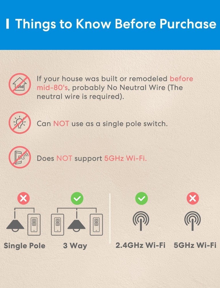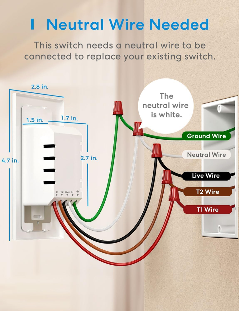 Neutral Wire Required: The Smart Dimmer Switch Kit includes a Main & Secondary Switch. Please make sure your electric box has a neutral wire(in white color) before purchasing the Meross dimmer switch. If you are not sure, please take a photo of the inner part of your electric box and send it to us. We will check it for you timely. 3 Way Application: Only for 3 Way installation, please note the Main switch cannot work with other standard 3 Way switches. It allows you to control the light from 2 different locations, for example, from the top of a stair to the bottom, from the door to your bed, and from a hallway to a stairway. HomeKit Remote Control: To enable HomeKit remote control, you need a HomePod, an Apple TV 4K, an Apple TV HD. Set any of these Apple devices in your house as a HomeKit bridge and connect it to your home Wi-Fi network. Keep in mind that once your HomeKit bridge is set up, it has to be kept online. If it is powered off or disconnected from the Wi-Fi, it will fail to respond when you intend to control the device remotely. Voice Control And Time Setting: Compatible with Apple HomeKit, Apple Watch, Siri, Carplay, Amazon Alexa, and Google Assistant. You can give simple voice commands to turn on/off the devices that are connected to the Meross Wi-Fi switch." Hey Siri, turn on the light". The lights can be turned on/off according to your needs even when you are not at home, great to help you deter potential intruders. Support sunrise and sunset settings. Easy to Install: 15 mins for installation. Meross smart switch fits for your existing 1/2/3/4 gang standard size Decora/GFCI faceplate. Works with 2.4G Wi-Fi only and does NOT support 5G Wi-Fi, no extra hub required. Compatible with SmartThings. Product Description 1%-100% Range Dimmable Dim the brightness from 1%-100%. Manage and control your entire smart home lighting as you need. Voice Control Use simple voice commands to control your lights with Apple HomeKit, Alexa, or Google Assistant. Control From Anywhere Adjust the brightness or turn it on/off from anywhere with Internet access when you’re away. Apple HomeKit Supported Easily Integrate your devices into your Apple ecosystem to control them more conveniently. 3 Way Dimmer Switch Kit Only for 3 way installation, please note the main switch cannot work with other 3 way switches. 1 Voice Control 2 Remote Control 3 Works with Apple HomeKit 4 3 Way Application Millisecond Local Control Enjoy millisecond response and no drop-off with superfast local control when you're at home. Offline Control When the Internet is down, you can still control smart switch in Home Wi-Fi network via Meross app. Safety FCC/IC/ETL certified for safe use. Customize Your Schedule Schedule the 3 way dimmer smart switch to turn on/off automatically, sunrise and sunset supported. 1 Millisecond Local Control 2 Offline Control 3 Safety 4 Timer & Schedule Sunrise/Sunset Schedule your 3 way dimmer switch to turn on/off automatically at specified times or according to Sunrise/Sunset. No Hub Required The main switch can be directly connected to your 2.4GHz Wi-Fi network without a separate smart home hub. Safety 3 Way Dimmer Switch The 3 way dimmable switch is made of fire-retardant material. FCC/IC/ETL certified for safe use. Customized Scenes Set up customized scenes to link your switch and other smart devices to match any occasion, such as saying good night to turn off all the devices. More Smart Devices from Meross Add to Cart Add to Cart Add to Cart Add to Cart Add to Cart Add to Cart Customer Reviews 4.4 out of 5 stars 786 4.1 out of 5 stars 217 4.3 out of 5 stars 185 4.2 out of 5 stars 291 4.3 out of 5 stars 2,245 4.4 out of 5 stars 1,720 4.2 out of 5 stars 830 Price $52.17 $ 52 . 17 $99.98 $ 99 . 98 $35.99 $ 35 . 99 $48.91 $ 48 . 91 $38.99 $ 38 . 99 $41.99 $ 41 . 99 — Works with Apple HomeKit ✔ ✔ ✔ ✔ ✔ ✔ ✔ Works with Amazon Alexa ✔ ✔ ✔ ✔ ✔ ✔ ✔ Works with Google Home ✔ ✔ ✔ ✔ ✔ ✔ ✔ Offline Control ✔ ✔ ✔ ✔ ✔ ✔ ✔ No Hub Required ✔ ✔ ✔ ✔ ✔ ✔ ✔ Neutral Wire / / Required / Required Required Required