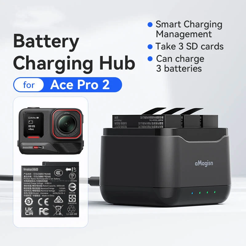 SAFE & SECURE SHOPPING 100% SATISFACTION GUARANTEED FAST SHIPPING 3 Channel Battery Fast Charge Hub For Insta360 Ace Pro 2 Charger Station Box AAU Product Description Description: 100% brand new Name: Battery charging stand Material: ABS Color: black Size: 58.5 × 55.2 × 40.6 (mm³) Suitable for: For Insta360 Ace Pro 2 Features: 1.Three batteries charging at the same time, shooting battery life without worry. Independent power supply triple charging slot, can simultaneously charge three batteries at maximum power, three power at any time fully charged in place, so you can shoot without worry! 2. Low power fast charging, full power that stops, when the battery is low, the charging seat to the maximum power to charge the battery; when the battery enters the high power state, the charging seat gradually reduce the charging power; when the battery is full, the charging seat immediately stops charging the battery! 3. There is a continuation, voyage of course, must also have storage. The charging cradle can store three MicroSD cards, the battery and MicroSD card are always in place, so you can create without worry! Package List: 1*Charging cradle 1*Charging cable Attention: This charging cradle can only charge Ace Pro 2 batteries, not Ace Pro/Ace batteries. Payment Shipping Returns Contact US Payment Payment must be completed within 5 days. If you have any problems about payment, please contact us via ebay message. Shipping We only ship to confirmed ebay Order addresses. Please comfirm that your Order address is in line with your shipping address. Please kindly note that the combined shipping is not provided because the shipping fee is calculated by weight. Also, the each additional item means exactly the the same color and size. It takes about 7-15 working days to US; about 10-30 working days to other countries. Transit time may be a little delayed because of the bad weather and customs inspection. If you do not receive your item within 30 working days since payment finished, please contact us immediately for further assistance. Returns Items can be returned for exchange or refund within 30 days from the date you receive your merchandise. We are not responsible for any purchase after this 30-day period. Return shipping is the responsibility of buyer unless the return is a result of our mistake (i.e., your receive the wrong item). We will pay for shipping replacement back to you if an exchange is requested. Contact US Customer satisfaction is very important to us and our feedback rating reflects this satisfaction. If you have any questions, Our customer service staffs welcome feel free to contact us by EBAY message box. We strive to answer all questions and resolve any problems as quickly as possible. Copyright © 2022 Tongtool On Dec 12, 2024 at 03:53:45 PST, seller added the following information: