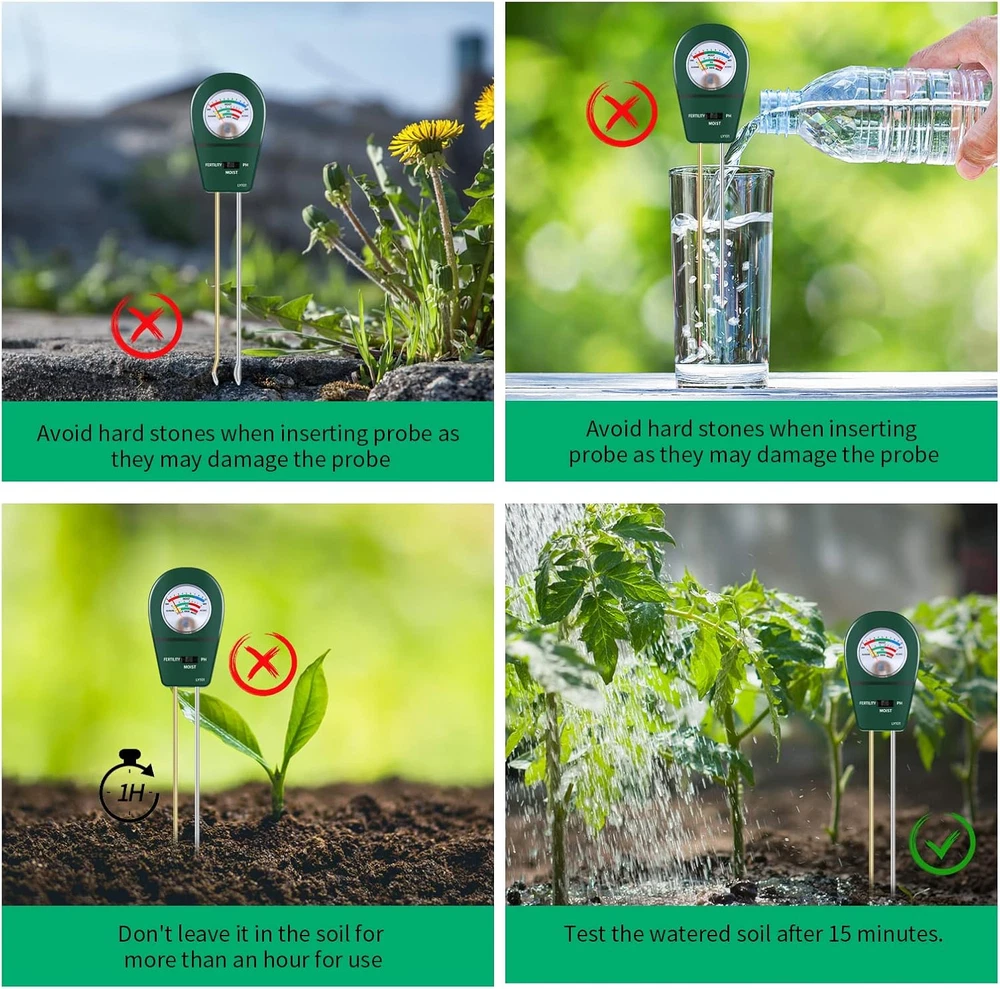 Store New Arrivals Add to Favorite View Feedback Contact 3 in 1 Soil Tester, Soil Fertility Test, Measure Ph of Garden, Lawn Care, Potted, Horticultural Soil Moisture Meter Sensor, No Battery (Green) Description Item Weight 3.52 ounces Item model number LY101 Product Dimensions 2.36 x 1.54 x 9.64 inches Country of Origin China Easy to operate: Just insert the probe into the soil about 2/3 deep for a few minutes, you can get the test result immediately from the indicating pointer, no battery needed, convenient and fast. Wide range of applications: home garden farming, rice planting, vegetable planting, potted plants, flower planting, greenhouse planting, soil testing, etc., to meet all your soil testing needs. Steps for usage: Step 1: Clean the soil moisture probe. Step 2: Insert the tester probe approximately 2/3 deep into the soil. Step 3: You can get a quick moisture reading in a short amount of time. Step 4: Remove probe from soil and wipe clean after each use. Tips: 1. The soil tester is specially designed for soil, please do not use it to test water or other liquids. 2. Rock or other soil that is too hard may damage the probe. 3. Our detector is not suitable for sandy and other loose soil. 4. After use, please take out the moisture meter and wipe the probe, do not leave it in the soil for a long time. 5. Soil pH for most plants is close to neutral, so the range of test pH needles will be small The 3-in-1 soil test kit provides you with a comprehensive understanding of the soil condition of your garden and lawn. With a quick check with a soil pH meter, you can tell if your plant's moisture and pH needs to be adjusted and if the plant is getting enough sunlight. ABOUT US We offer the best prices around on high quality products. Our E-store includes media such as books, movies, music and games while offering electronics, toys, sporting apparel, clothing, tools, general home, garden items and more. SHIPPING We are always working hard to ensure your package arrives as soon as possible. Please understand that some factors like weather, high postal traffic, and the performance of shipping companies are outside of our control. We offer free shipping to the lower 48 states and ship within 2 business days of payment, usually sooner. We do not accept P.O. Boxes. Please provide a physical address. For shipping outside of the continental USA, we only use eBay's Global Shipping Program.The item is shipped to KY and then sent to the rest of the world. International customers are responsible for all duties and taxes. Continue to check out in order to calculate costs for shipping the item to your country. Messages regarding eBay's Global Shipping Program MUST be directed at eBay EXCLUSIVELY. RETURNS We offer a 30-Day Return Policy on items which you are not completely satisfied with. You have the option for a full-refund or an exchange of the item. No returns are available on items shipped outside of the USA. PAYMENT We accept PayPal. CONTACT US This page content is yet to come Please ad us to your favorite seller and visit again later Thank You CUSTOMER SATISFACTION We try our very best to make sure every customer is completely satisfied. If there's a problem, message us! We're happy to help. WE ACCEPT Copyright © 2021 AutoDS. | All Rights Reserved