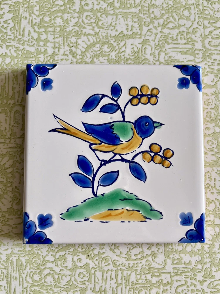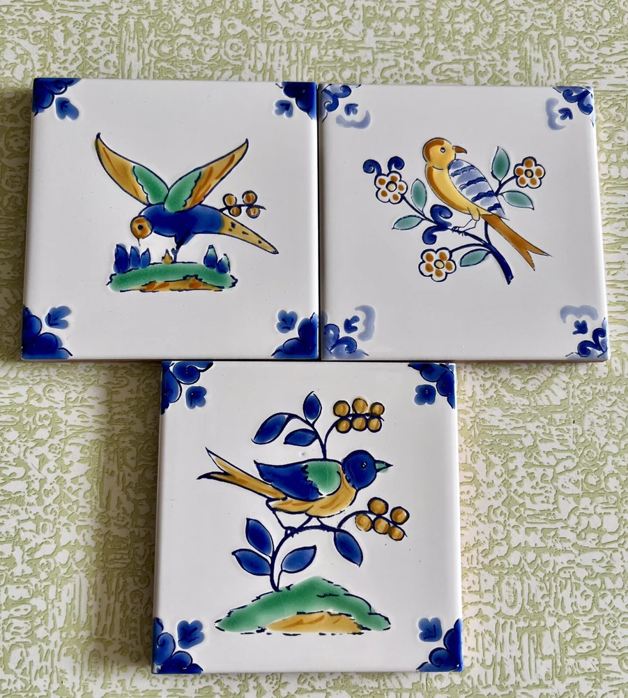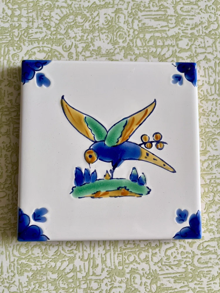 Add a touch of vintage charm to any room with these 3 beautiful Dorémail ceramic bird tiles from Tunisia. The intricate hand-painted details on the multicolor tiles make them a perfect addition to any art or wildlife themed collection. Measuring 4 inches in both length and height, these square tiles are suitable for use as a backsplash in the kitchen or bathroom, or as a decorative piece in any room. The glazed finish adds a durable touch, and the tiles weigh 1.5 lbs each. These original pieces are perfect for collectors or anyone looking to add a unique touch to their decor. From the company website: Dorémail was originally a ceramic tile glazing unit,a family business founded in 1984.Very quickly and because of the strong interest of its founders for the heritage and their enthusiasm for the treasures that it conceals a workshop of hand decorated tiles is born. With the success of the first designs,we developed several collections and this workshop has today become a company in its own right. This happy synthesis between authenticity and modernity constitutes the singularity of Dorémail. A company well rooted in its identity and perfectly at ease to project itself into modernity,make it its own and interpret it through its own prism The item will be very carefully packaged and shipped promptly upon receipt of payment. All items I sell are guaranteed to be as described and pictured, or your payment will be refunded upon return of the item in its original condition