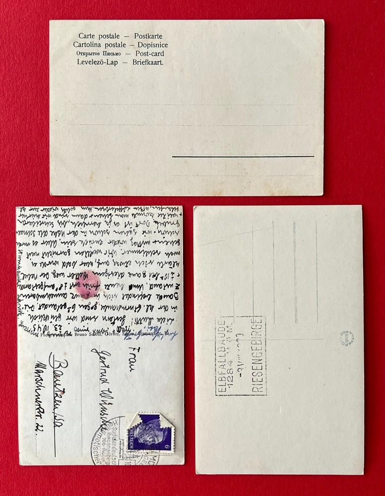 3 alte Ansichtskarten vom Riesengebirge Elbfall mit Baude eine Ansichtskarte ist beschrieben und postalisch versandt im Jahre 1943 schöner gebrauchter Zustand / siehe Bilder! Bitte schauen Sie auch meine anderen Artikel in meinen Ebay Shop an!