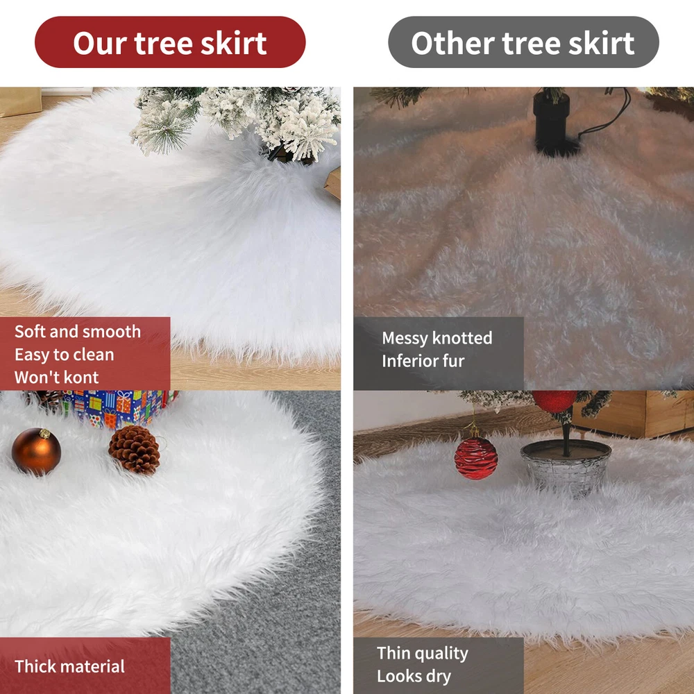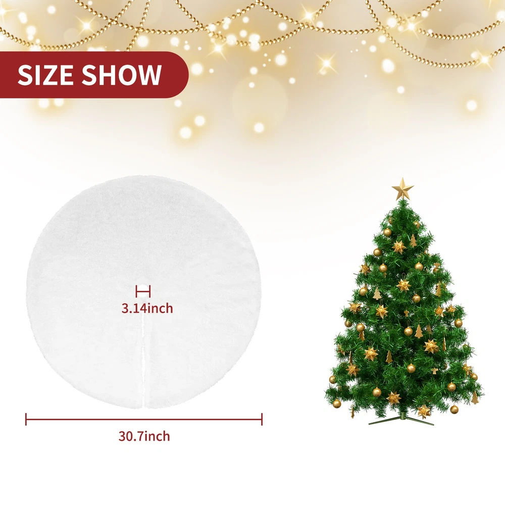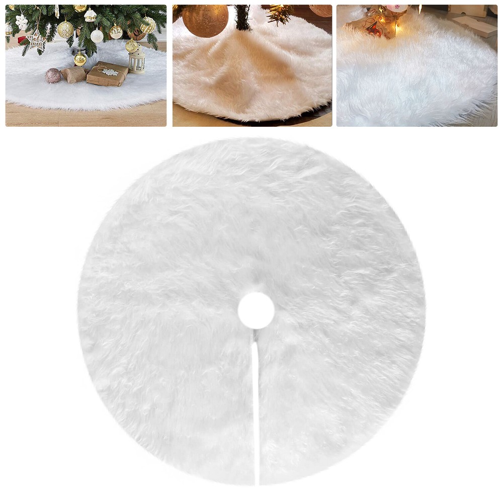 Feature HIGH QUALITY - The well-made white Christmas tree skirt which was selected from high-end plush material and made of soft faux fur. Its well constructed and densely faux fur make the tree skirt have a good quality and give you a comfortable feel. Moreover, durable material make it possible to use it year after year. MINIMALIST & ELEGANT - Its classic white make the Christmas tree shirt and your home more elegant, aesthetic and minimalist. You can buy it as a perfect gift to your family or use it decorate your Xmas with them. SOFT & COMFORTABLE - The fur of the Christmas tree skirt are soft and warm, plus a pure white color overall design, it will attract children and pets to touch even consider to lie down on it. It’s a perfect Christmas tree decorations, make a festive atmosphere and happiness around your family!And you can wash it by hand with cold water, or you can dry cleaning it. You also can fold it up and store if not needed. APPLICATIONS - Make a festive homey ornaments for your Christmas tree at home, school, office, store, etc. Adding more holiday atmosphere to your home. Your families can put any decorations you like on the Christmas tree skirt. Notes: Due to the light and monitor difference,the item's color may be slightly different from the pictures. Please allow 1 inch differs due to manual measurement. If you have any problems with our product, please contact with us first, we will solve it for you within 24 hours on working days. Package Includes: 30'' 35" 47'' x Christmas Tree Skirt