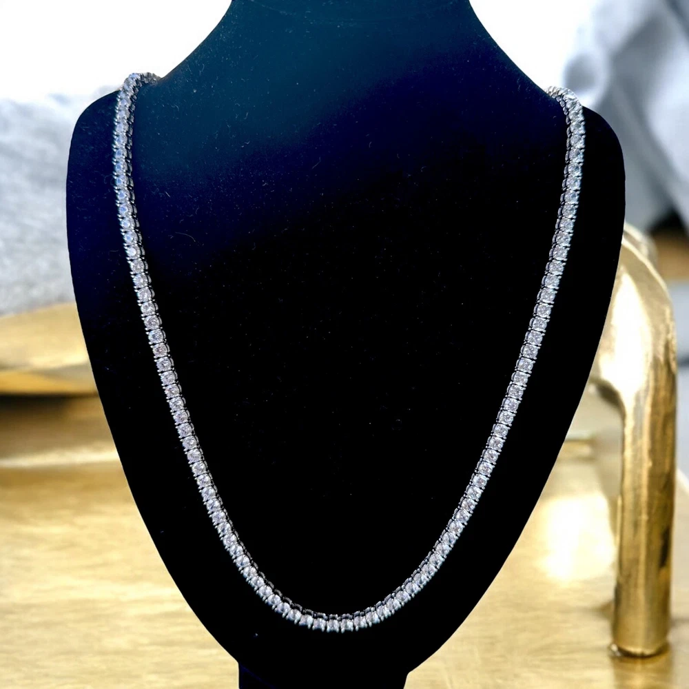 Upgrade your look with this stunning 30-inch 925 Sterling Silver tennis chain! Crafted with solid 925 silver (stamped on the clasp), this chain features a sleek 4mm width, AAA Cubic Zirconia stones, and a box clasp for secure wear. Itβs brand new and comes in a box β perfect as a gift or for your personal collection. πΉ Product Highlights: β Length: 30 inches β Width: 4mm β Material: Real 925 Sterling Silver (stamped) β Stones: AAA Cubic Zirconia β Clasp: Secure box clasp β Condition: Brand new, never worn β Packaging: Ships in a box (great for gifting) Ships fast & securely from the USA. Get yours today while supplies last!